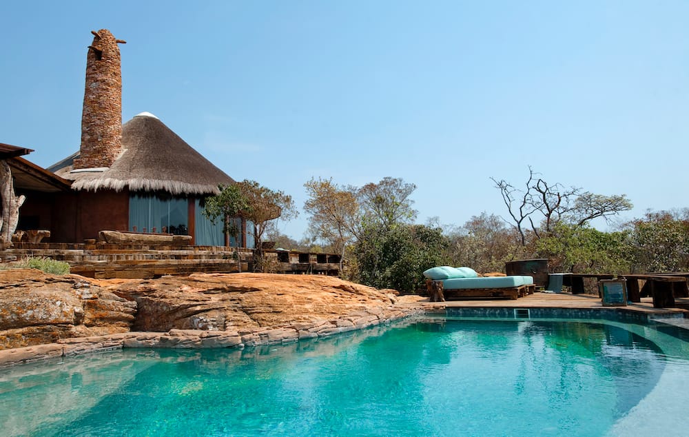 It is fully staffed, complete with multiple lounge areas, bar, snooker table, wi-fi, boma, sunken fire pit and a stunning heated swimming pool built into the side of the mountain which is fantastic for children.