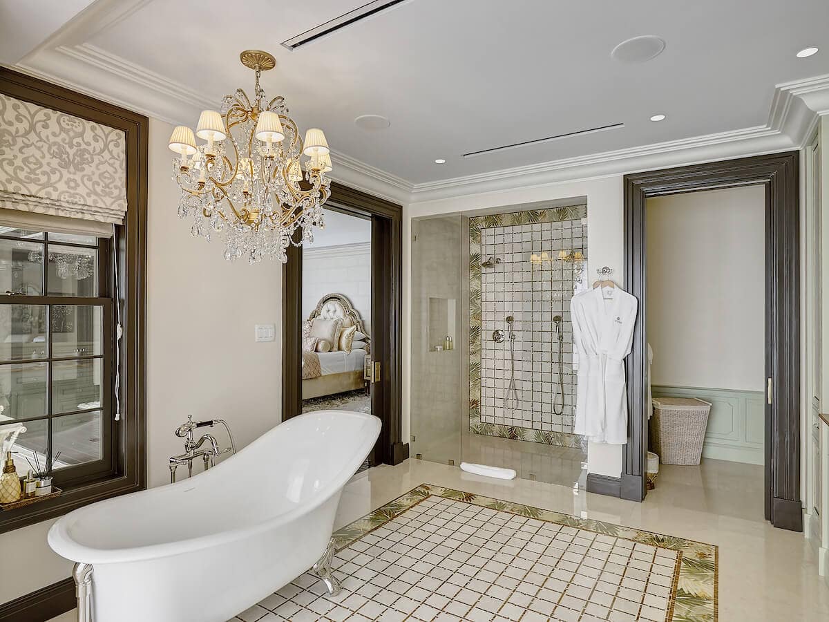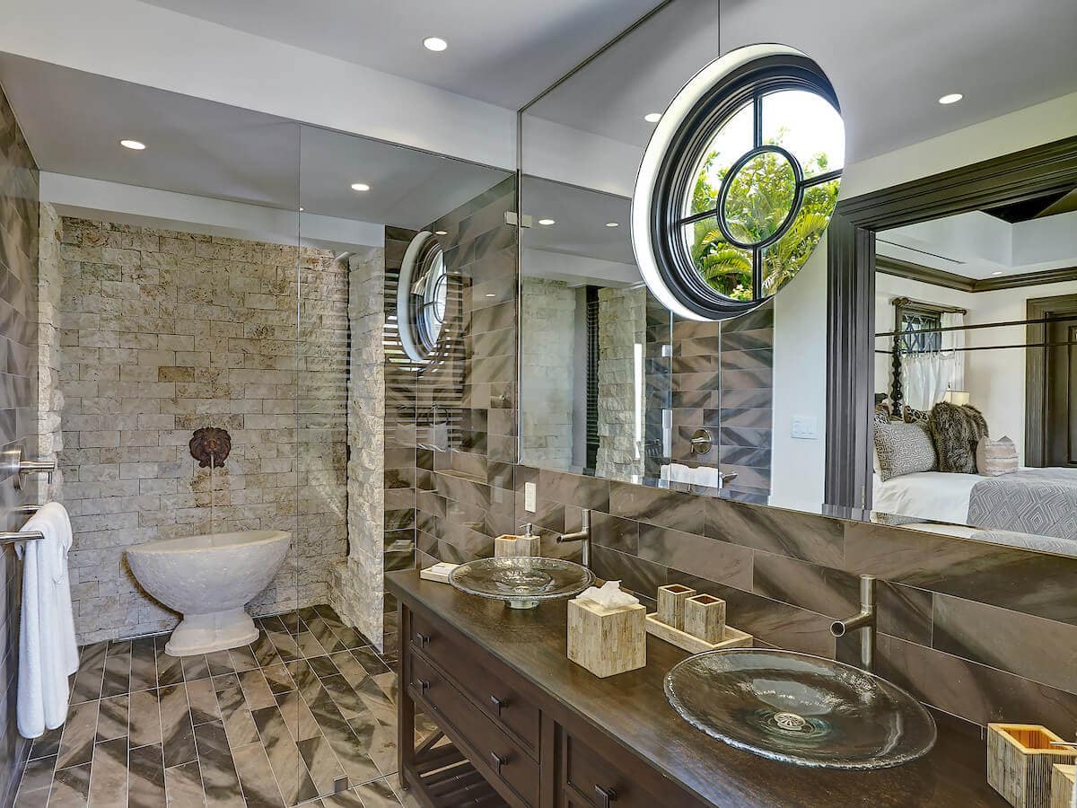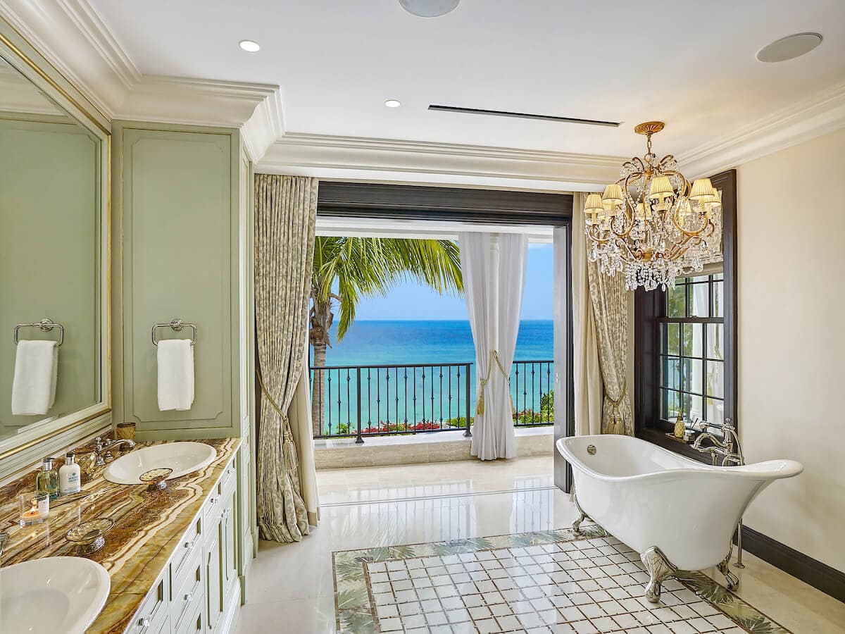 Outdoors, guests can relax on the expansive sea-facing terrace, which includes a cocktail bar for entertaining, or enjoy informal dining in the oceanfront gazebo. The infinity-edge lap pool features a built-in bar table with sunken seating, perfect for sunset cocktails. The lush grounds offer zen gardens, a koi fish pond, and private access to a secluded beach. The villa comes fully staffed with a butler, chef, housekeeper, and laundress, along with 24-hour security, property management, and concierge services for the ultimate in luxury living.