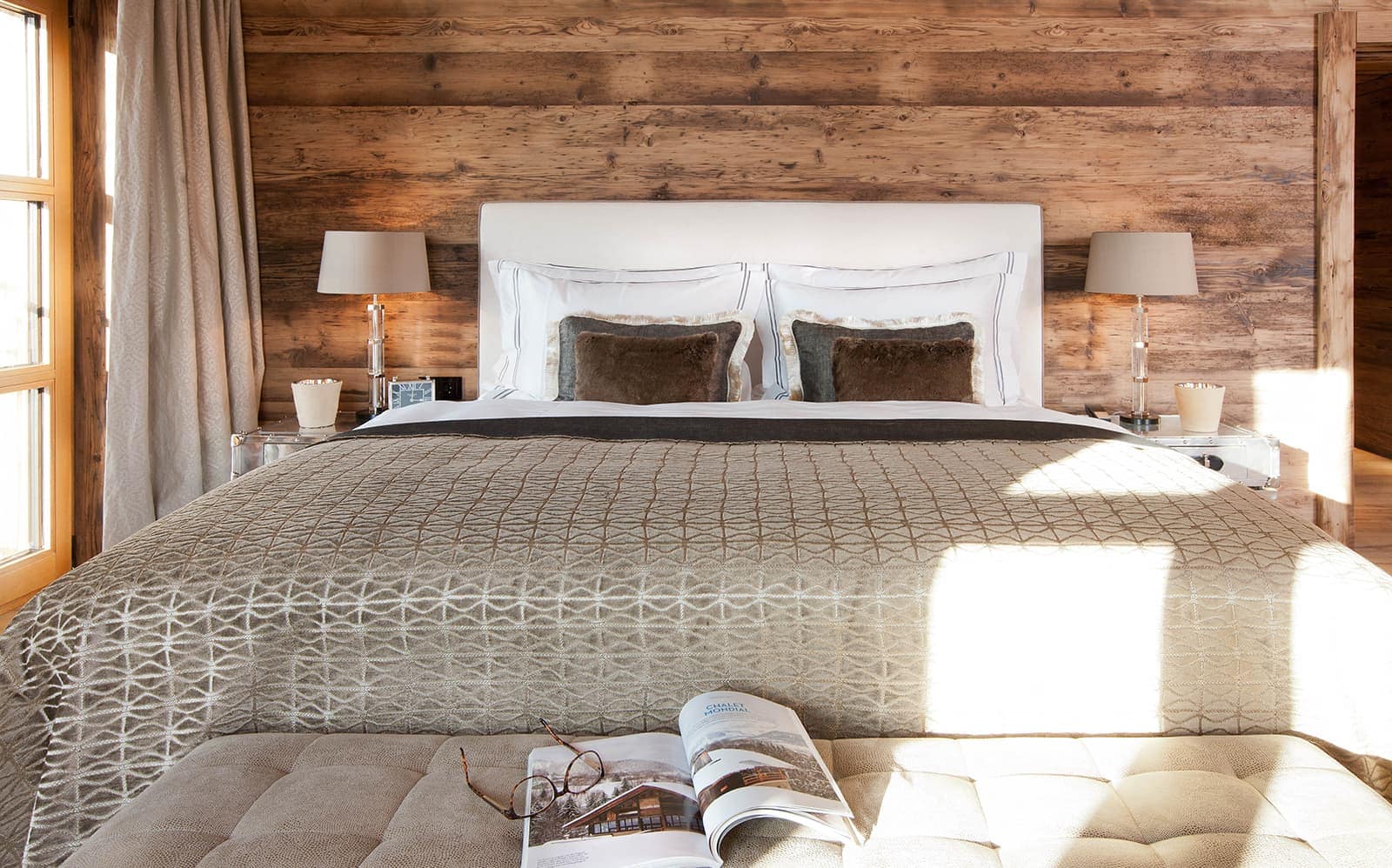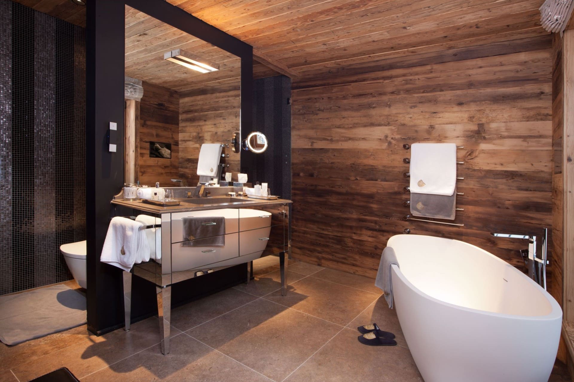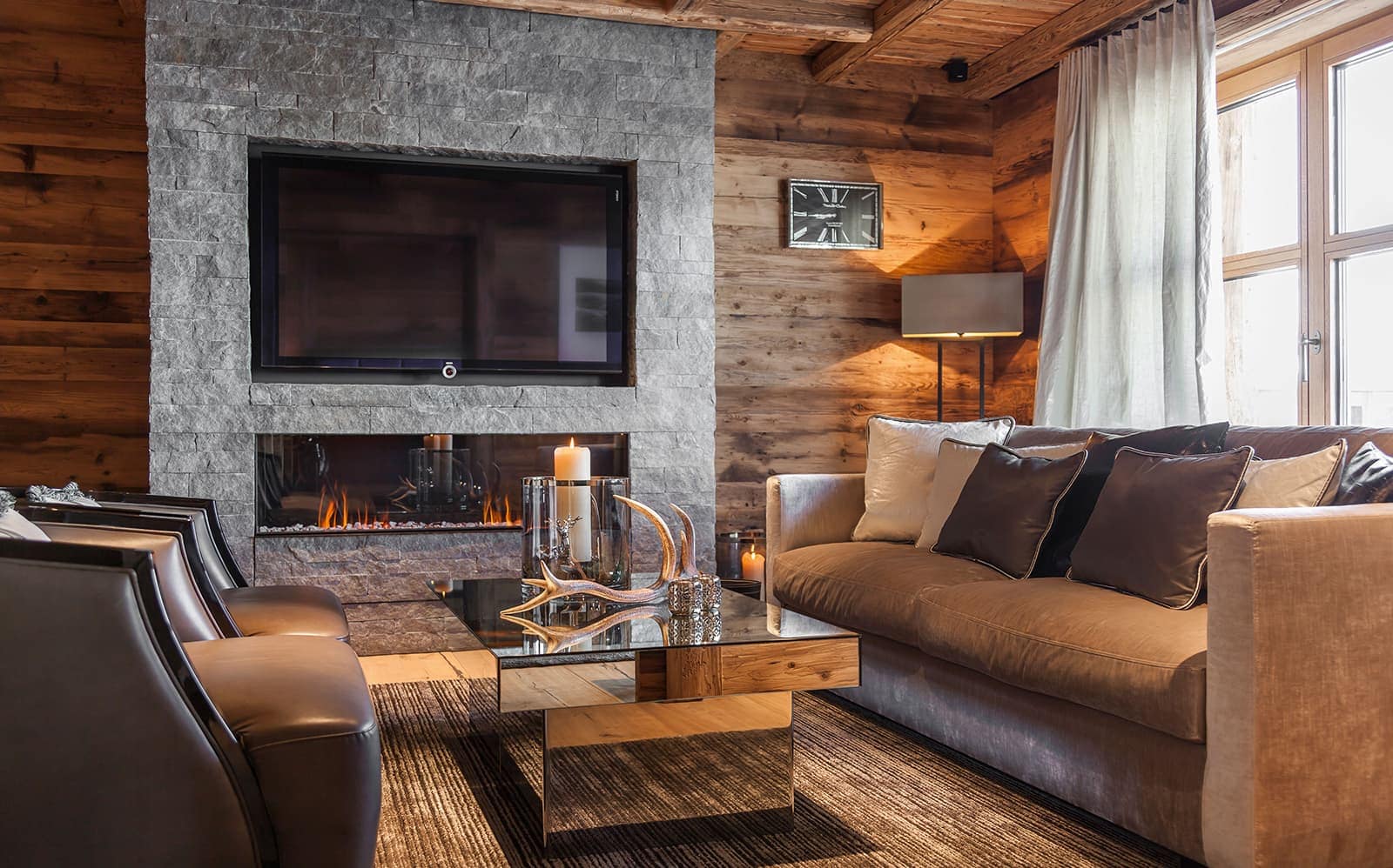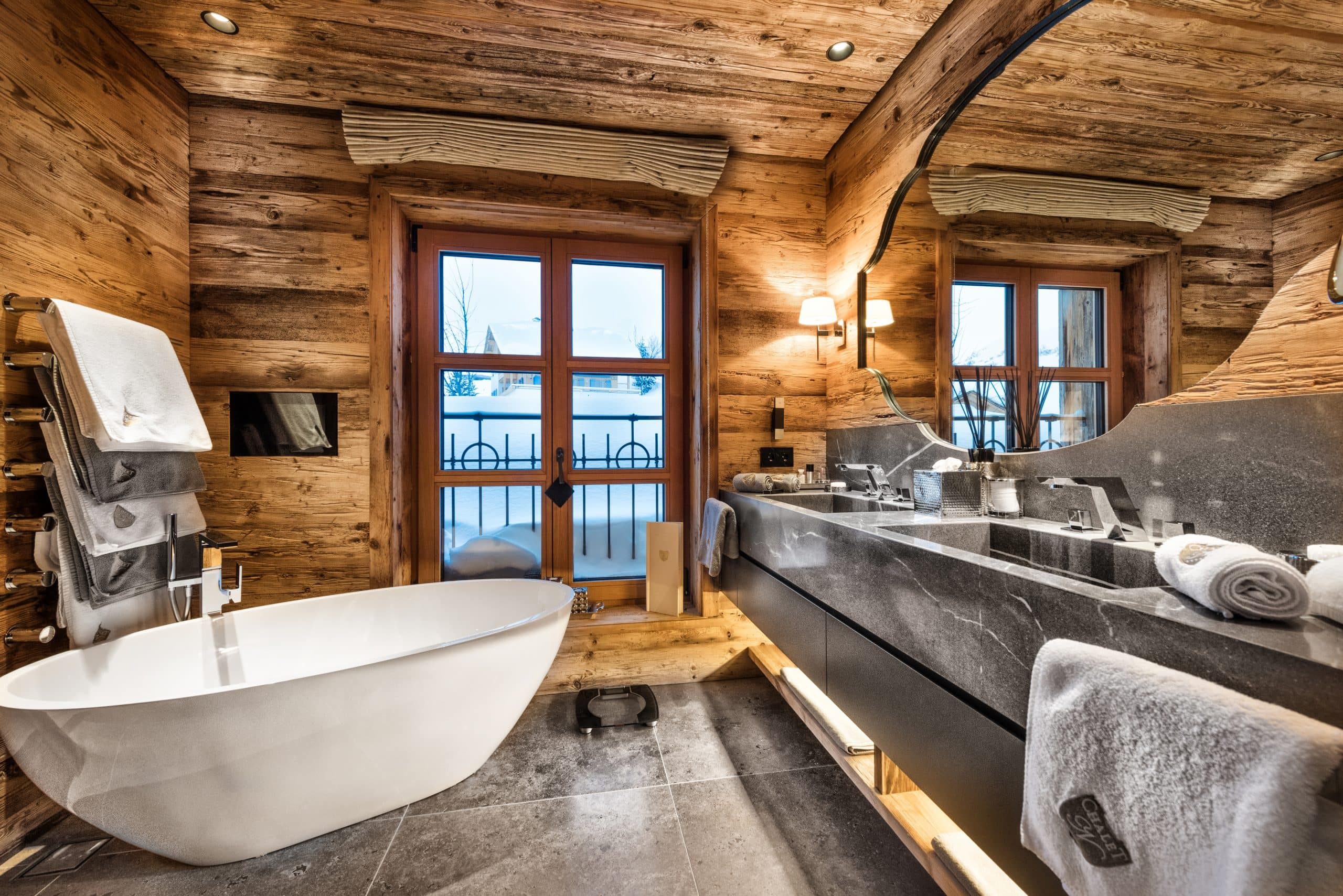Chalet N features nine exquisite suites, each designed as a private sanctuary. Warm fireplaces, soft candlelight, plush rugs, and irresistibly comfortable beds set the tone for refined Alpine living. Every suite includes a spacious lounge area, an elegant dressing room, and a beautifully appointed en-suite bathroom—along with breathtaking views of the surrounding mountains.