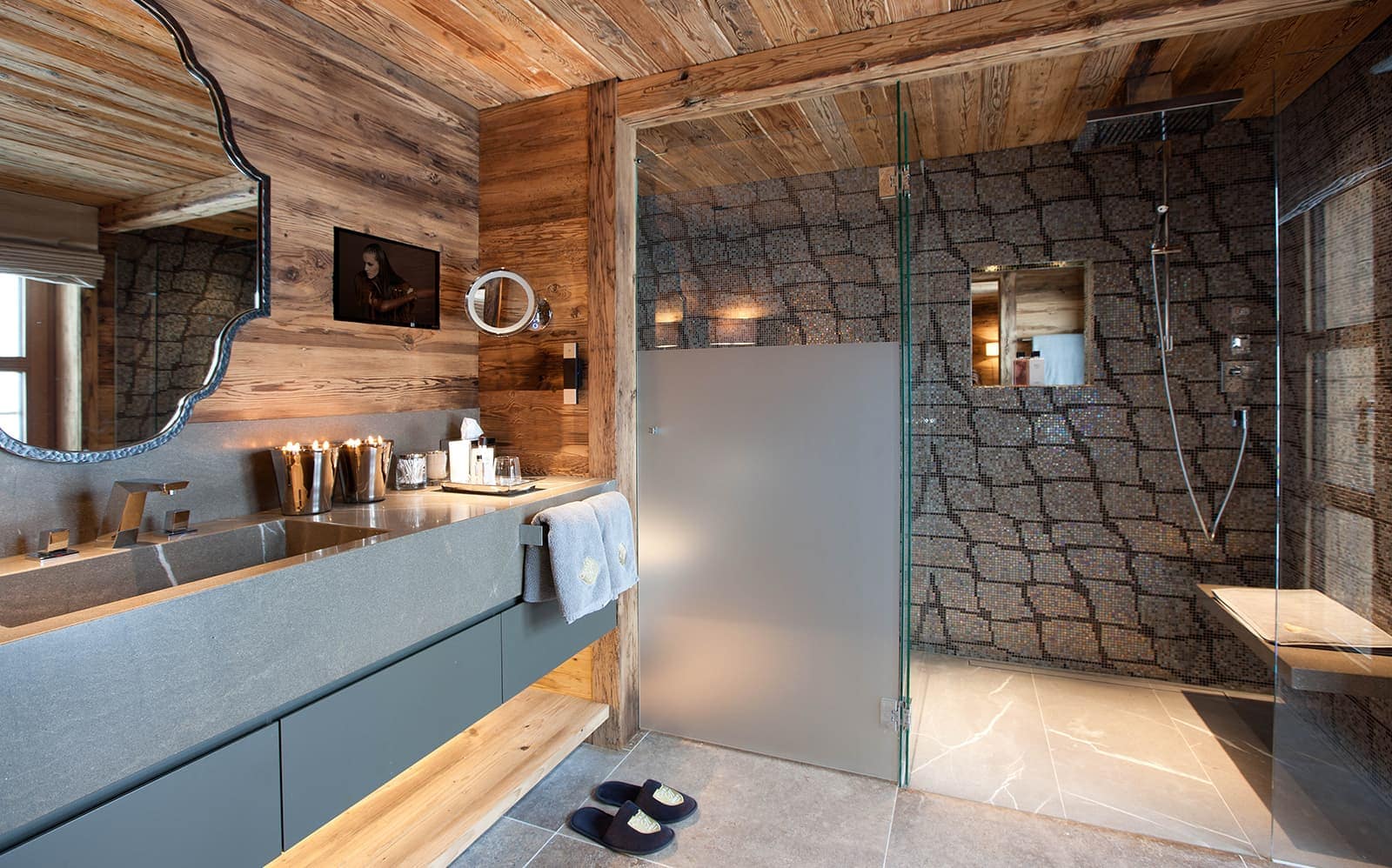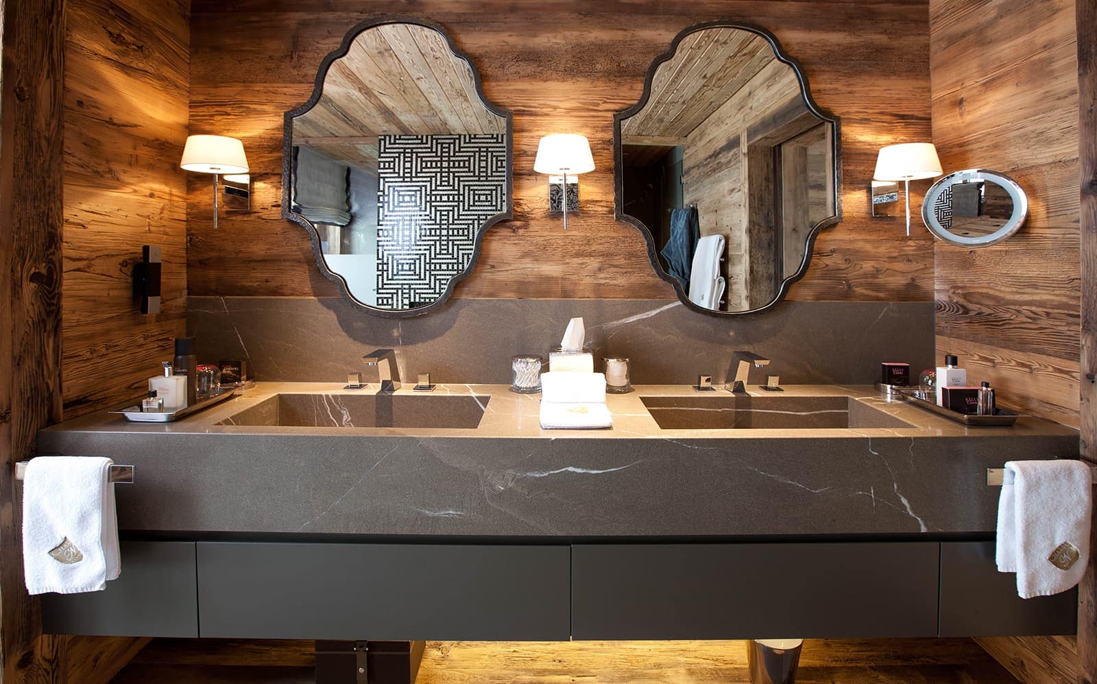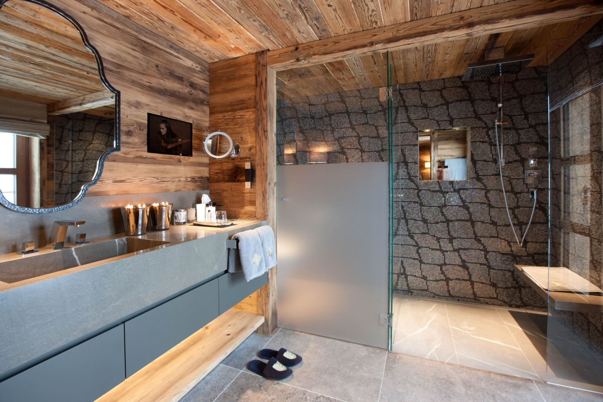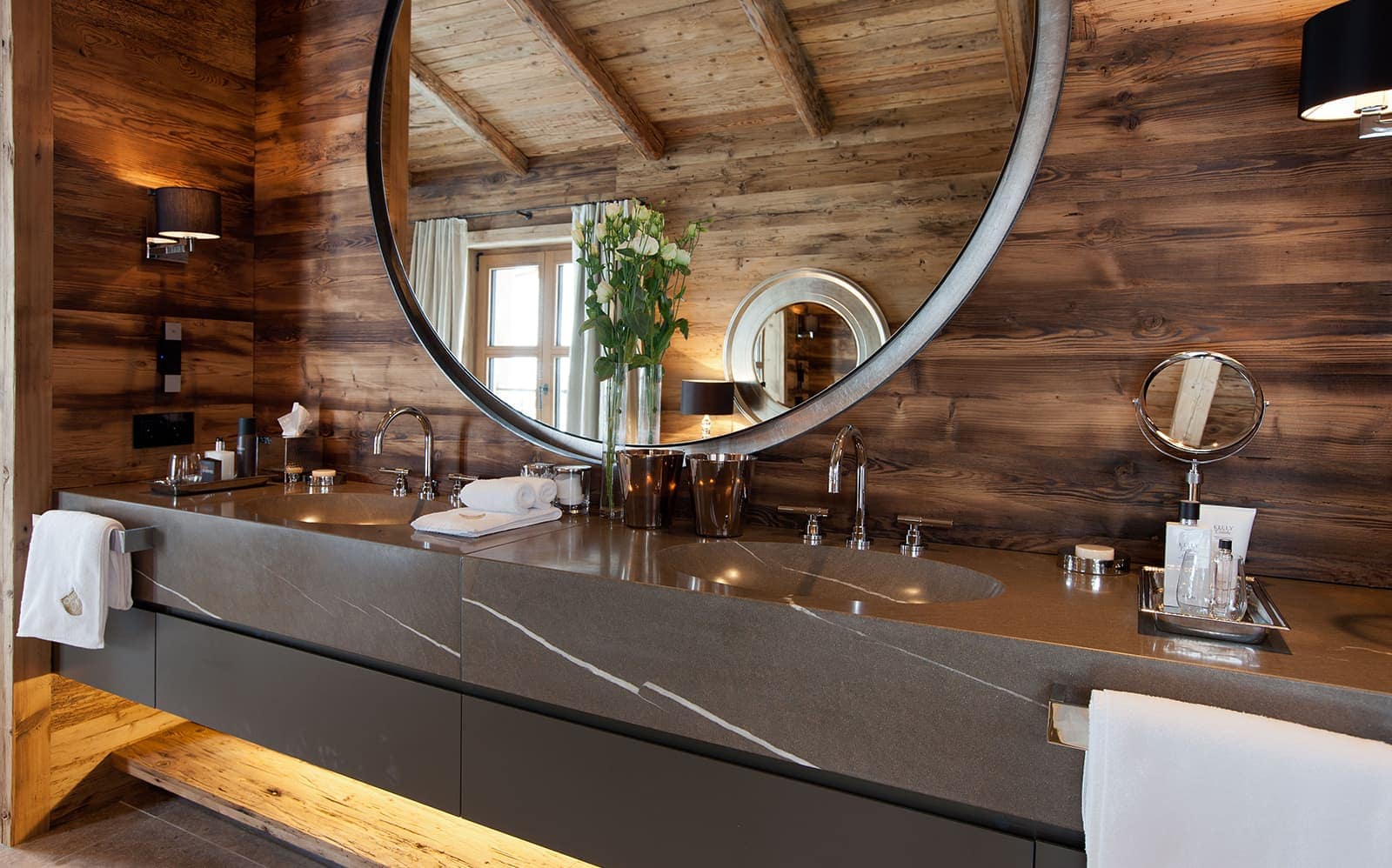 Chalet N features nine exquisite suites, each designed as a private sanctuary. Warm fireplaces, soft candlelight, plush rugs, and irresistibly comfortable beds set the tone for refined Alpine living. Every suite includes a spacious lounge area, an elegant dressing room, and a beautifully appointed en-suite bathroom—along with breathtaking views of the surrounding mountains.