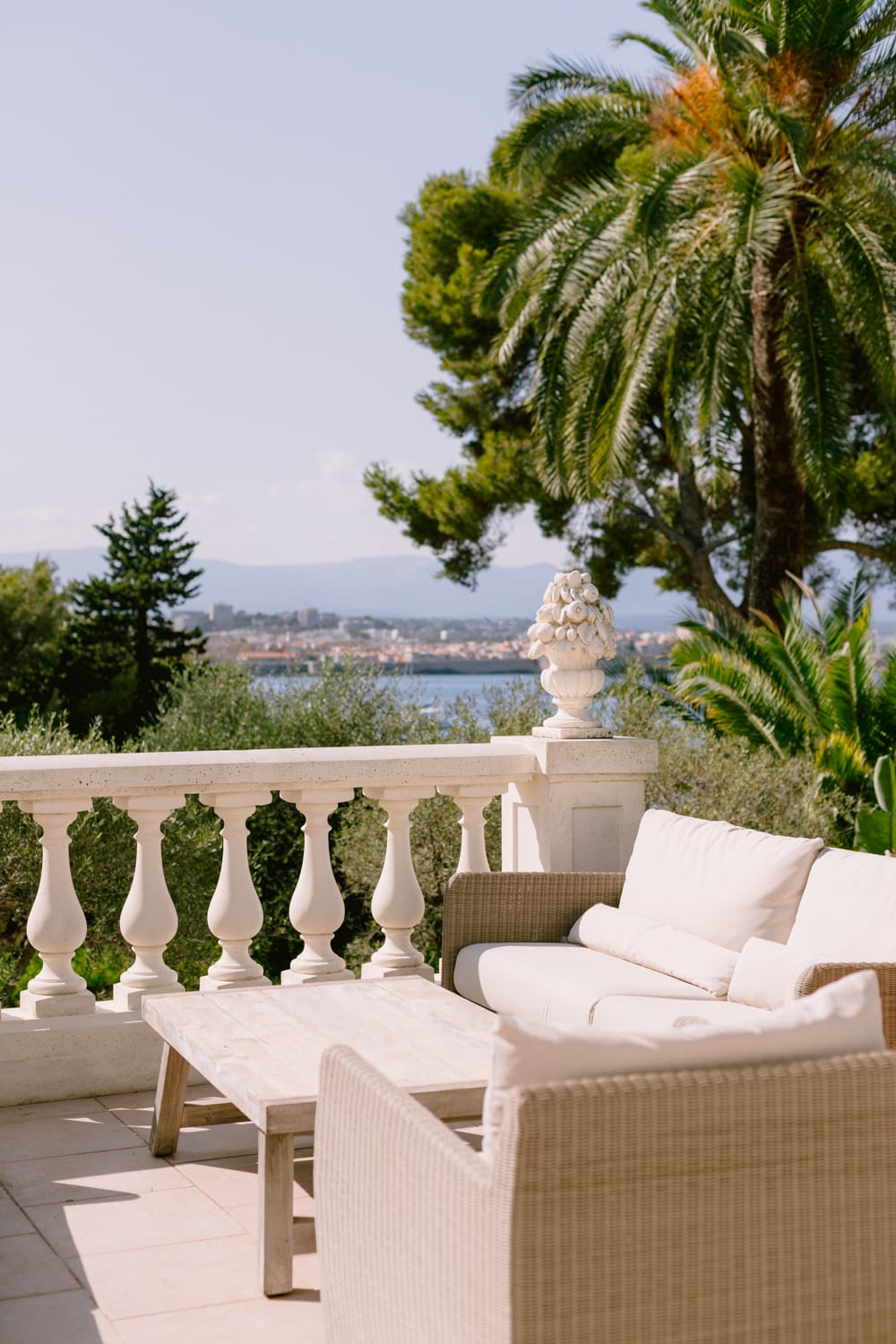 Garden and pool: Embracing the Mediterranean way of life, the villa is wholly devoted to the sea and garden. All ground-floor rooms open onto a long terrace with white balustrades, offering a balcony-like view over the sea. Beyond, the mountains and Antibes’ old town unfold, a scene that inspired countless painters.