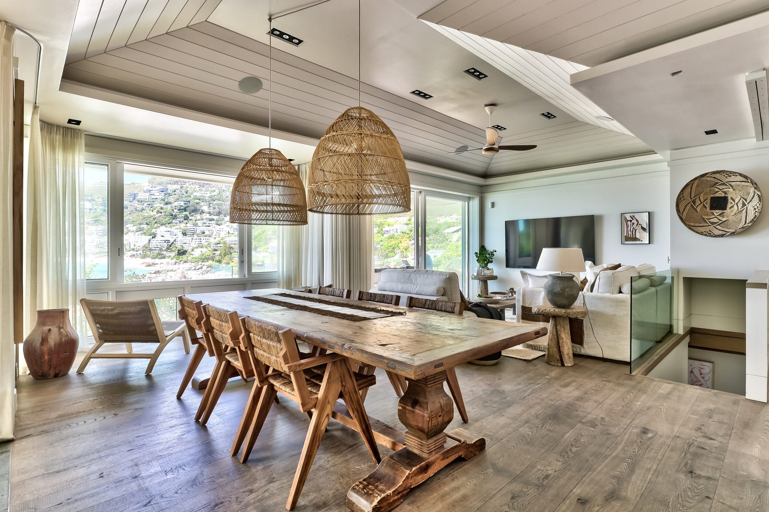 Nestled along South Africa’s sought-after 4th Beach, this luxury three-bedroom villa offers prime access to Cape Town’s vibrant attractions and serene coastal views. Designed with privacy and sophistication in mind, the villa blends a breezy coastal charm with African-inspired decor. Each bedroom is en suite, with floor-to-ceiling windows opening to outdoor decks, ideal for enjoying sun-drenched days or Cape Town’s cozy winters.