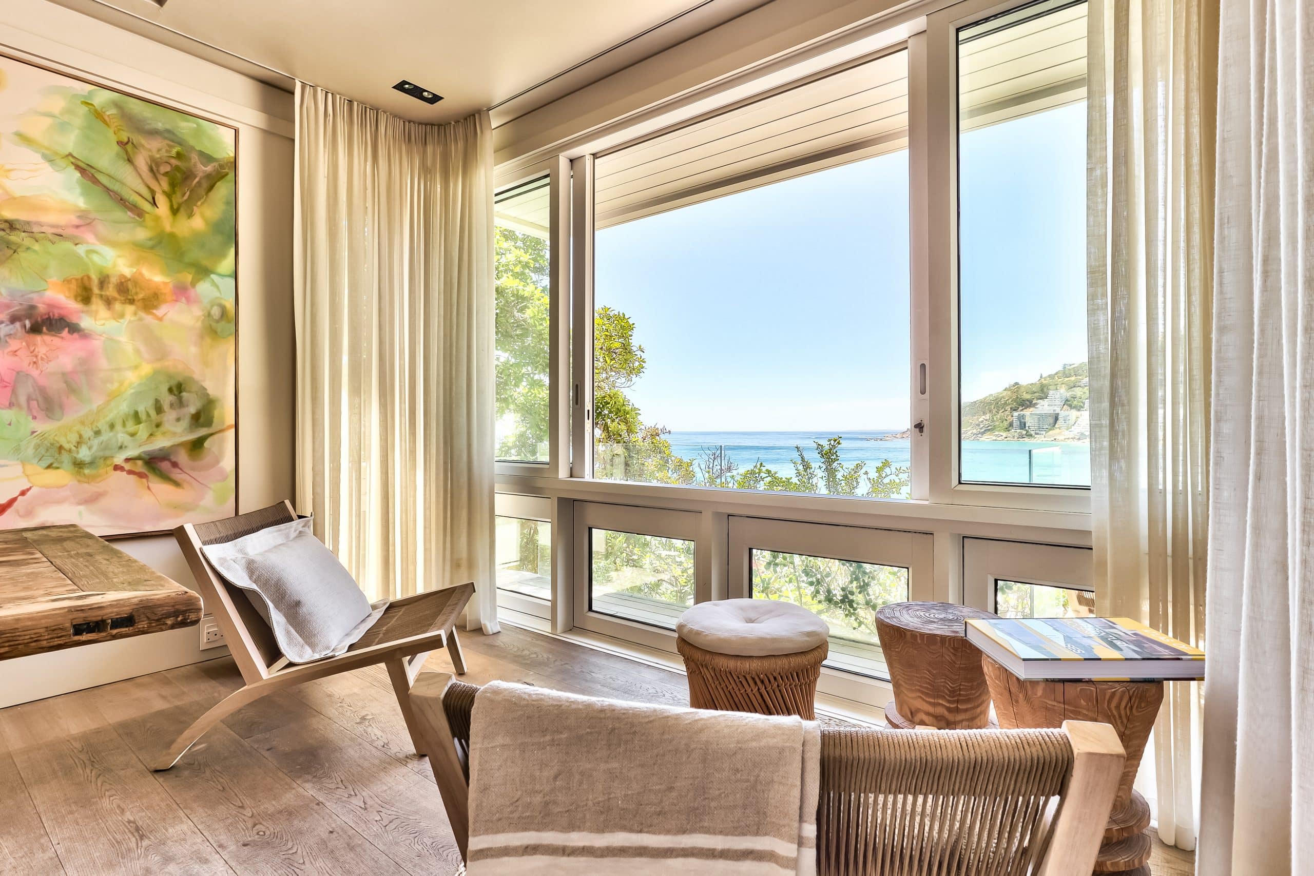 Just a short distance from world-class dining, celebrated galleries, and historic landmarks, this house also provides easy access to renowned vineyards. The open-plan kitchen, dining, and living areas flow effortlessly onto a glass-walled deck, creating a bright, coastal ambiance. The outdoor braai and dining table on the beach deck make for perfect summer gatherings, while underfloor heating keeps the space cozy during quieter winter months. Thoughtfully designed with African-inspired decor and curated art, the home combines comfort and sophisticated style for a refined retreat.