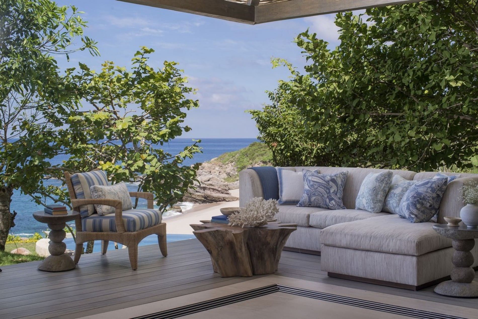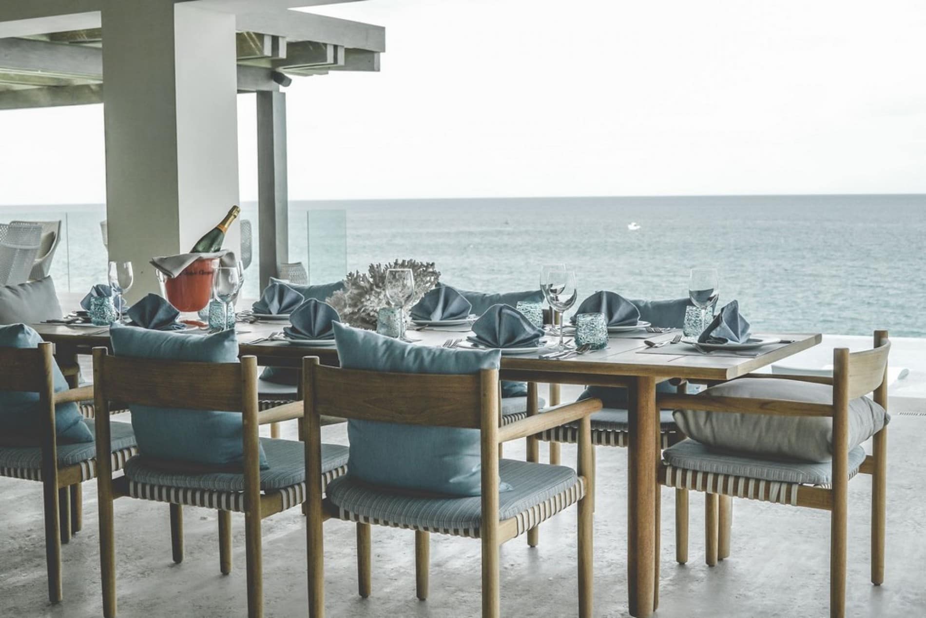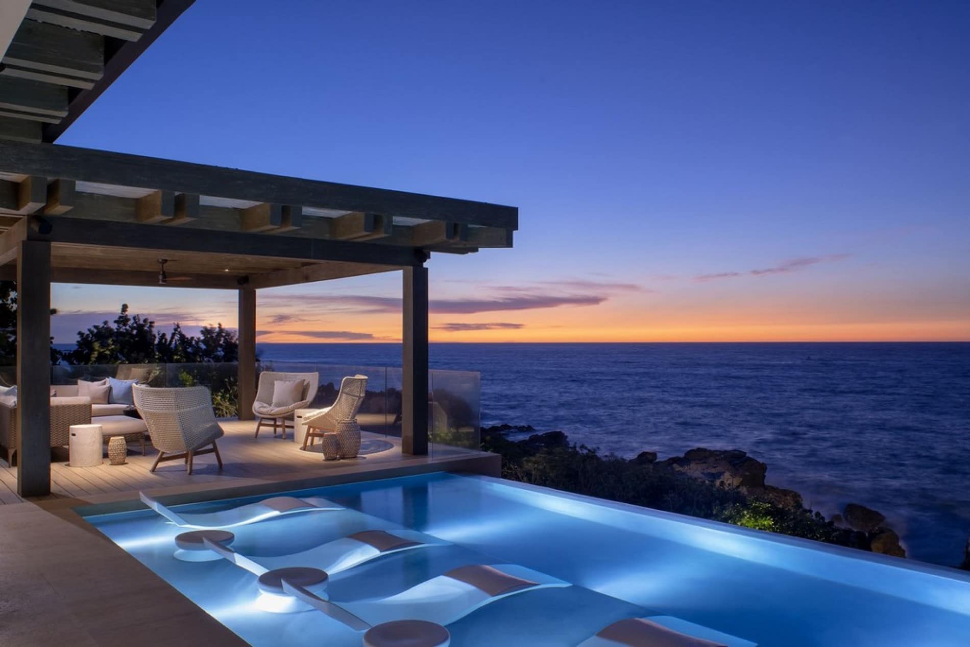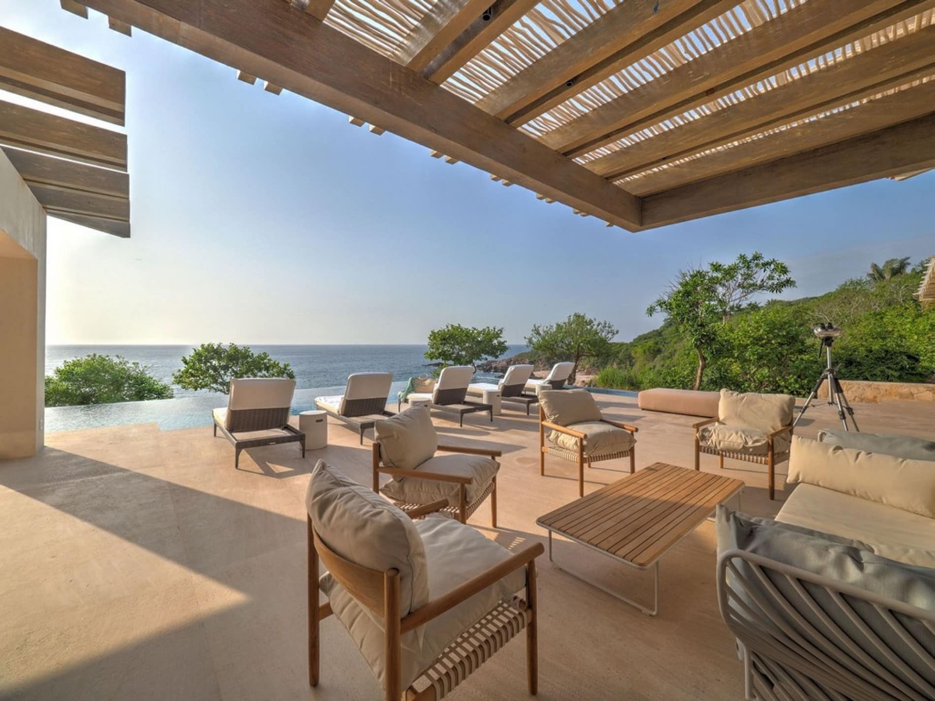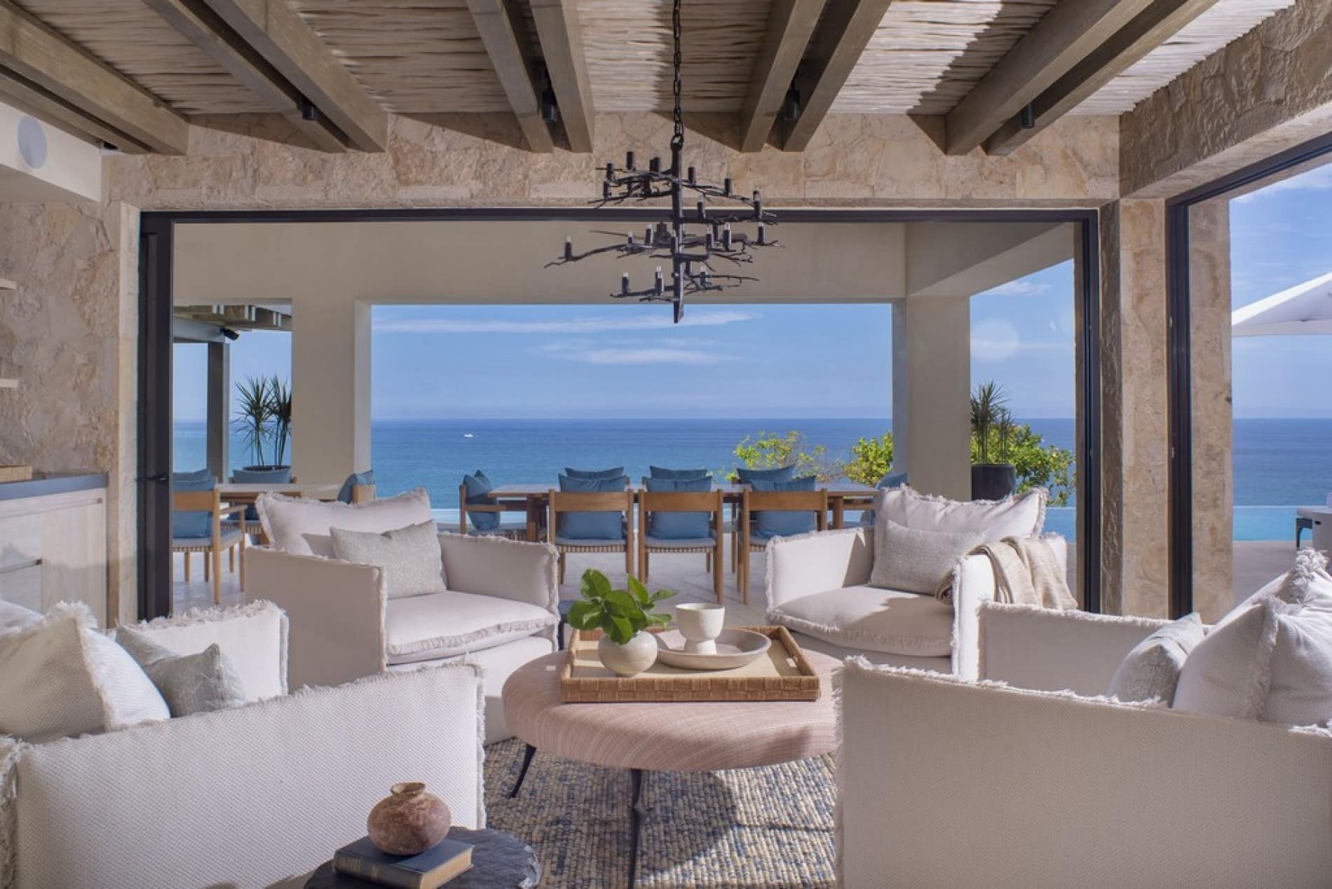 Thoughtfully designed to blur the boundaries between inside and out, the estate’s shared spaces invite effortless togetherness, whether you’re gathering for sunset cocktails on the terrace, sharing stories in the entertainment room, or simply unwinding in the shade with the ocean breeze at your back. Every corner of the home is an opportunity to connect, relax, and make lasting memories. The spacious oceanfront terrace is the heart of the home, where many of your most memorable moments will unfold.