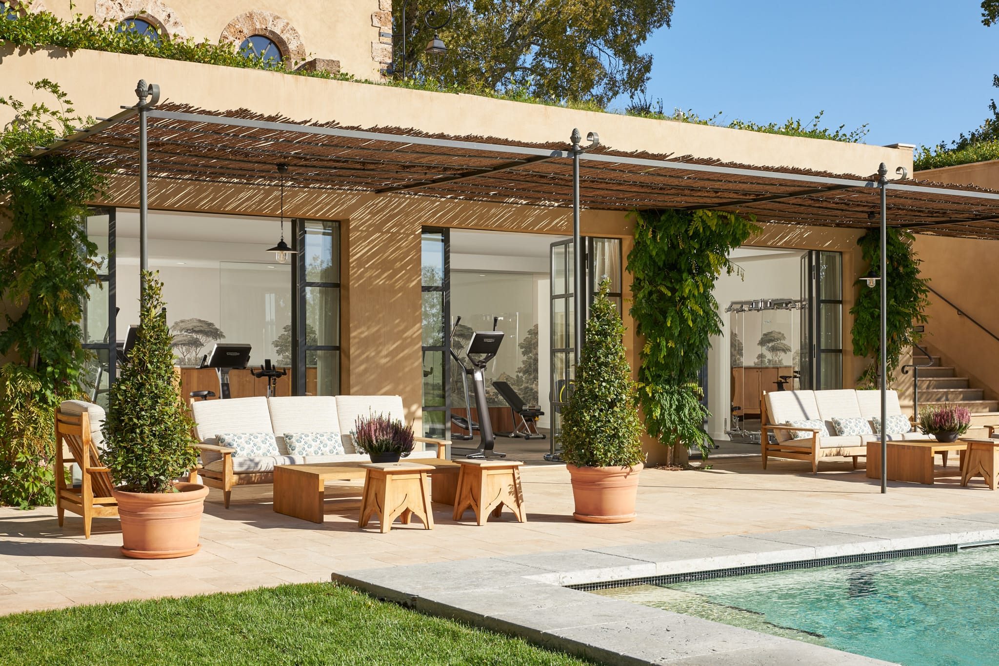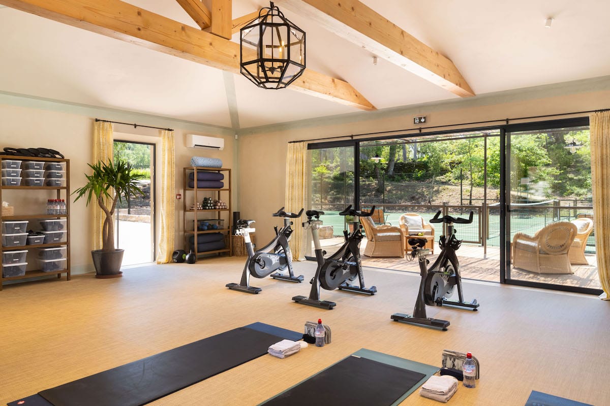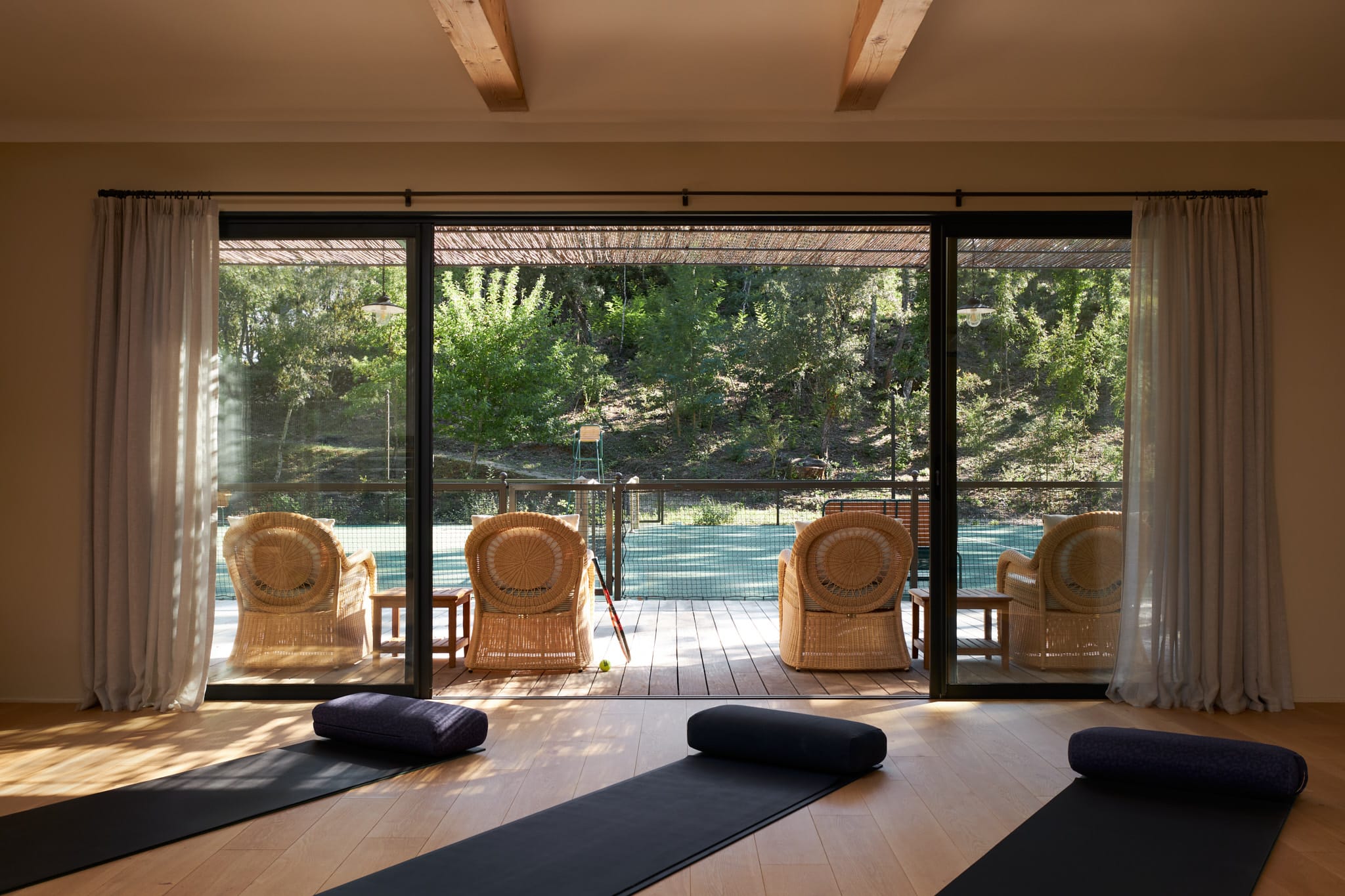 A short walk from the bastide, the club house has a yoga/spin studio leading onto a terrace to the outdoor tennis court.