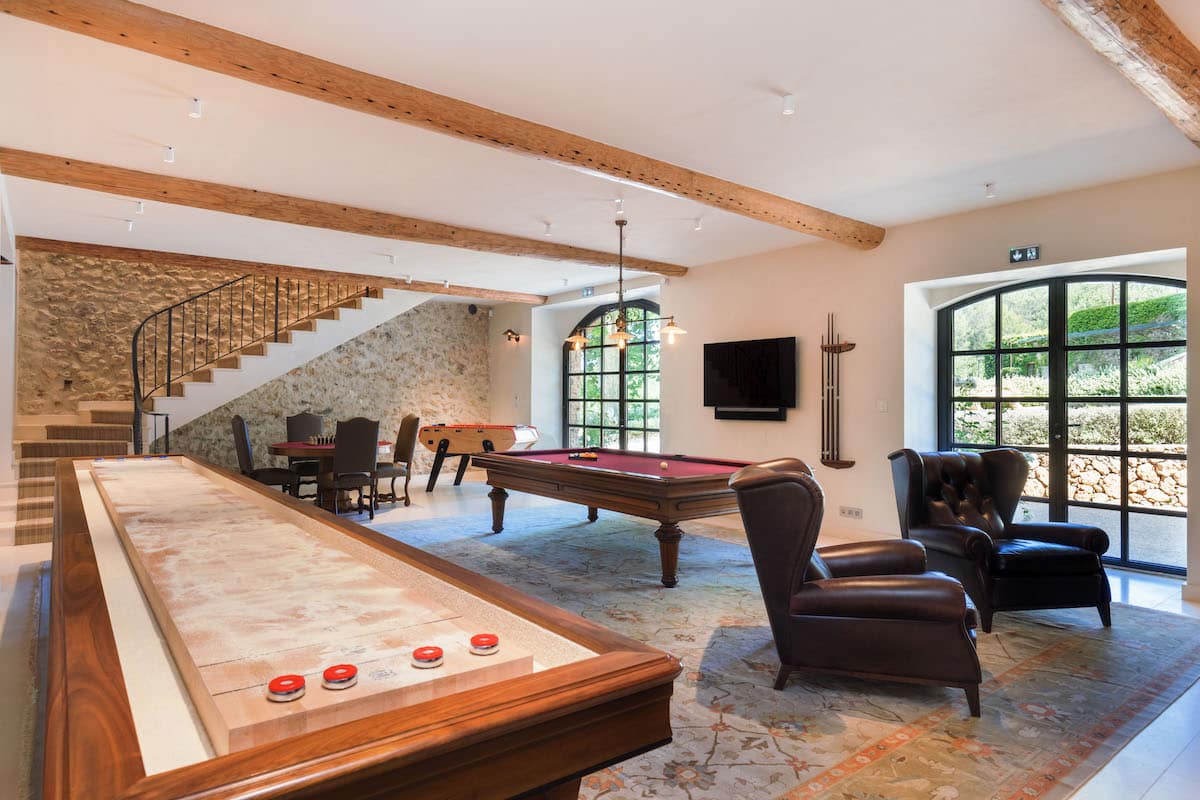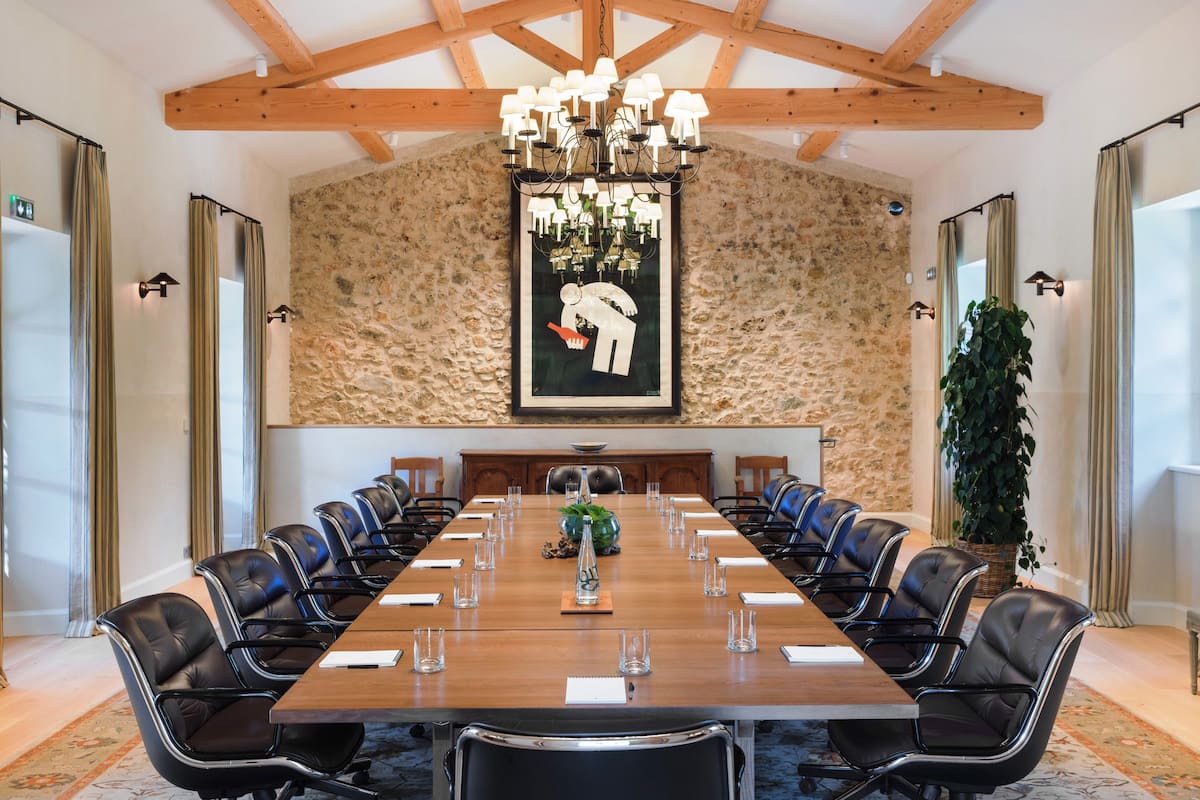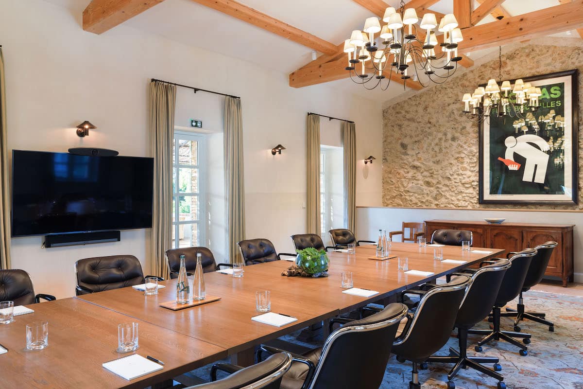 Just outside the Bastide we have transformed the Magnanerie space into an entertainment hub on the lower level, featuring a games room with a pool table, shuffle board and poker table. A cinema behind has 18 seats for watching classics and new release films. The secluded first floor is dedicated to a state-of-the-art meeting room for up to 14 guests with a large terrace.