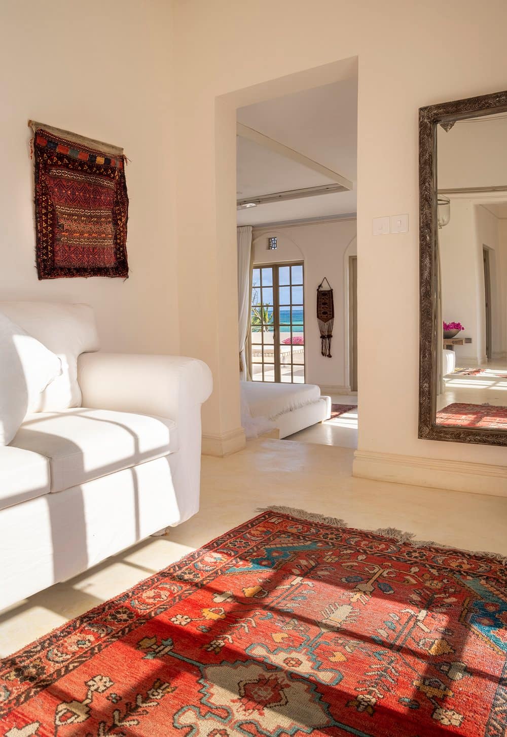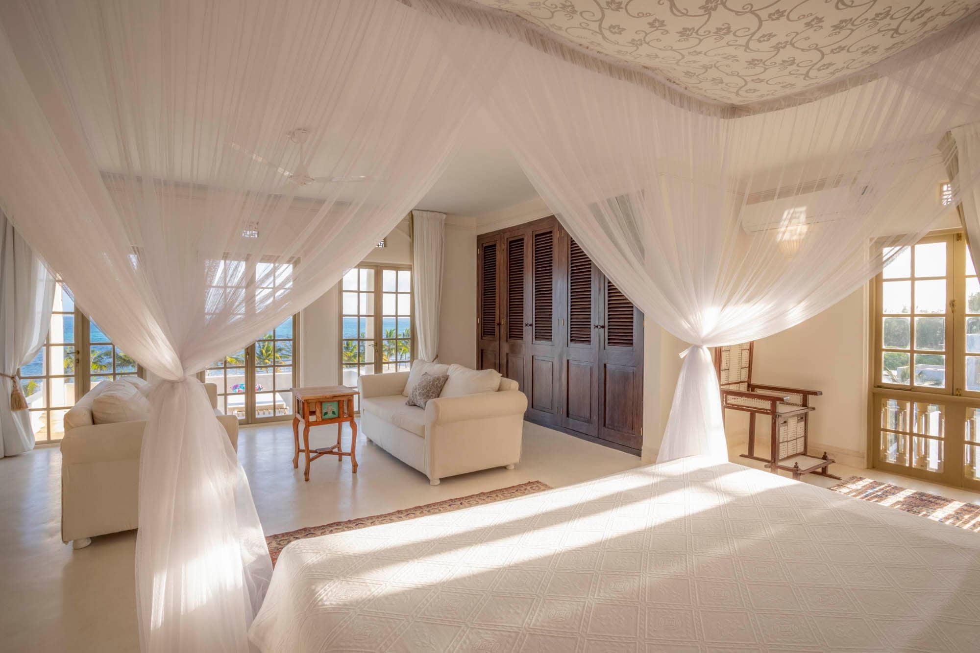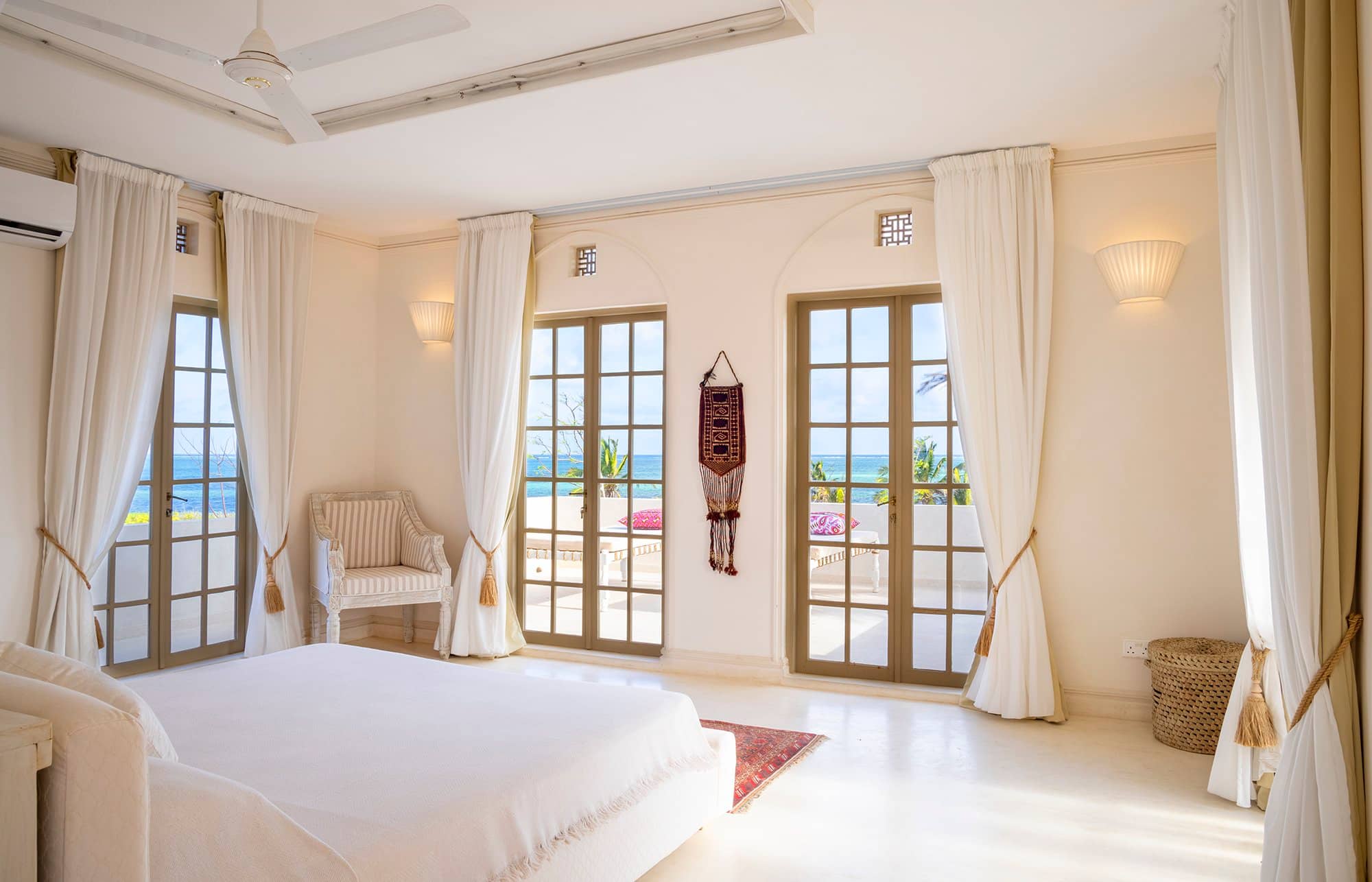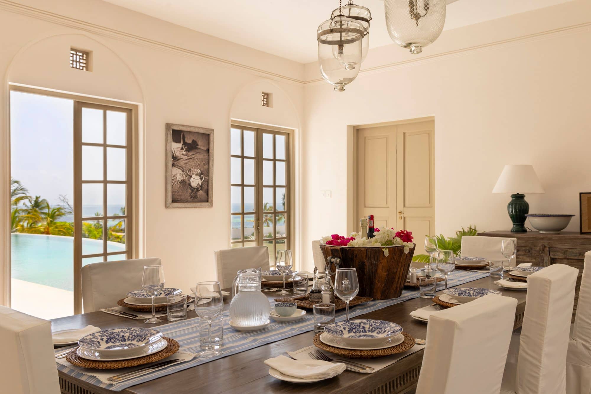 The villa features nine comfortable ensuite bedrooms with air-conditioning, all overlooking the Indian Ocean. Each room has its own privacy and a private terrace or garden, or direct access to the infinity pool. Each room of the villa is furnished with fine items from local artisans, Italian fabrics, Oriental carpets, and antiques from a collection from around the world.
