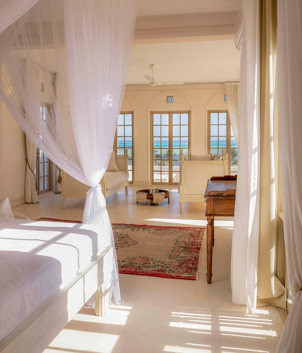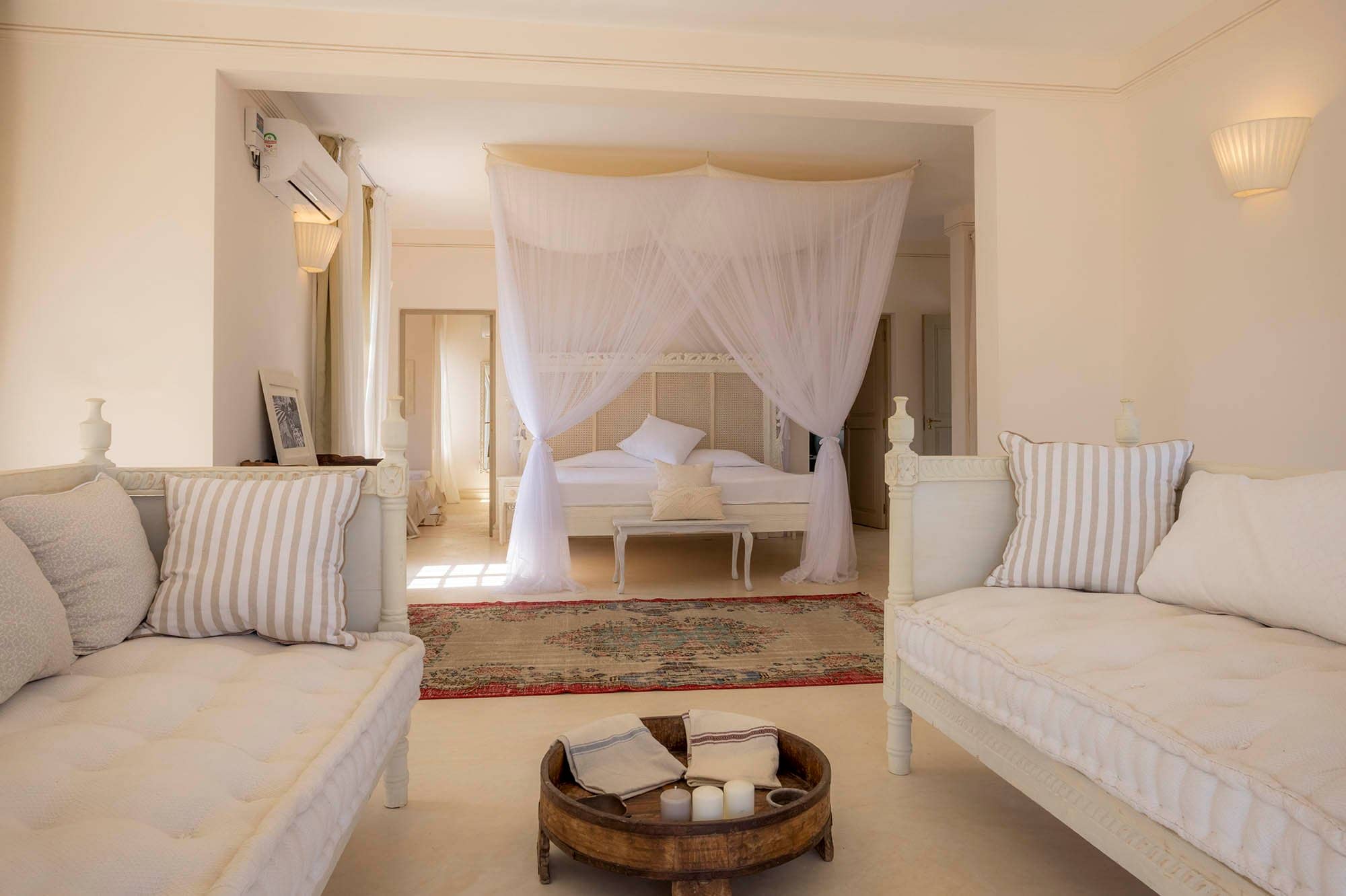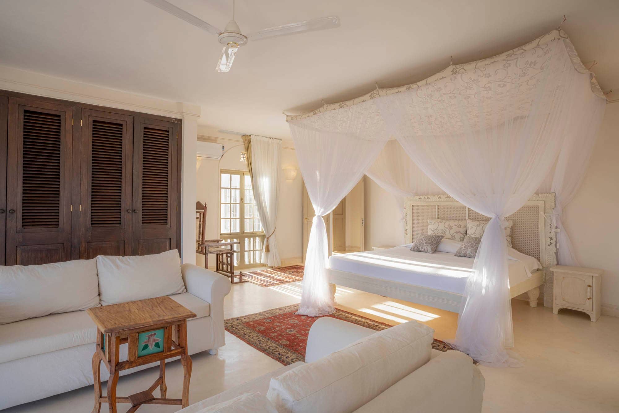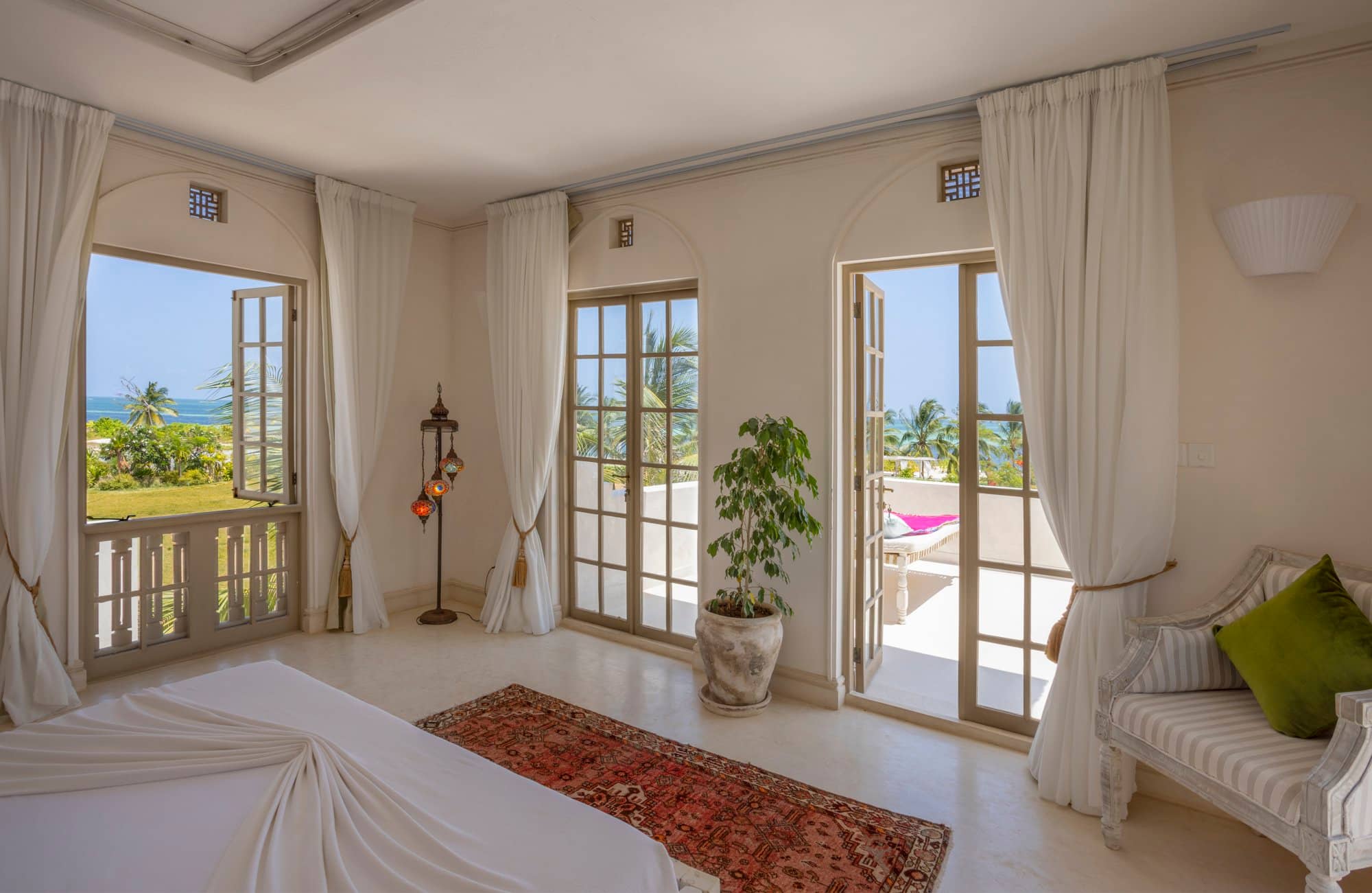 The villa features nine comfortable ensuite bedrooms with air-conditioning, all overlooking the Indian Ocean. Each room has its own privacy and a private terrace or garden, or direct access to the infinity pool. Each room of the villa is furnished with fine items from local artisans, Italian fabrics, Oriental carpets, and antiques from a collection from around the world.