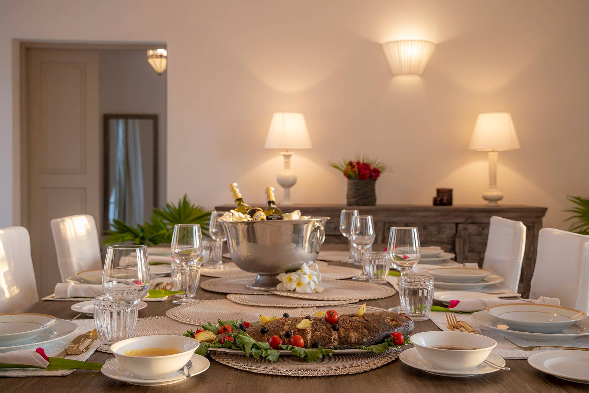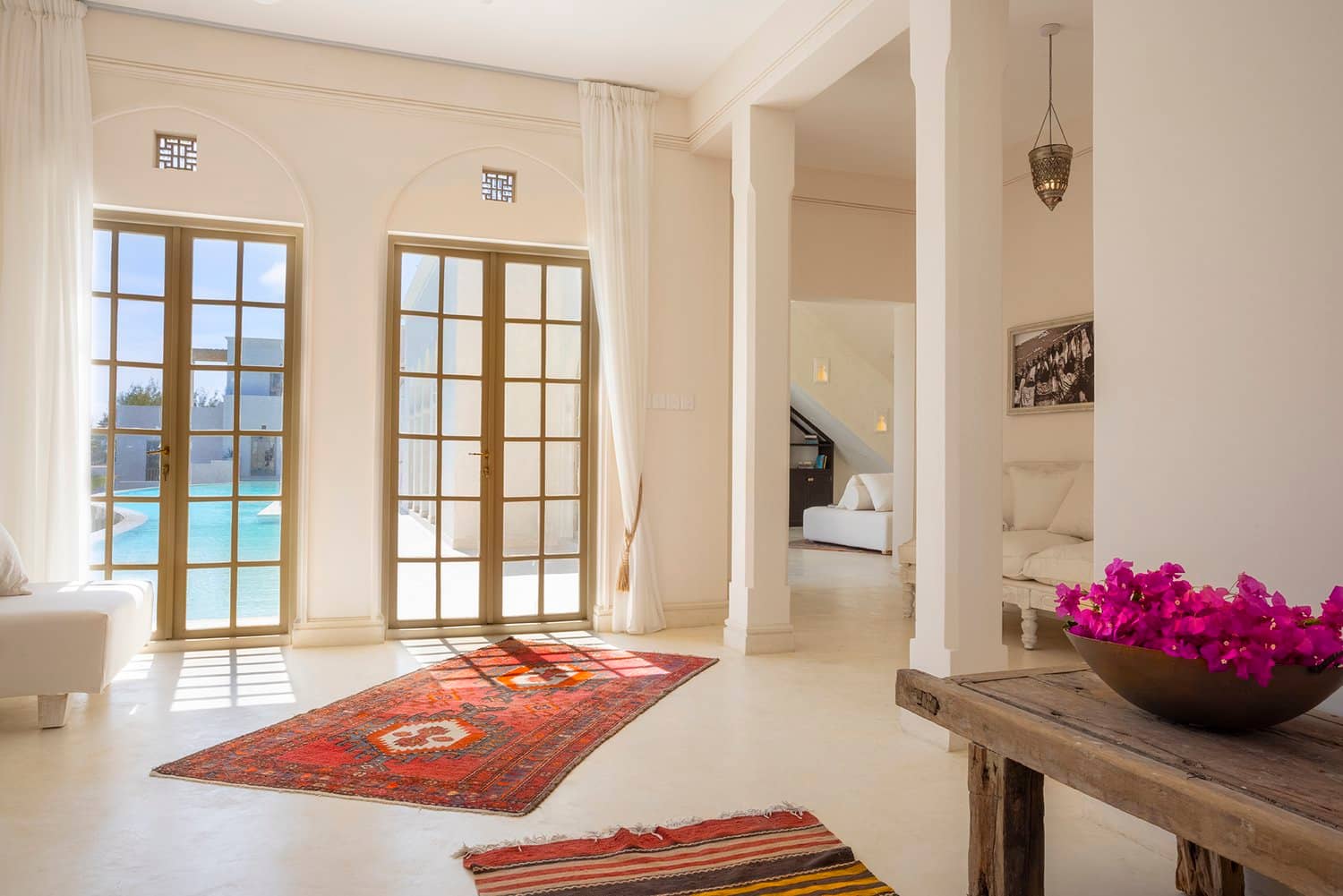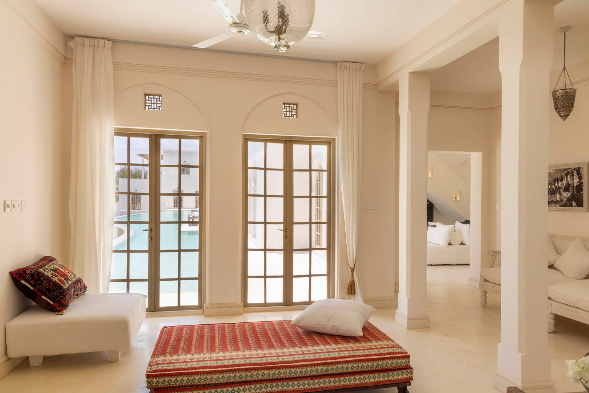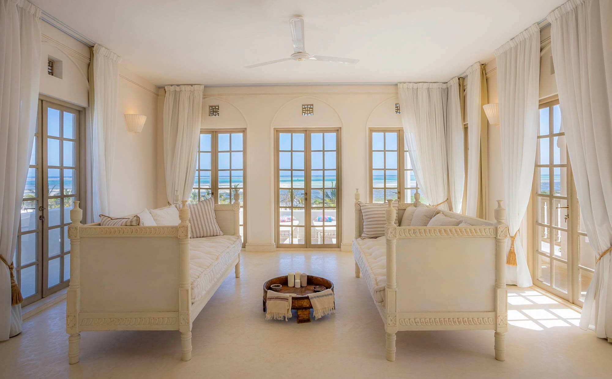 The villa features nine comfortable ensuite bedrooms with air-conditioning, all overlooking the Indian Ocean. Each room has its own privacy and a private terrace or garden, or direct access to the infinity pool. Each room of the villa is furnished with fine items from local artisans, Italian fabrics, Oriental carpets, and antiques from a collection from around the world.