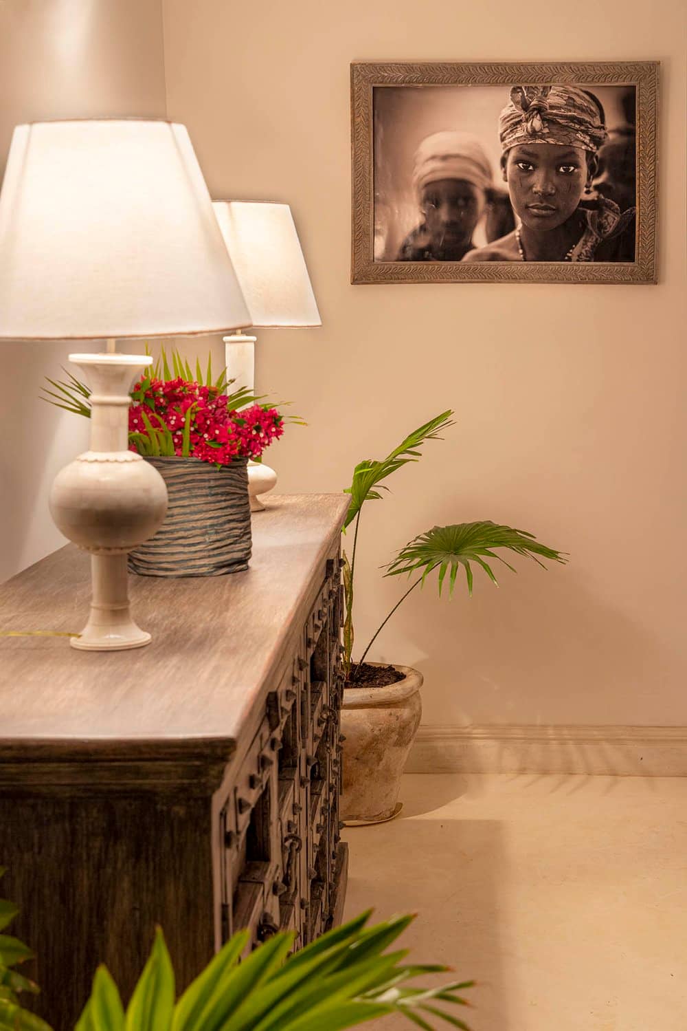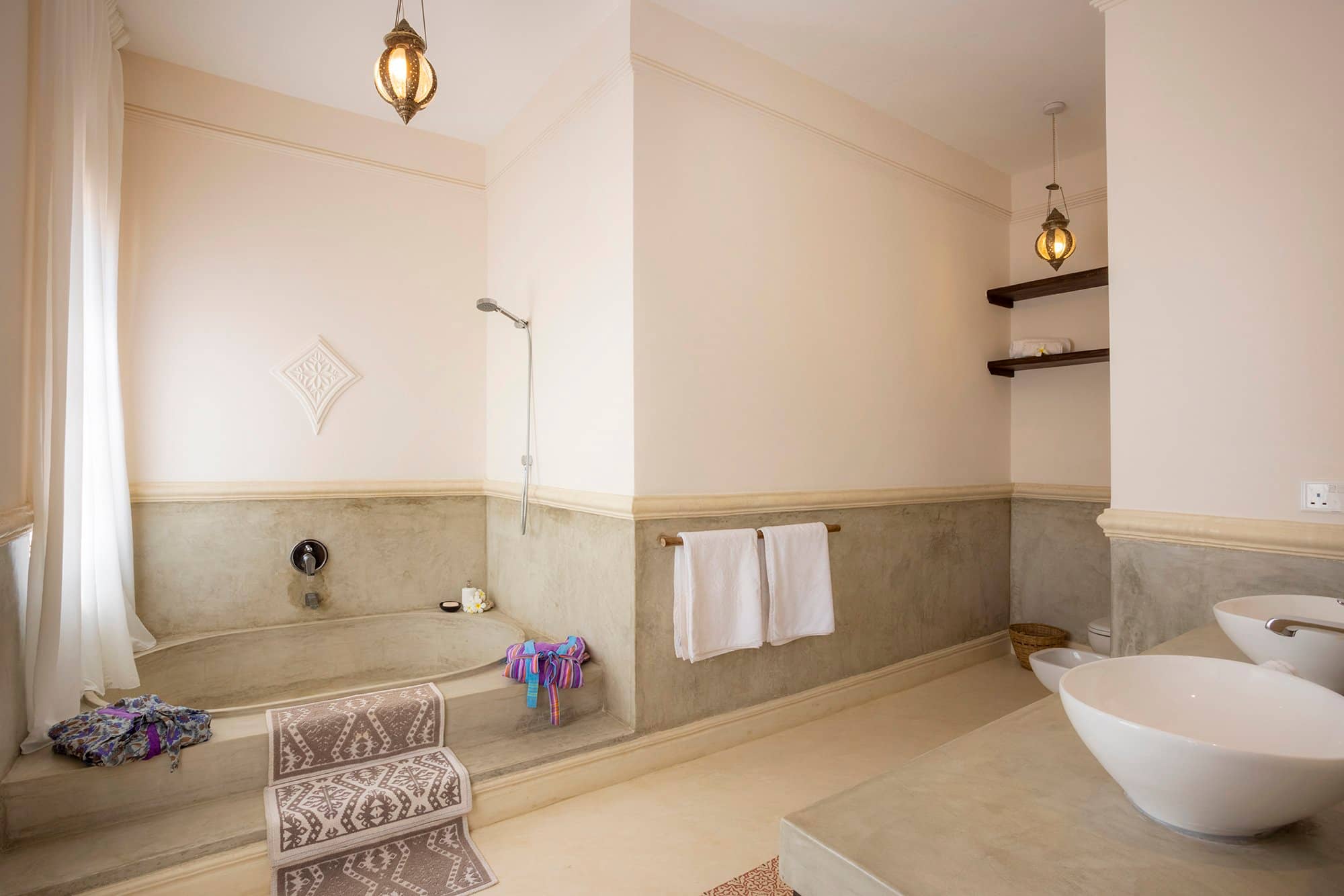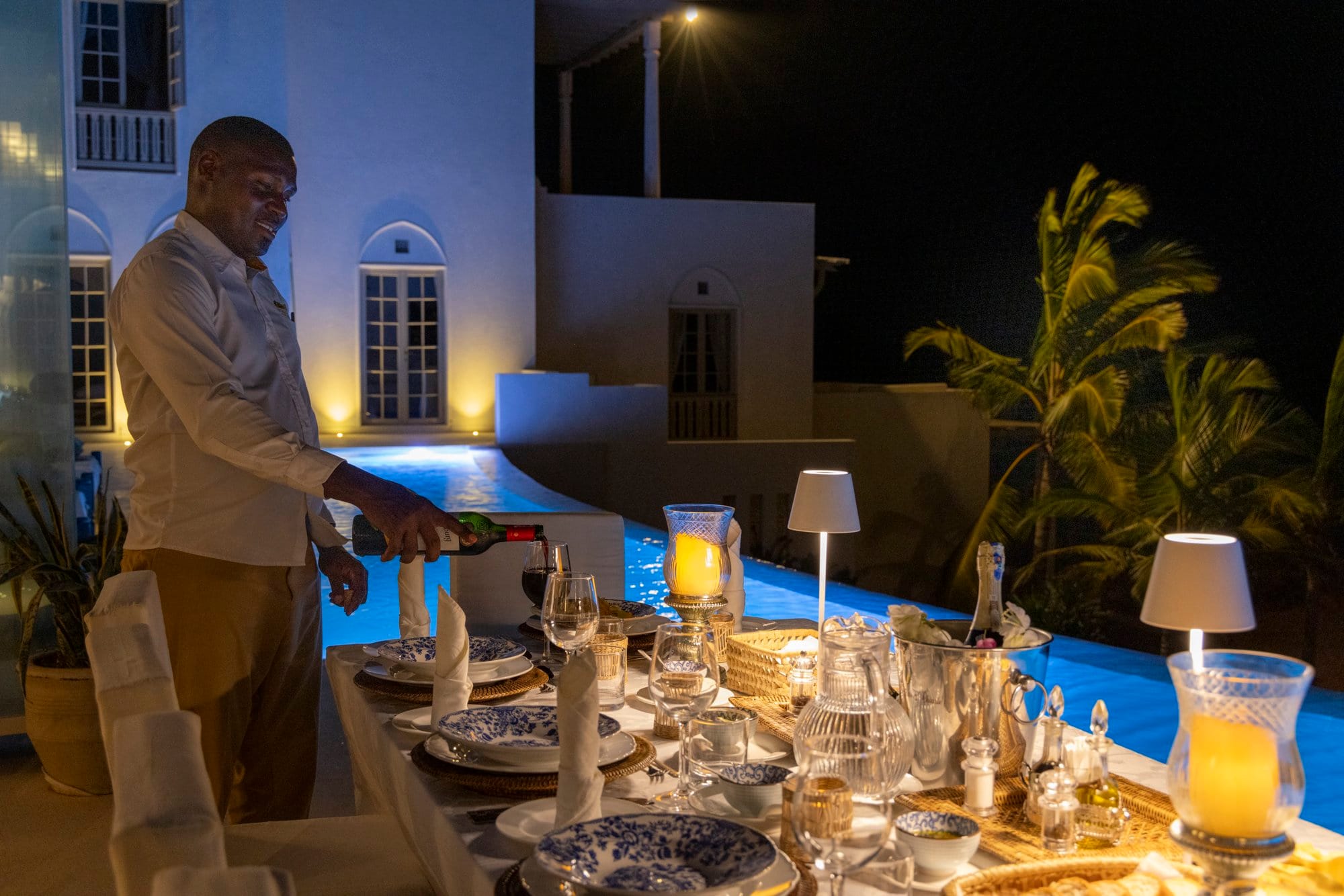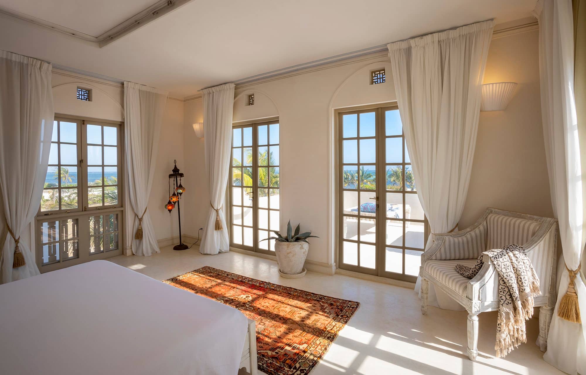 The villa features nine comfortable ensuite bedrooms with air-conditioning, all overlooking the Indian Ocean. Each room has its own privacy and a private terrace or garden, or direct access to the infinity pool. Each room of the villa is furnished with fine items from local artisans, Italian fabrics, Oriental carpets, and antiques from a collection from around the world.