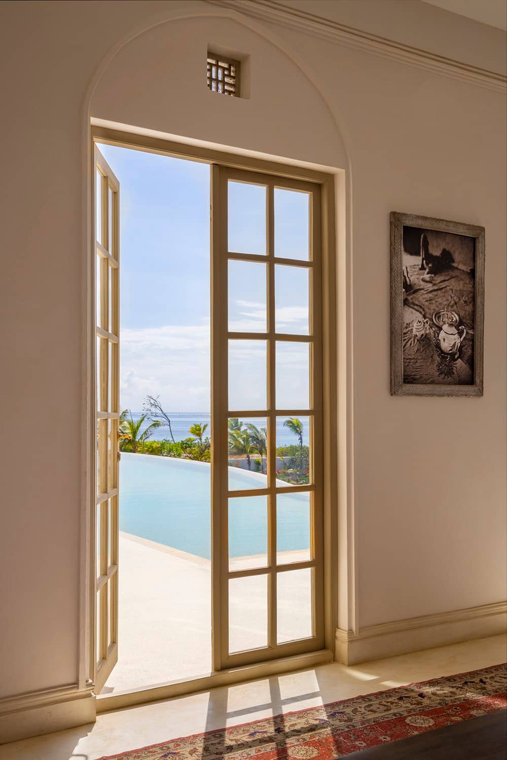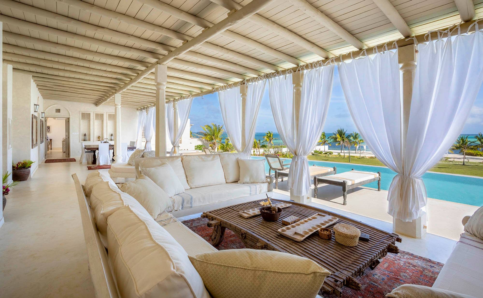The veranda features breathtaking ocean views, shady sofas, plenty of stylish ornaments collected locally and breezy spaces to eat, drink, relax and socialise. A modern folding system of frameless glazing allows you to enjoy the beautiful view of the pool and the ocean at any time.