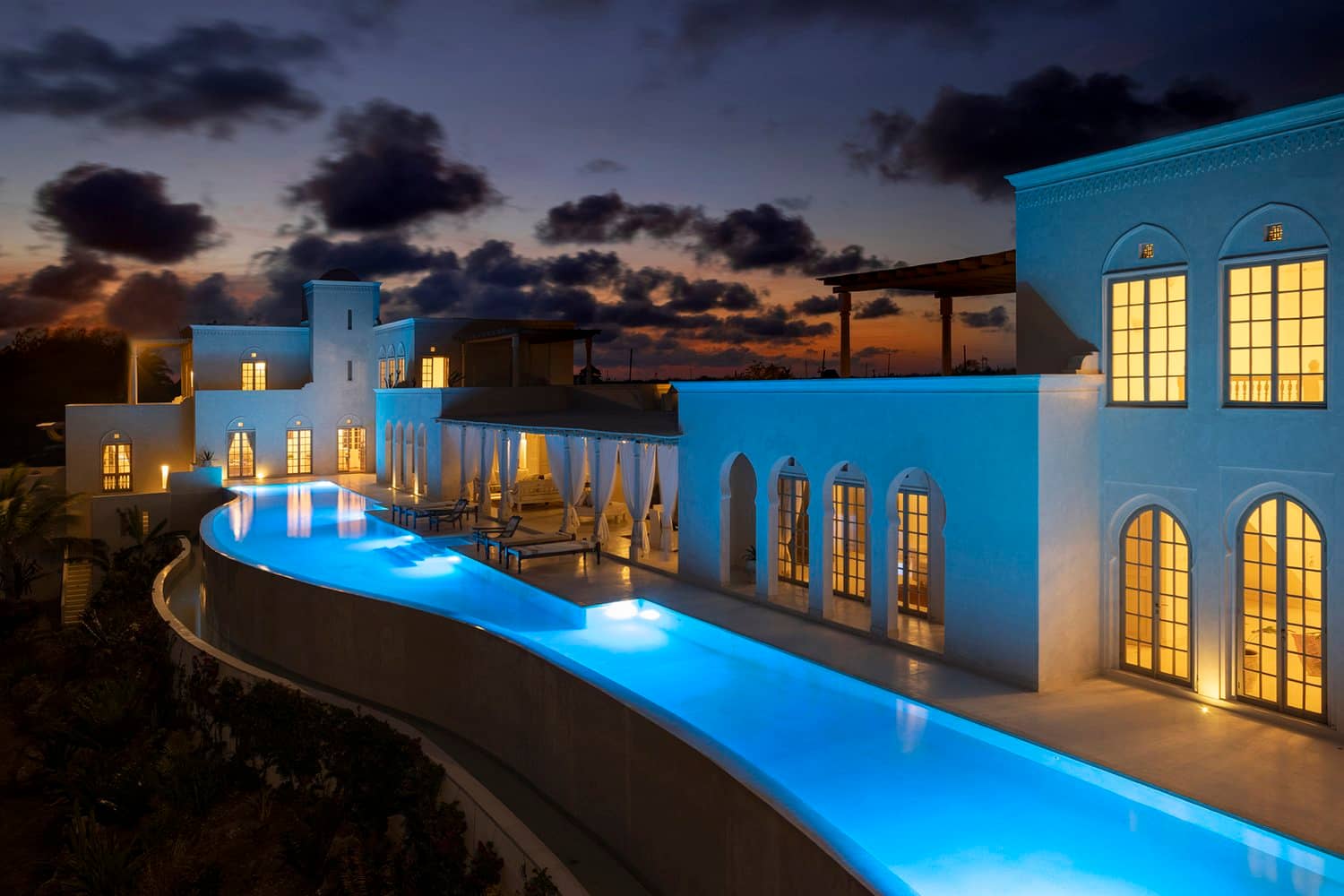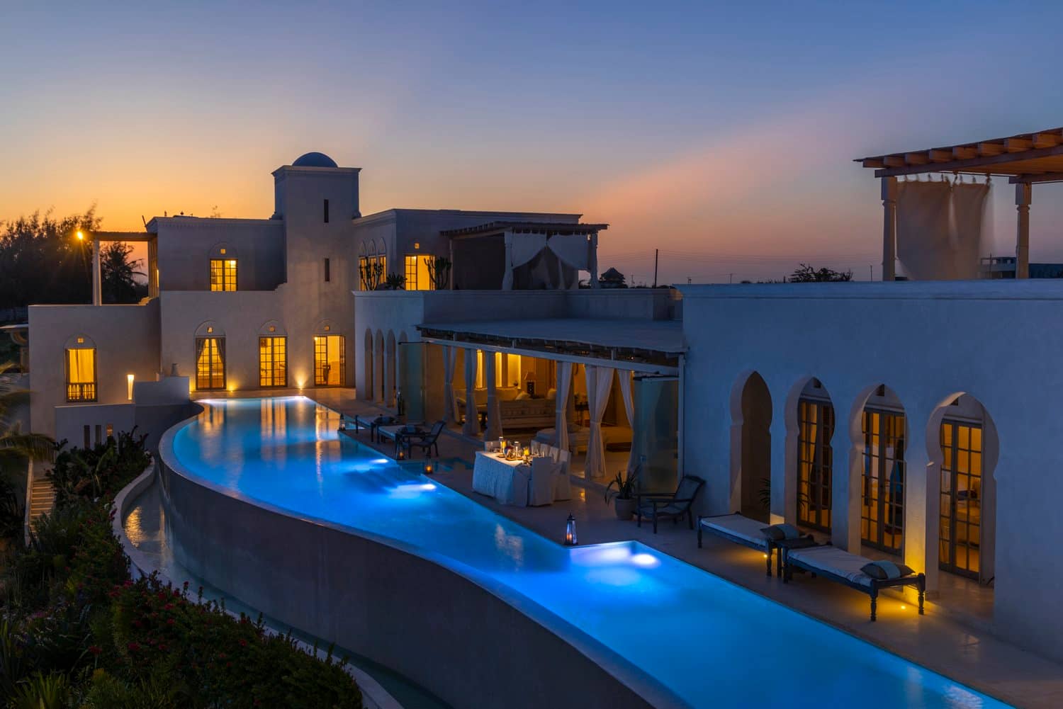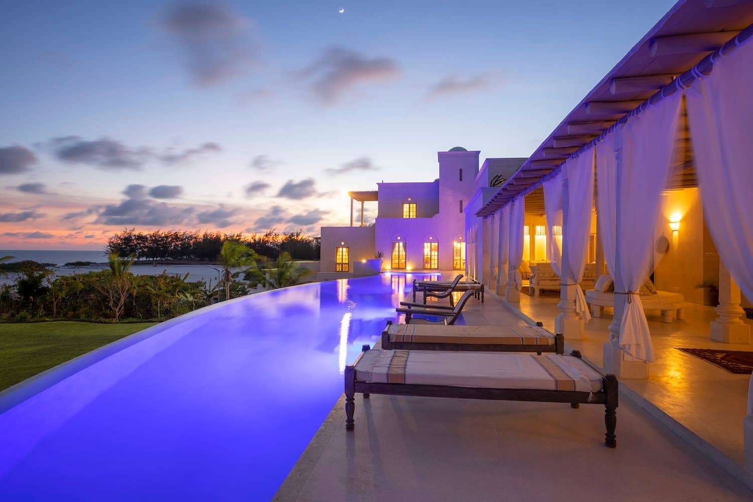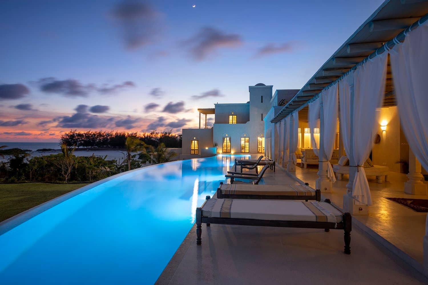 One of the most glamorous houses on the East African Coast, a dramatic, luxurious, and expansive new private home set in three peaceful beachfront acres between Malindi and Watamu, on Kenya’s north coast. The villa features 9 air-conditioned ensuite bedrooms and a spectacular 40-metre elevated infinity pool. Cool, refined, secluded, versatile, and sophisticated accommodation.
