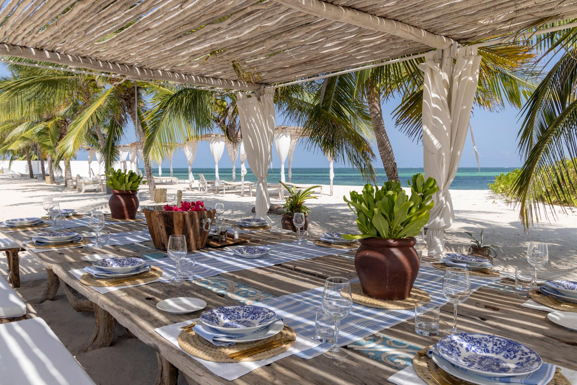 The private white sandy beach is equipped with half a dozen tented gazebos and an exclusive dining area which can be used for bonfire dinners, beach parties, weddings and themed dinners.