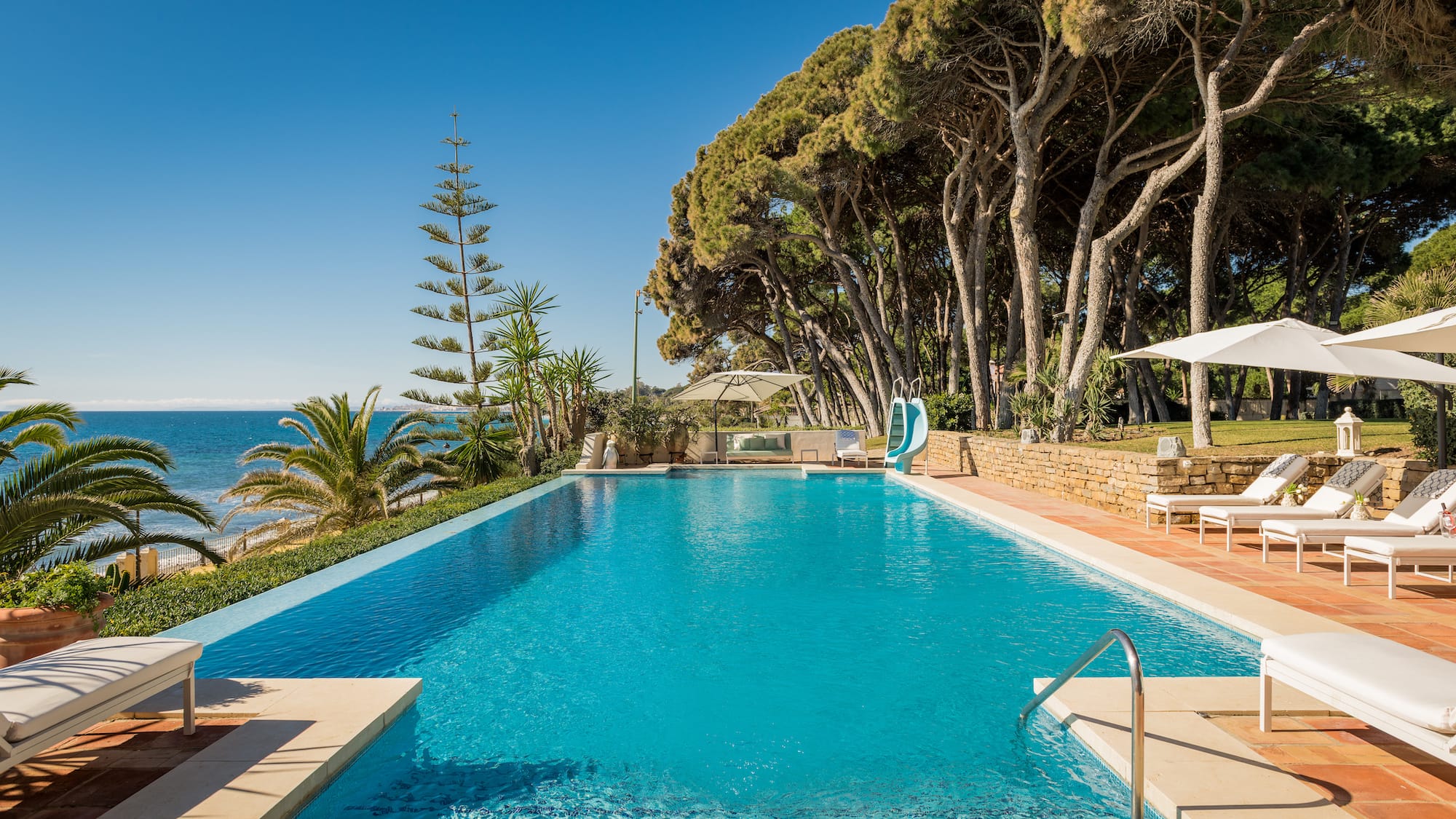 A stunning beachfront venue, representing one of Marbella’s premier exclusive-hire homes. Nestled amid exquisite landscaped gardens right by the Mediterranean Sea, it is conveniently situated at the heart of Marbella’s Golden Mile. Boasting 15 individually-designed luxurious guest rooms and 5 staff rooms, breathtaking sea views, and a number of amenities within its expansive 11,800 sqm private grounds, this property provides a unique setting for private celebrations, extended stays, corporate retreats, and weddings.
