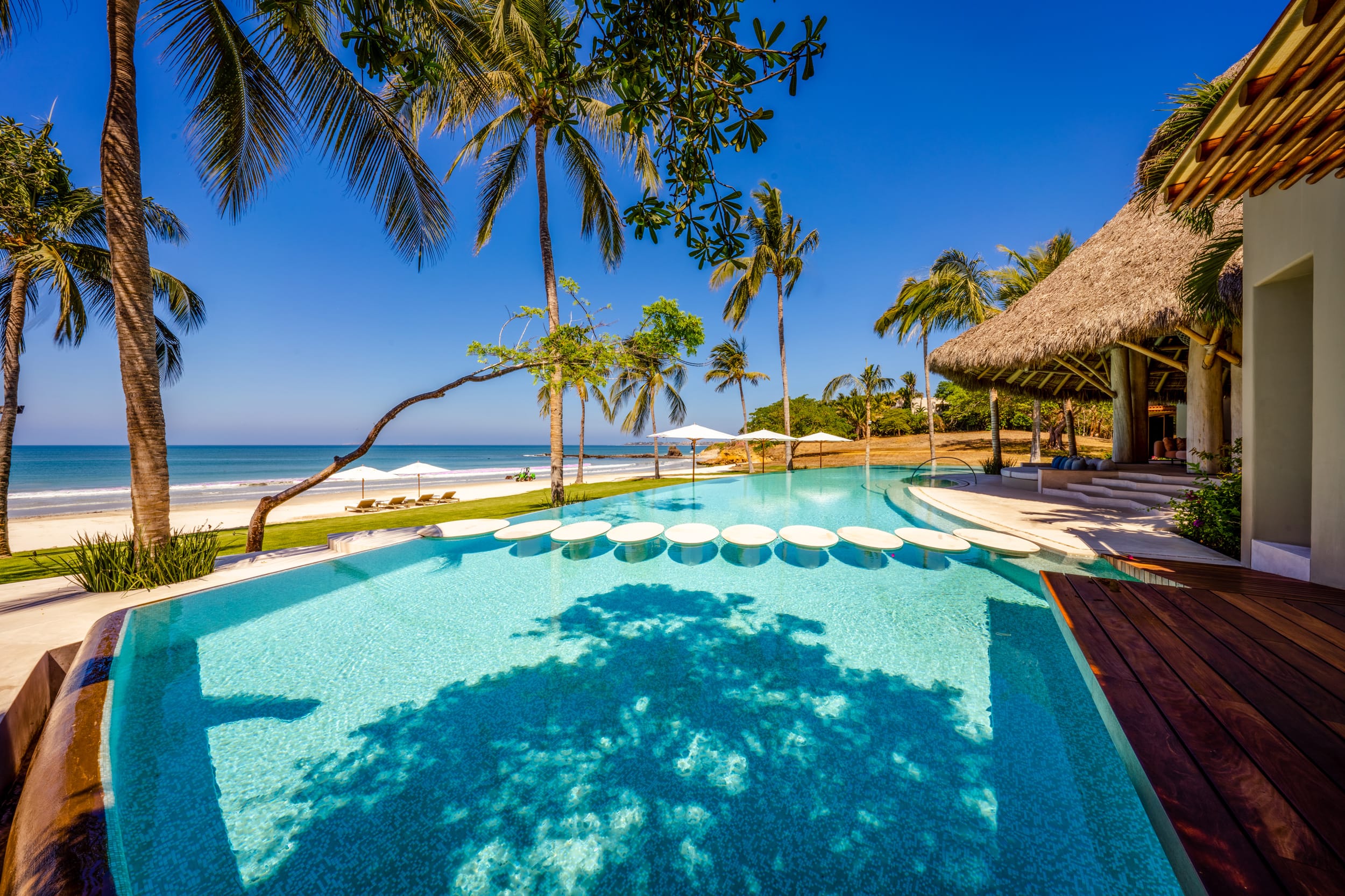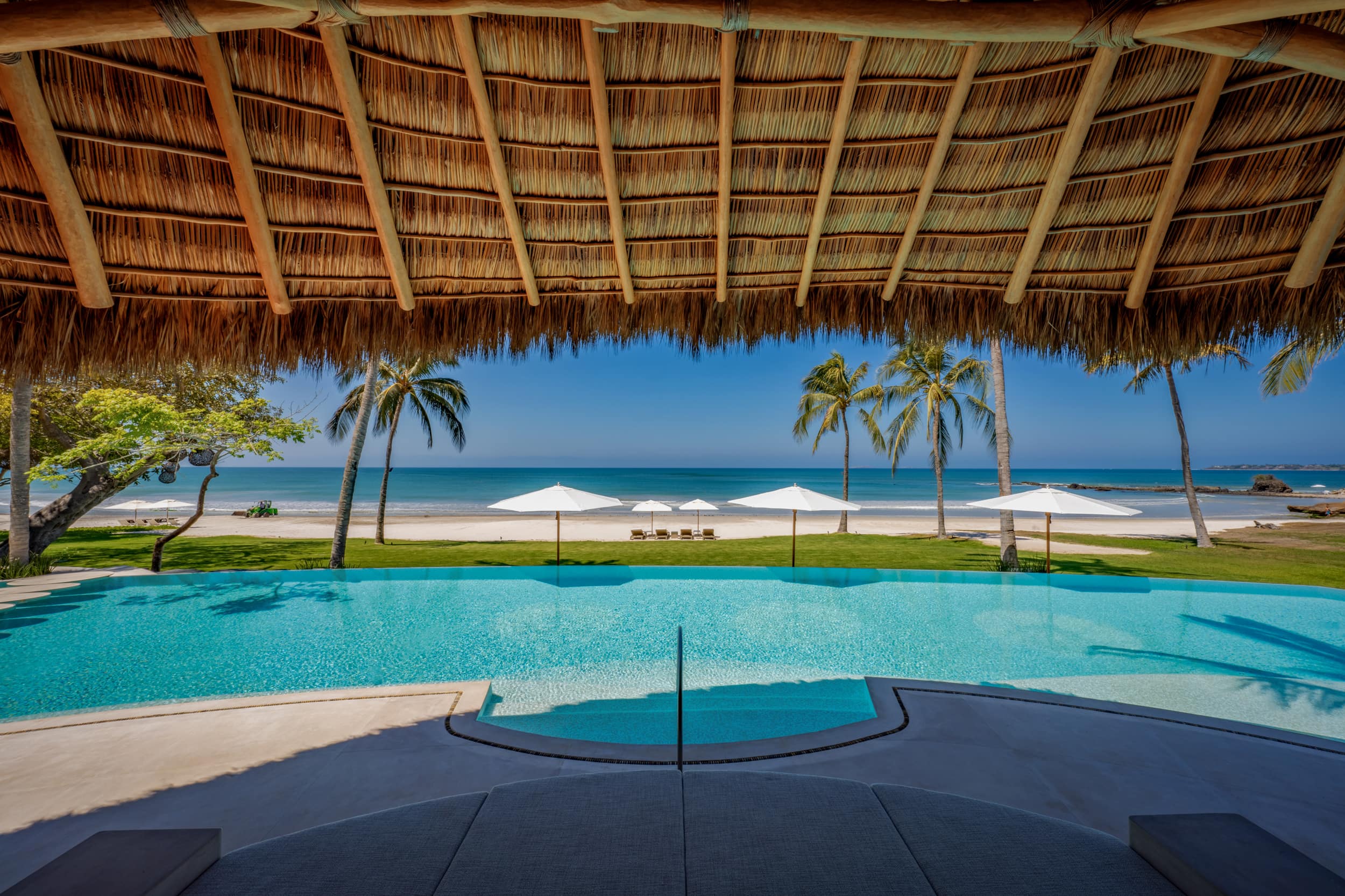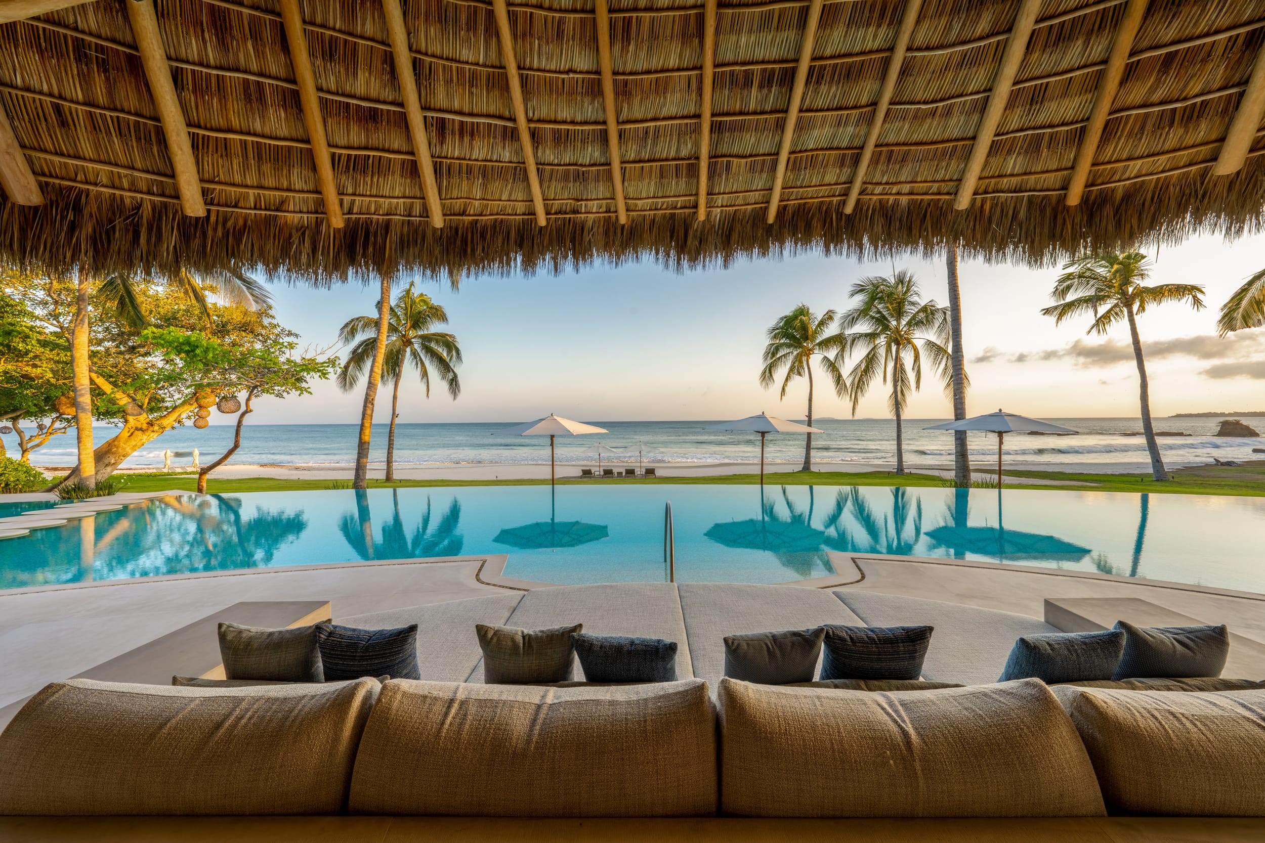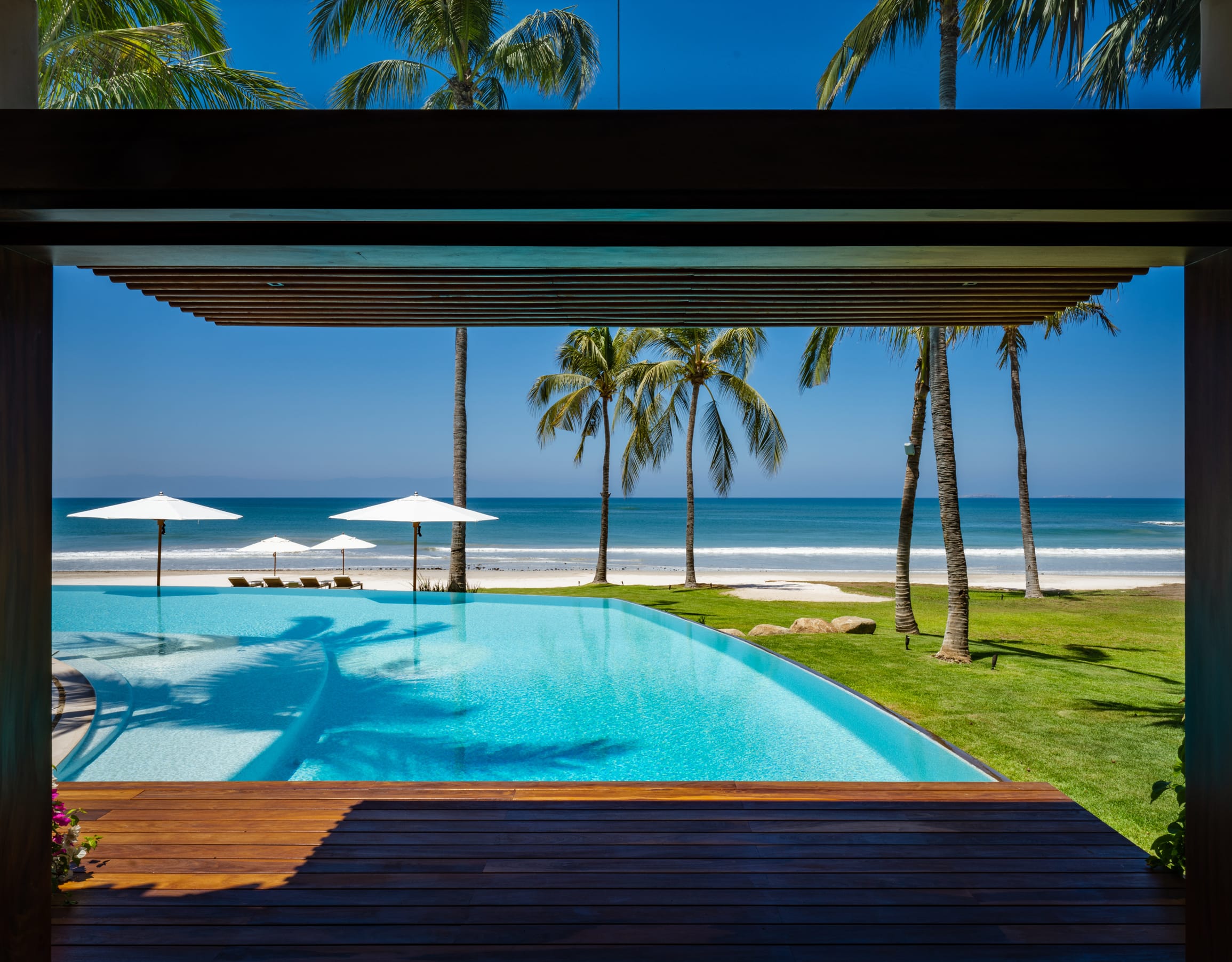 This beachfront villa is a spacious, modern, and luxurious retreat set on the most sought-after sandy beach within the exclusive Punta Mita resort.