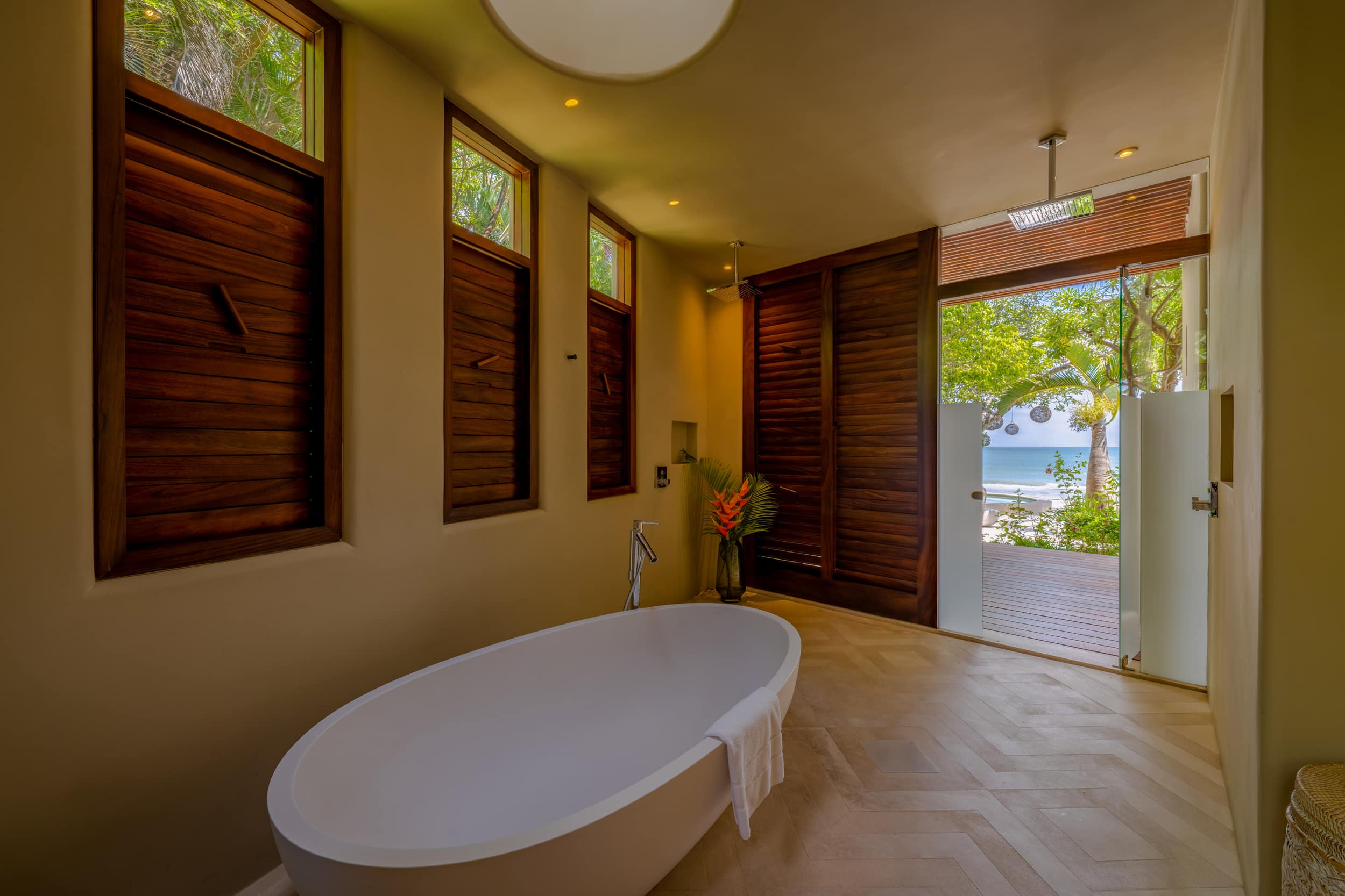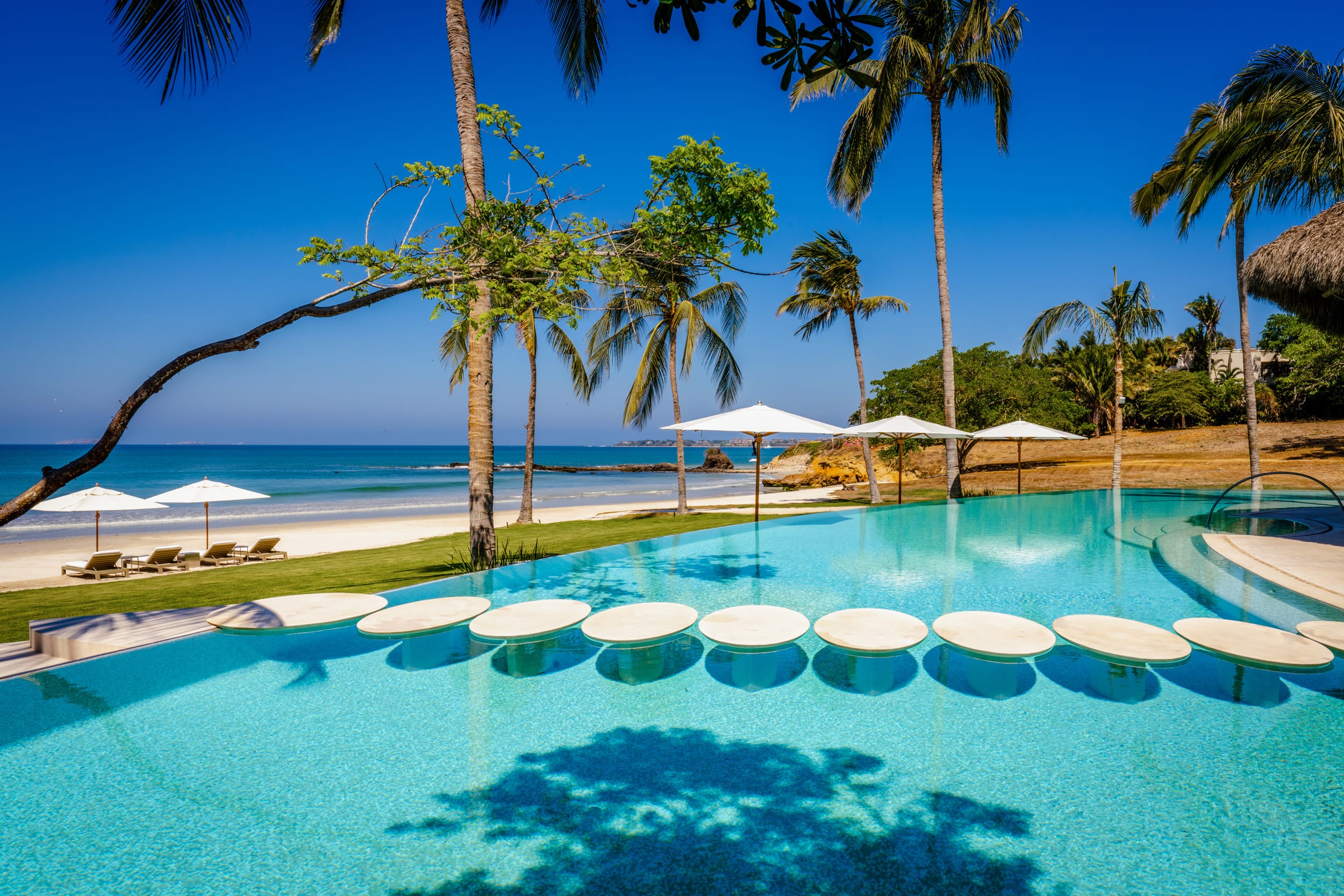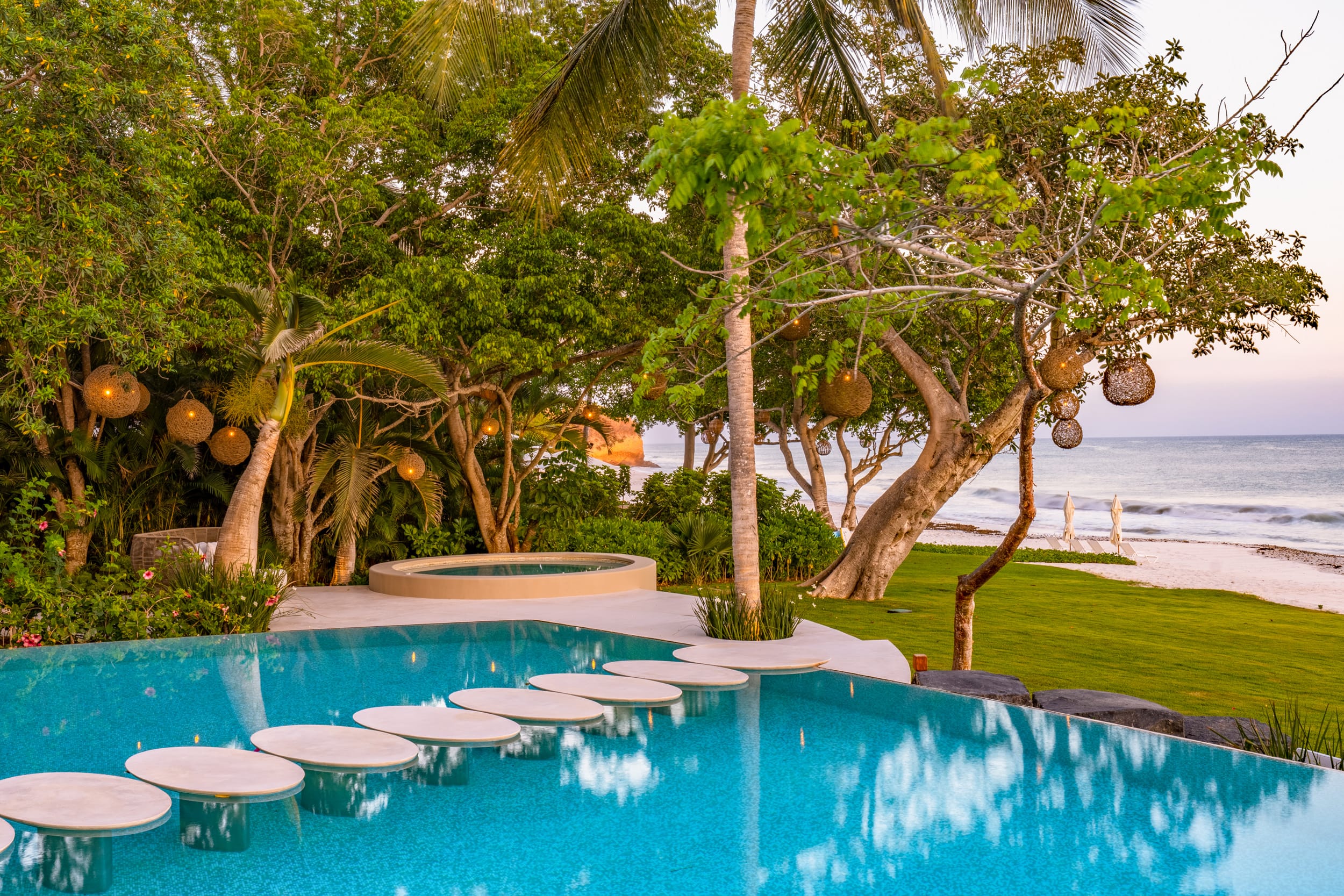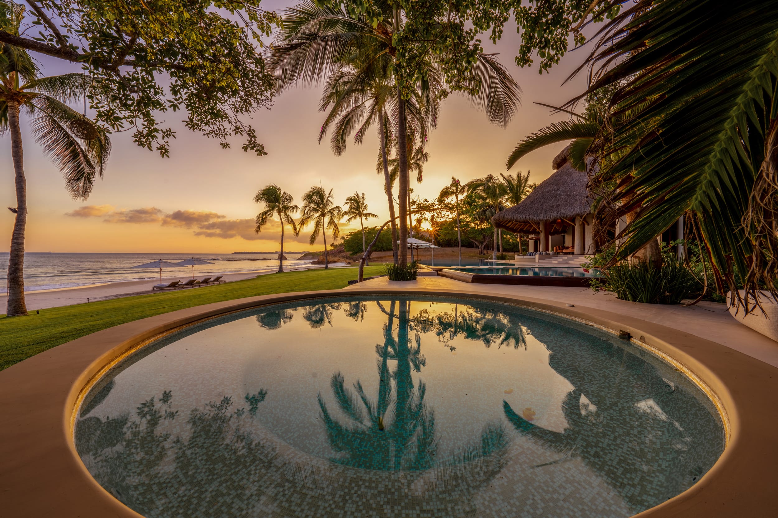 This beachfront villa is a spacious, modern, and luxurious retreat set on the most sought-after sandy beach within the exclusive Punta Mita resort.