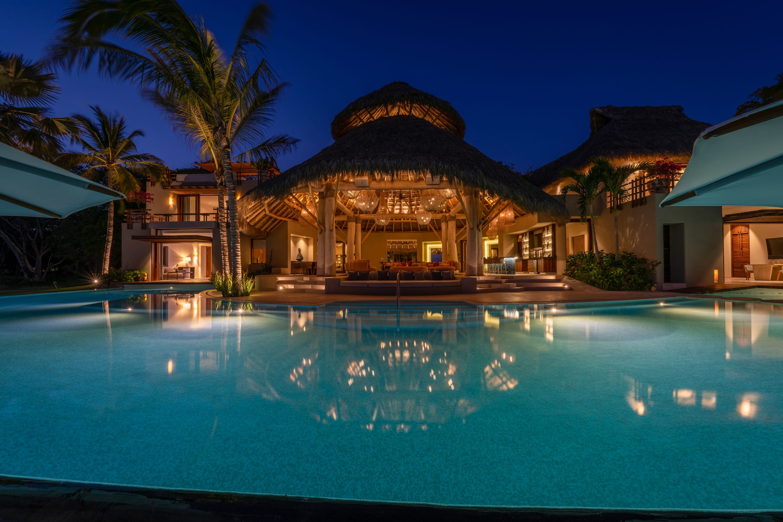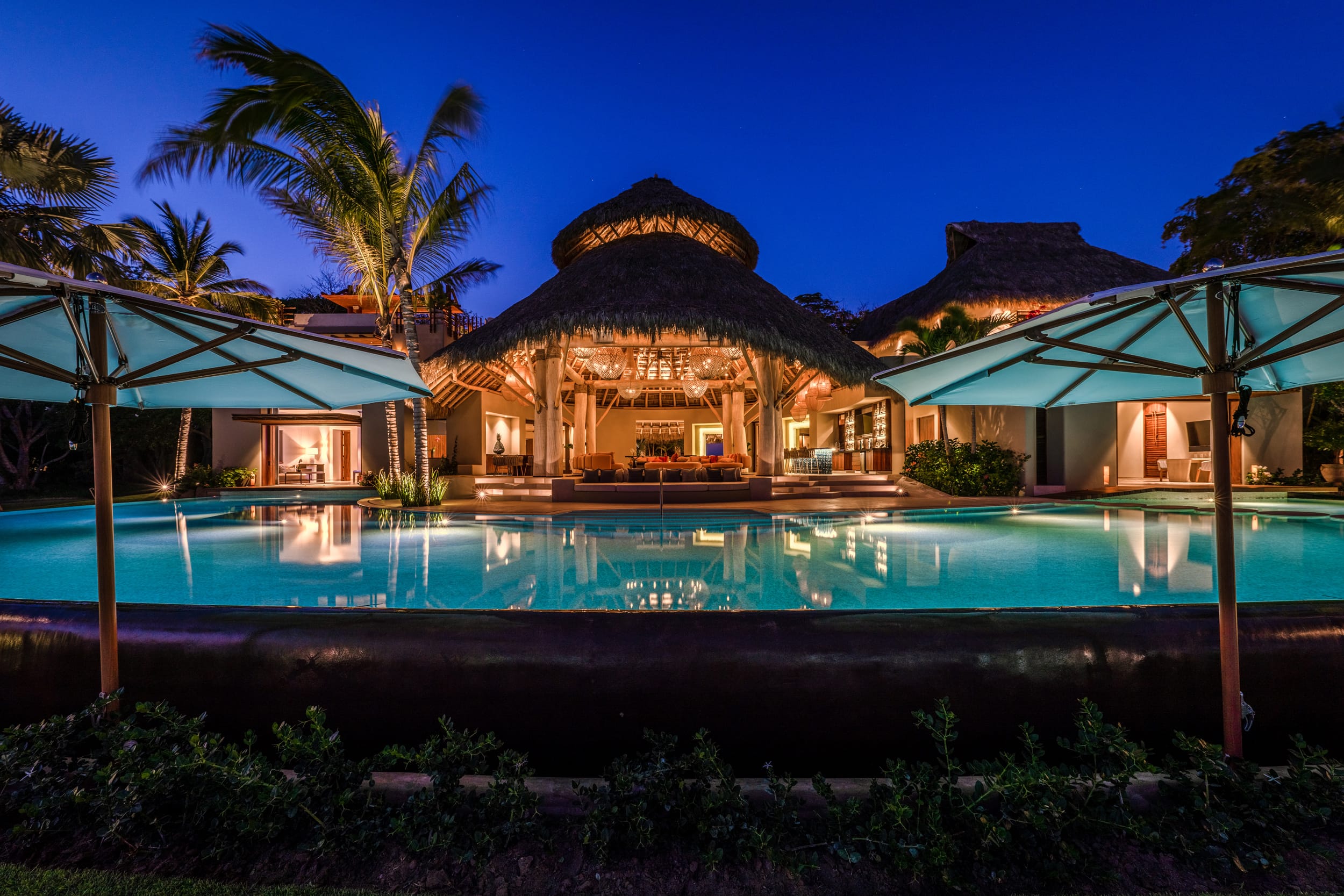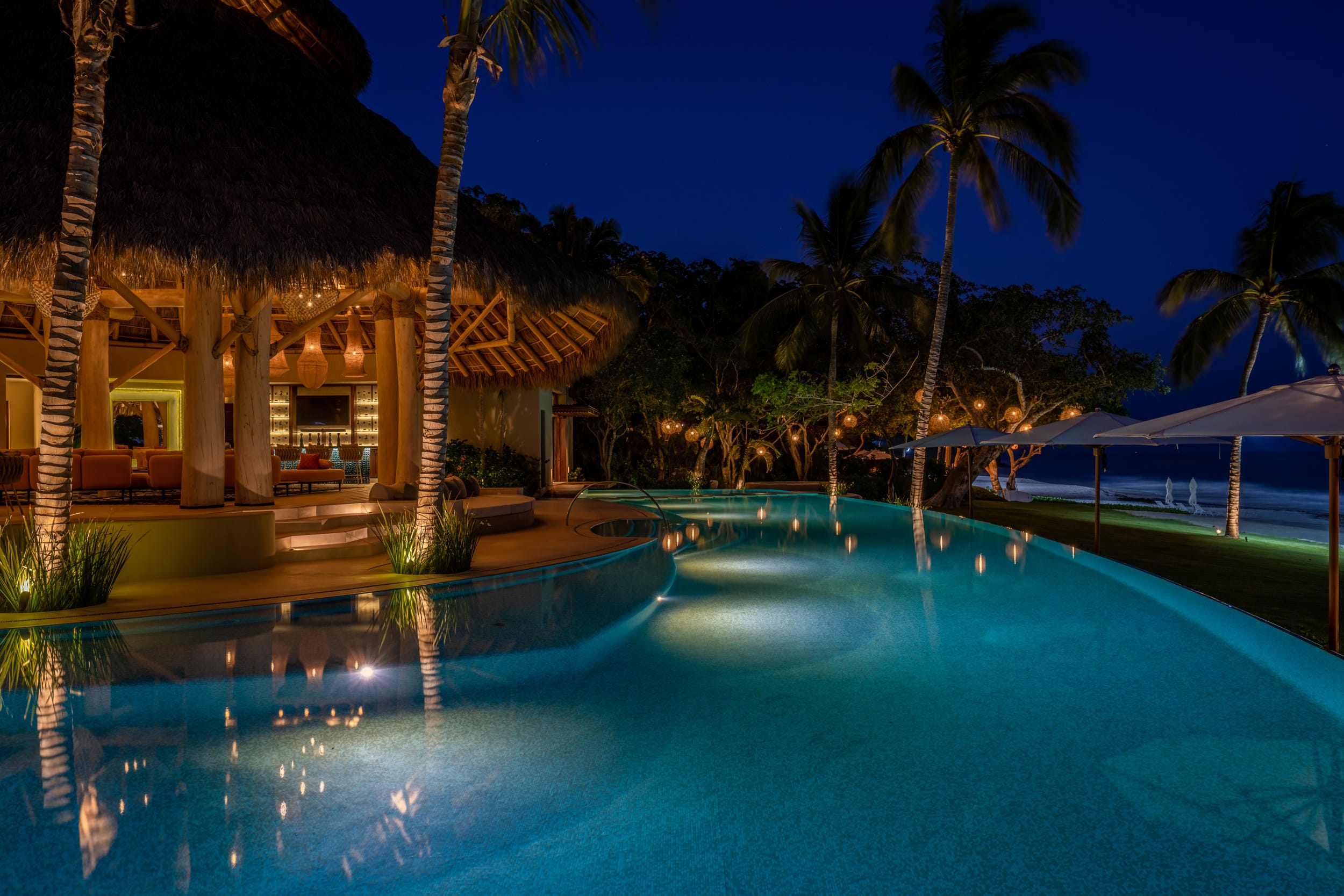 • 9-bedroom, 25,000 square foot estate on 2 acres designed by world-renowned Mexican architect, Manolo Mestre • Interiors conceived by award-winning contemporary Mexican designer Joaquin Homs • Prime beachfront location within the exclusive Ranchos community of Punta Mita • Huge heated infinity pool and oversized hot tub overlooking the Bay of Banderas and Marietas Islands • The absolute, finest white sand swimmable beach the entire Punta Mita development has to offer • Four Oceanfront Master Suites and five additional ensuite bedrooms featuring Four Seasons Signature mattresses and bedding • In-room wireless Sonos audio, smart TV, coffee & tea station, refrigerator, and bathroom amenities • Mexico’s only commercial-grade, Dolby Atmos in-home cinema, includes reclining theatre seats, Kaleidescape movies & entertainment offerings • Fully equipped commercial kitchen with highly trained and well-versed culinary team • Locally sourced, fresh organic food ingredients • Formal indoor dining for 18 • Alfresco Grand Palapa dining for 18 • Full bar within the Grand Palapa • Rooftop Skybar • Family TV room with 100 inch Sony TV, Devialet Phantom speakers and Dione soundbars • Private spa • Home gym featuring Technogym equipment (Kinesis Personal, Treadmill, Bike and Bench) • 6 person Golf Cart • Daily housekeeping & laundry service • In-room tea and coffee service • Live entertainment and fireworks arranged on request (if available) • Jet-ski rentals arranged on request (if available) • Full access to Punta Mita community including: 2 Jack Nicklaus Signature Gold Courses • Tennis & Pickleball Courts • 5 Beach Clubs featuring a variety of activities & food offerings