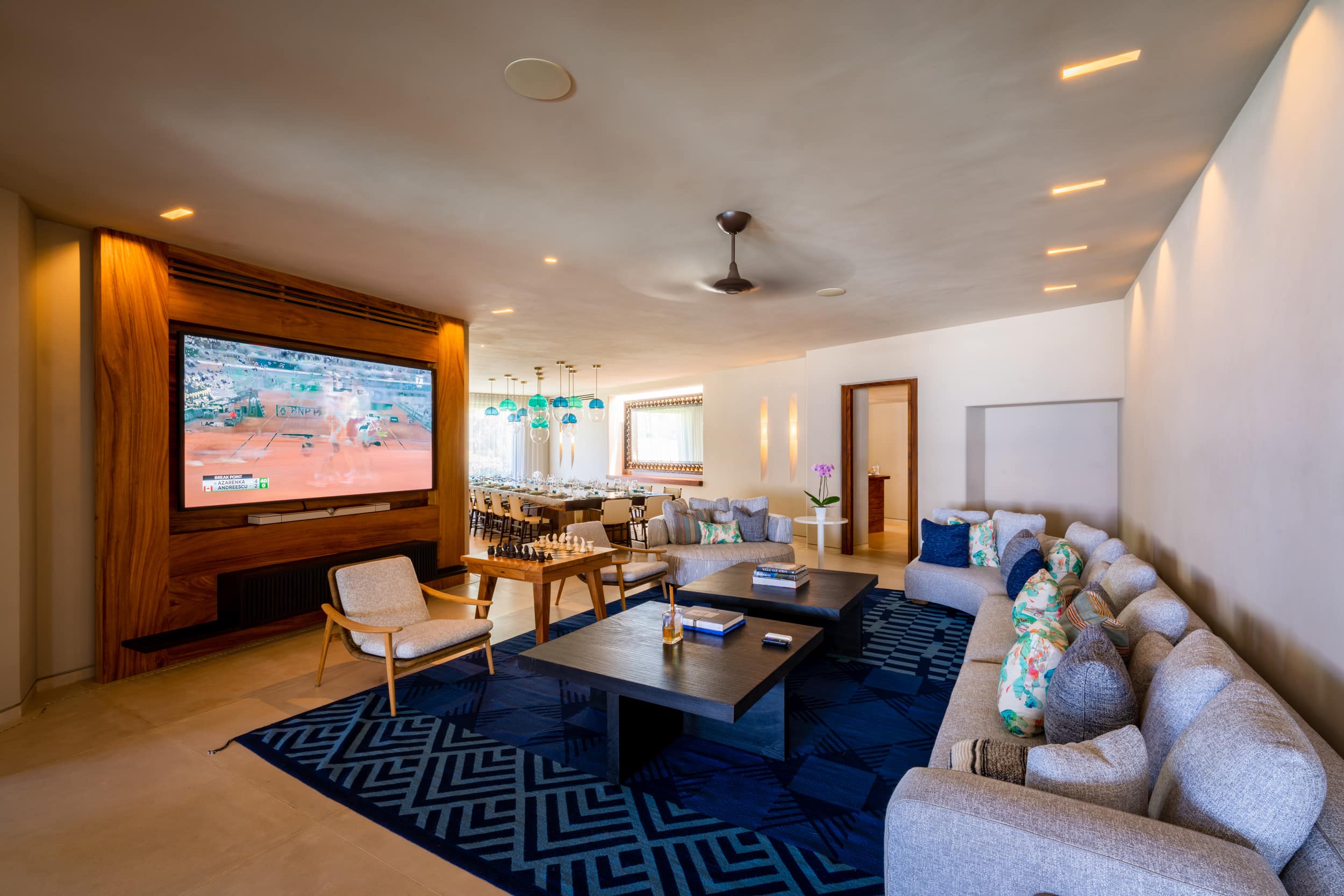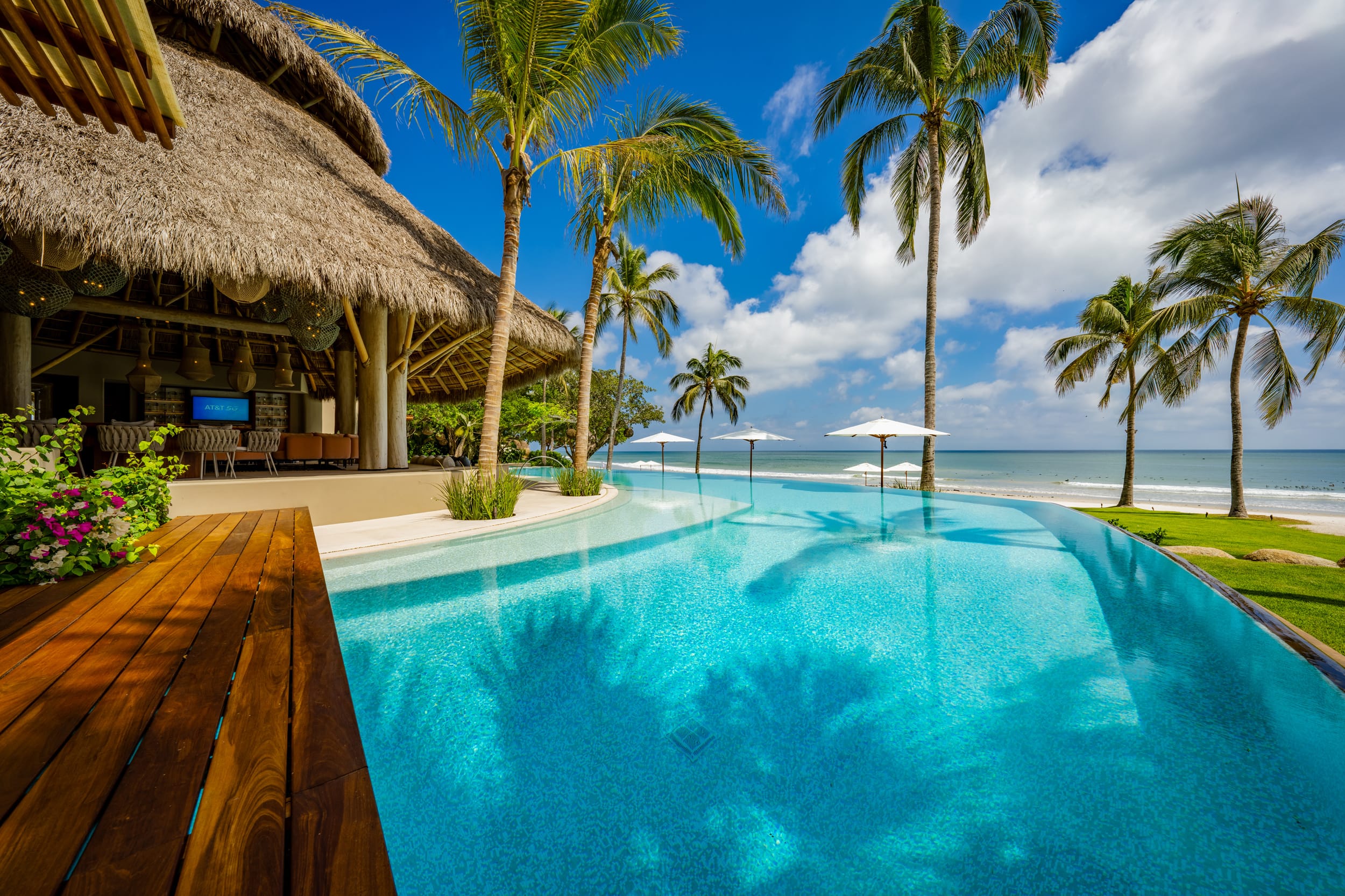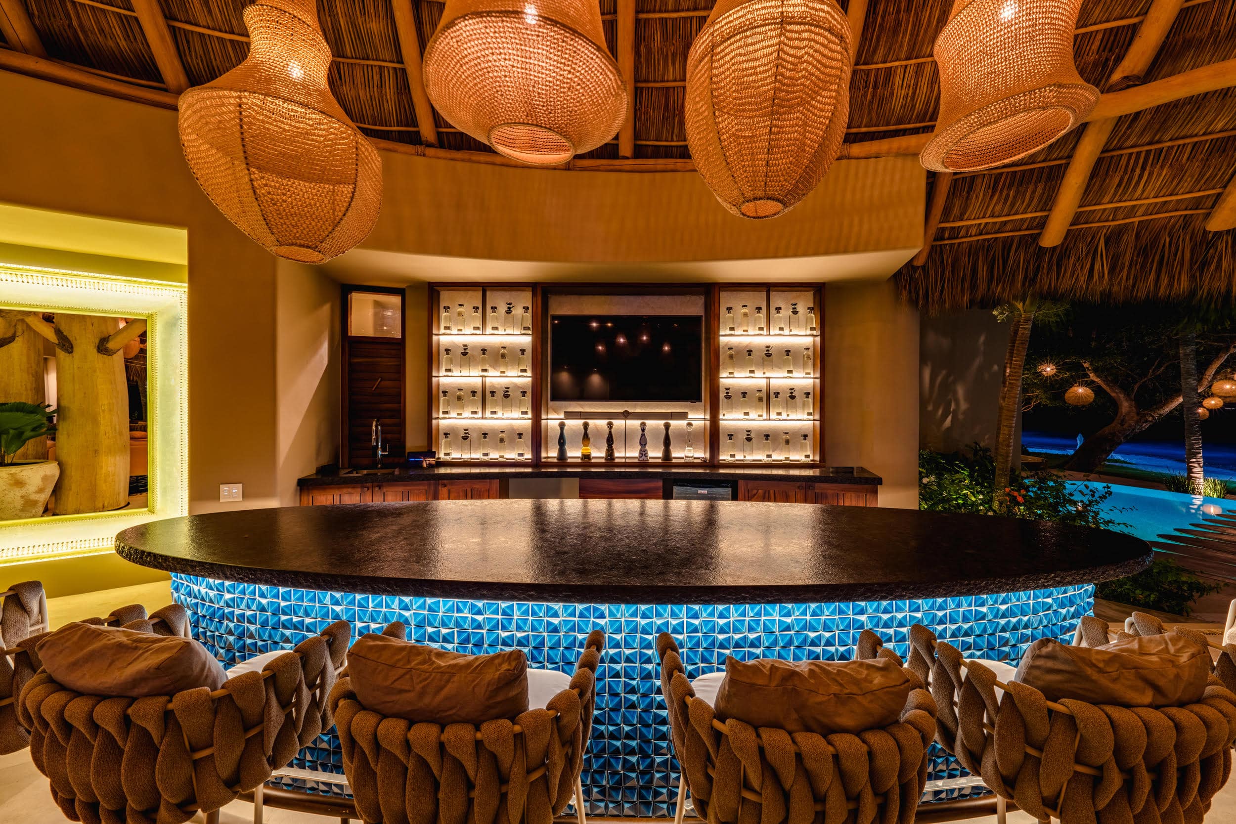 • 9-bedroom, 25,000 square foot estate on 2 acres designed by world-renowned Mexican architect, Manolo Mestre • Interiors conceived by award-winning contemporary Mexican designer Joaquin Homs • Prime beachfront location within the exclusive Ranchos community of Punta Mita • Huge heated infinity pool and oversized hot tub overlooking the Bay of Banderas and Marietas Islands • The absolute, finest white sand swimmable beach the entire Punta Mita development has to offer • Four Oceanfront Master Suites and five additional ensuite bedrooms featuring Four Seasons Signature mattresses and bedding • In-room wireless Sonos audio, smart TV, coffee & tea station, refrigerator, and bathroom amenities • Mexico’s only commercial-grade, Dolby Atmos in-home cinema, includes reclining theatre seats, Kaleidescape movies & entertainment offerings • Fully equipped commercial kitchen with highly trained and well-versed culinary team • Locally sourced, fresh organic food ingredients • Formal indoor dining for 18 • Alfresco Grand Palapa dining for 18 • Full bar within the Grand Palapa • Rooftop Skybar • Family TV room with 100 inch Sony TV, Devialet Phantom speakers and Dione soundbars • Private spa • Home gym featuring Technogym equipment (Kinesis Personal, Treadmill, Bike and Bench) • 6 person Golf Cart • Daily housekeeping & laundry service • In-room tea and coffee service • Live entertainment and fireworks arranged on request (if available) • Jet-ski rentals arranged on request (if available) • Full access to Punta Mita community including: 2 Jack Nicklaus Signature Gold Courses • Tennis & Pickleball Courts • 5 Beach Clubs featuring a variety of activities & food offerings