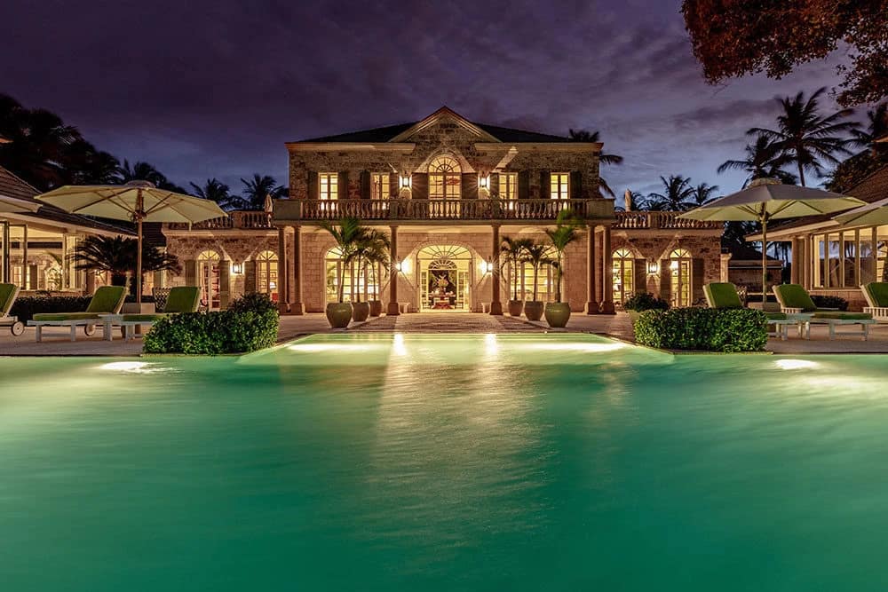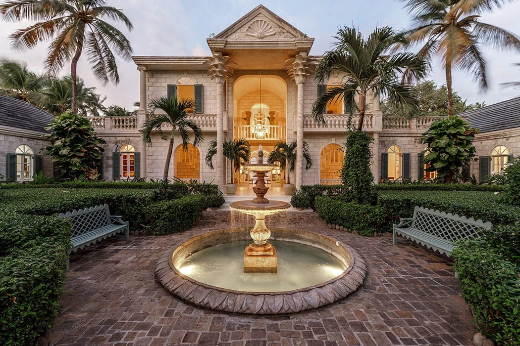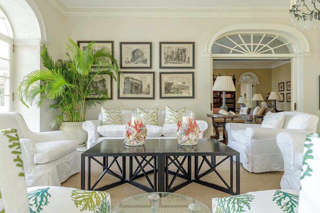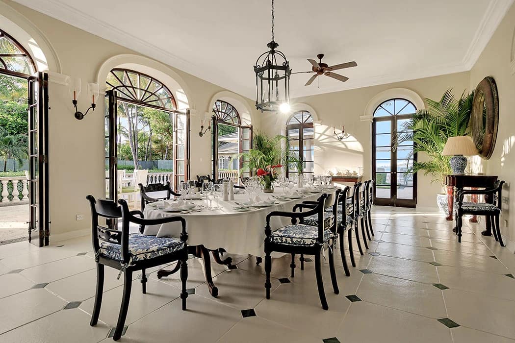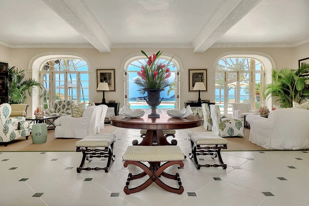 Perfectly placed on six beachfront acres, the impressive Palm Beach estate is both dramatic in its setting and architectural facade, yet welcoming and comfortable for its guests. The grand Palladian style residence influenced by Oliver Messel, the main villa boasts elegant formal living and dining rooms, whilst adjacent sitting room and outdoor verandahs offer more casual space for relaxed entertaining.