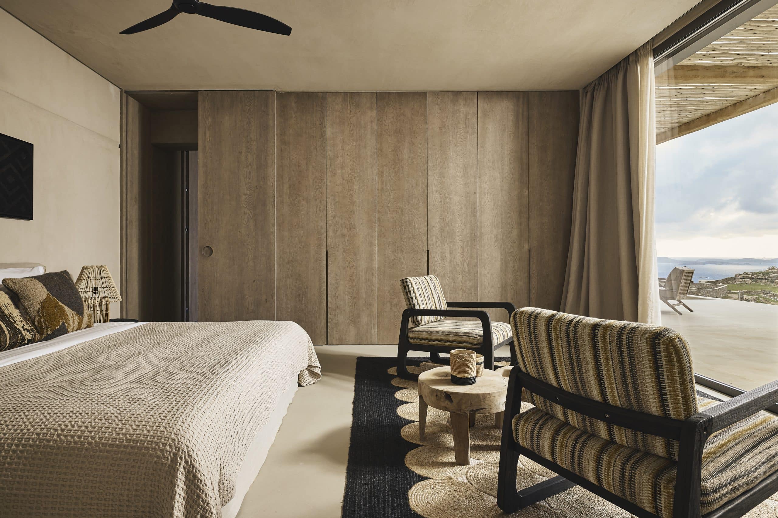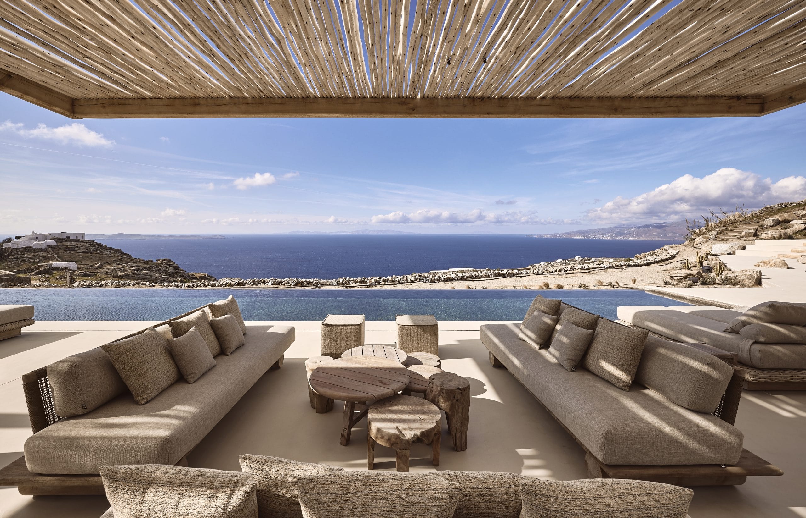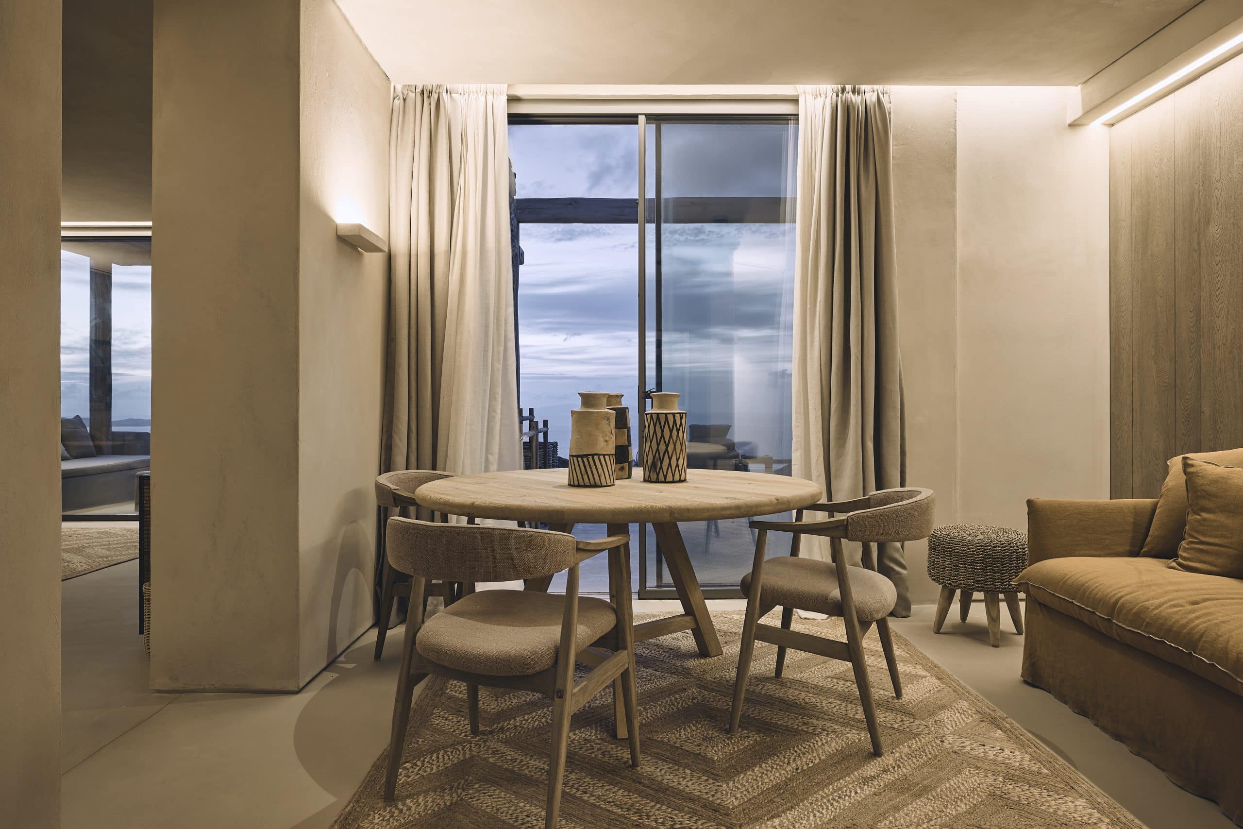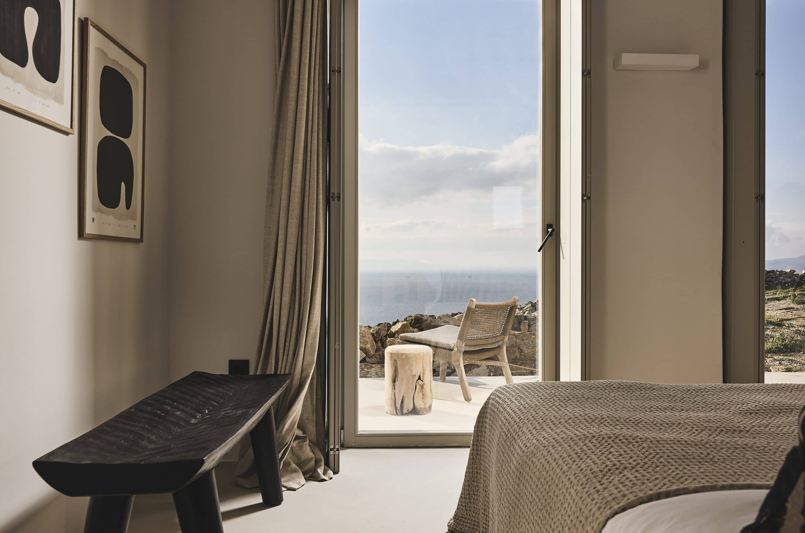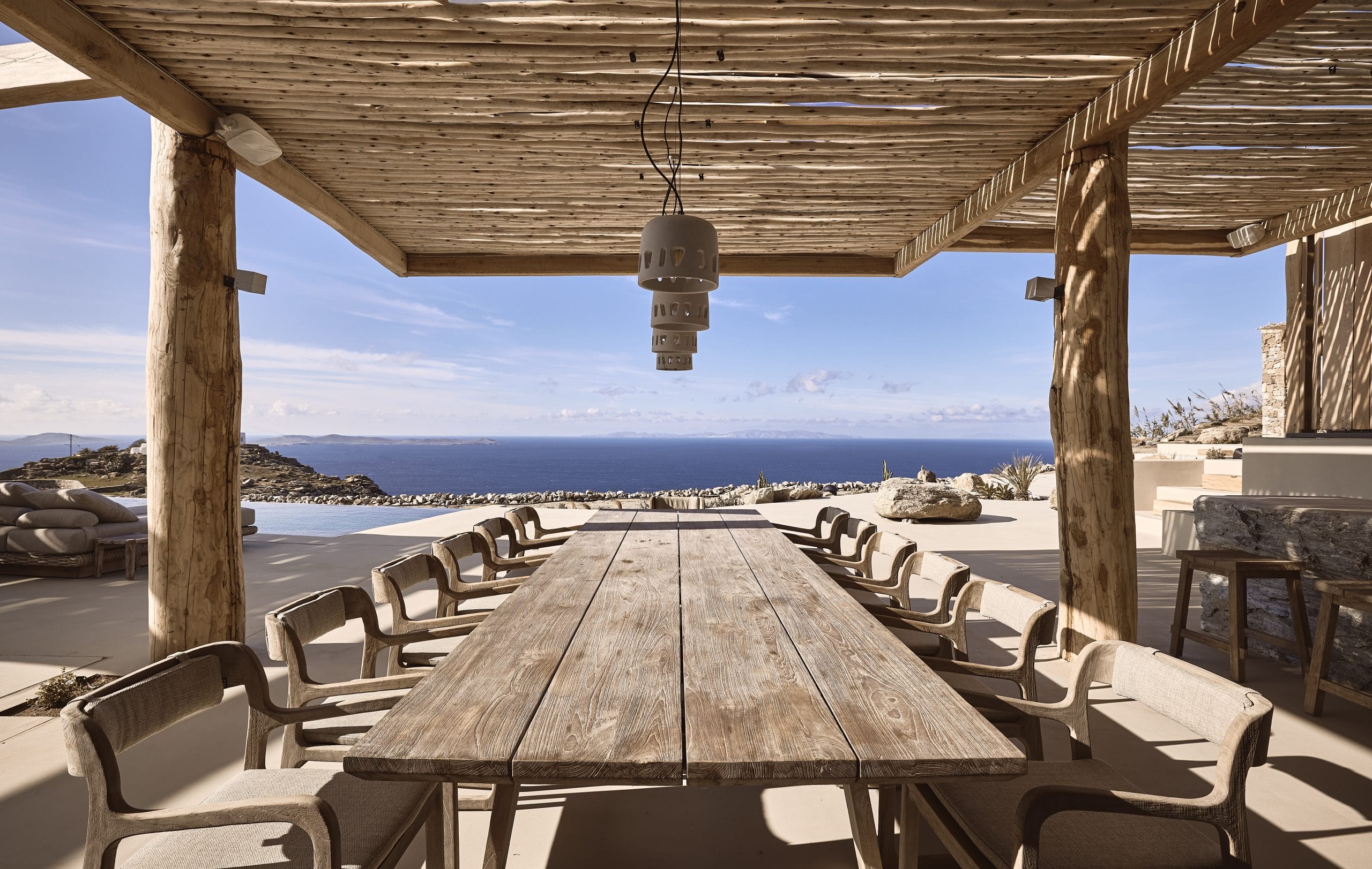 The villa includes seven beautifully appointed bedrooms, among them two master suites with private lounges and two independent guest apartments, each featuring its own private infinity mini pool, that is ideal for guests seeking added privacy. The outdoor areas are truly spectacular, centered around a 26-meter infinity pool (heatable upon request) overlooking the sea and horizon. Beside the pool, guests can enjoy an open bar and lounge area, complete with a convenient outdoor shower. A fully equipped BBQ area provides the perfect setting for outdoor dining and entertaining.