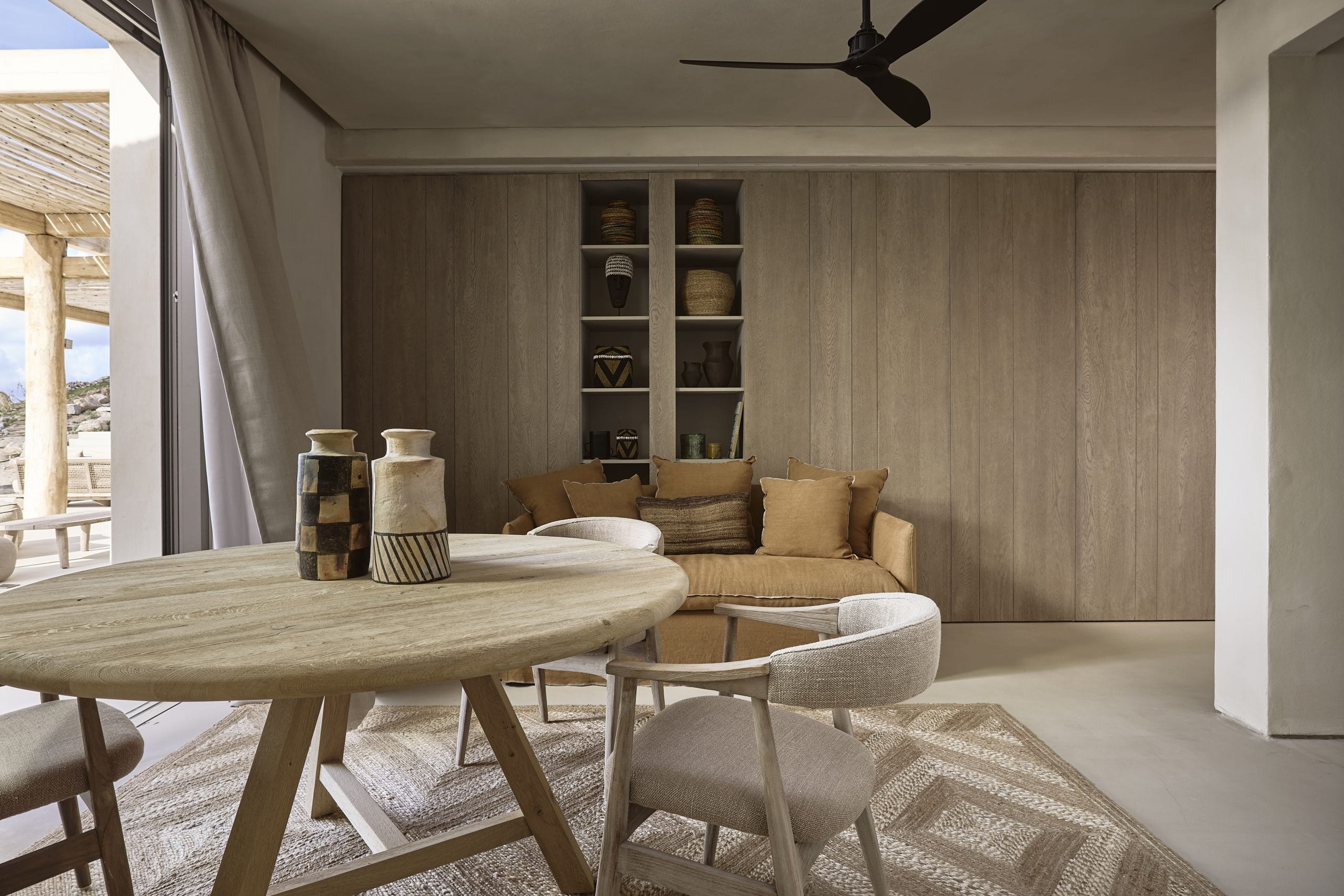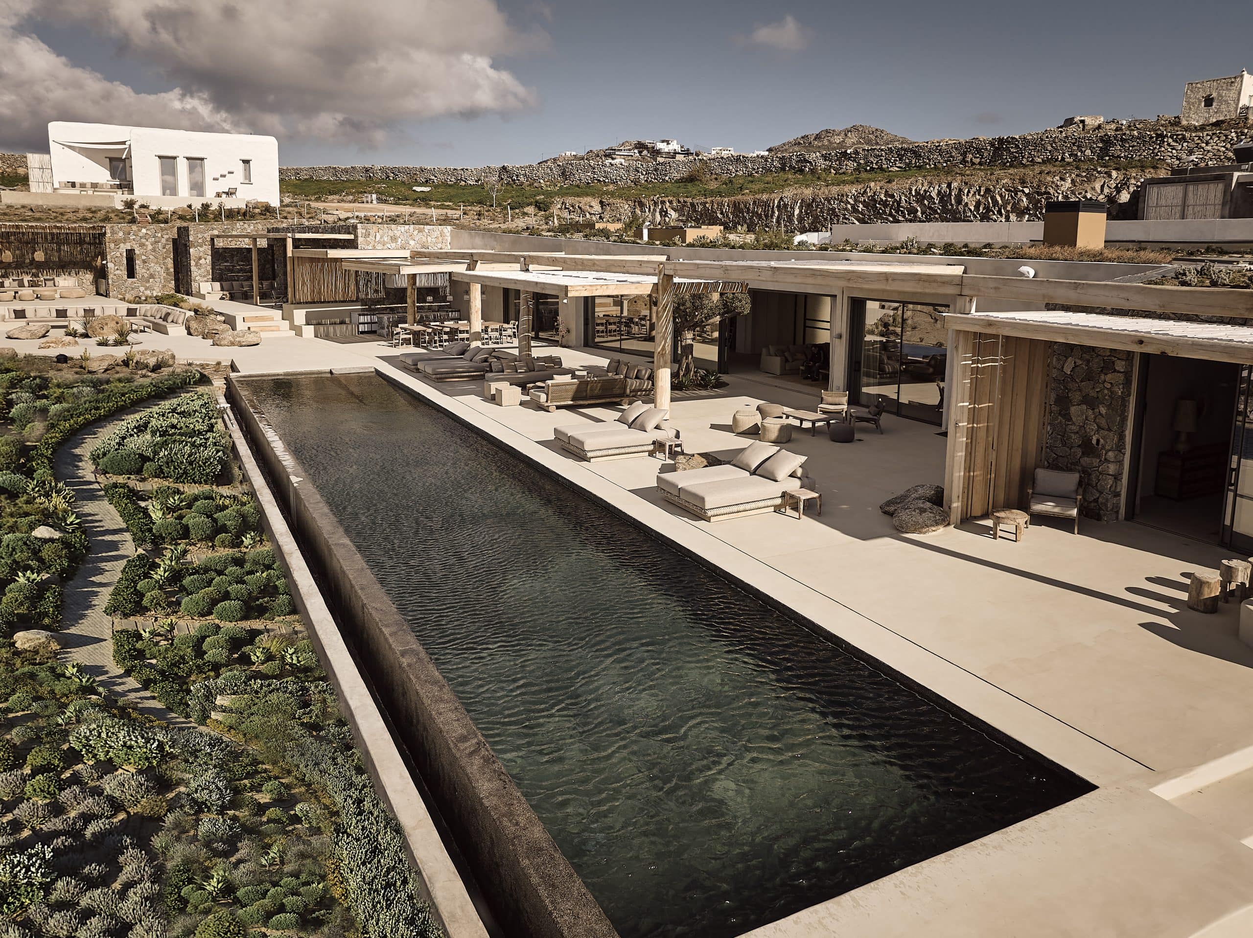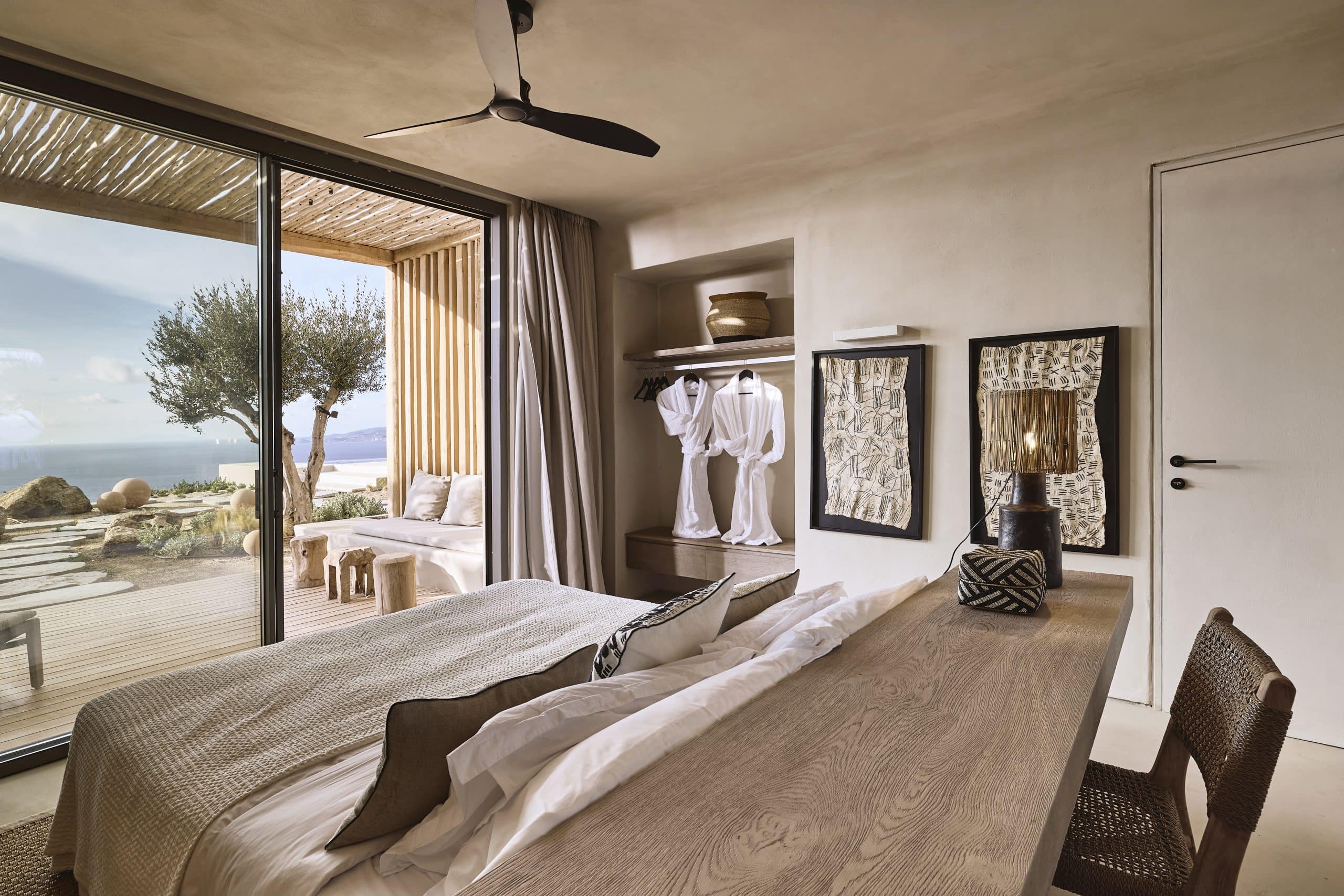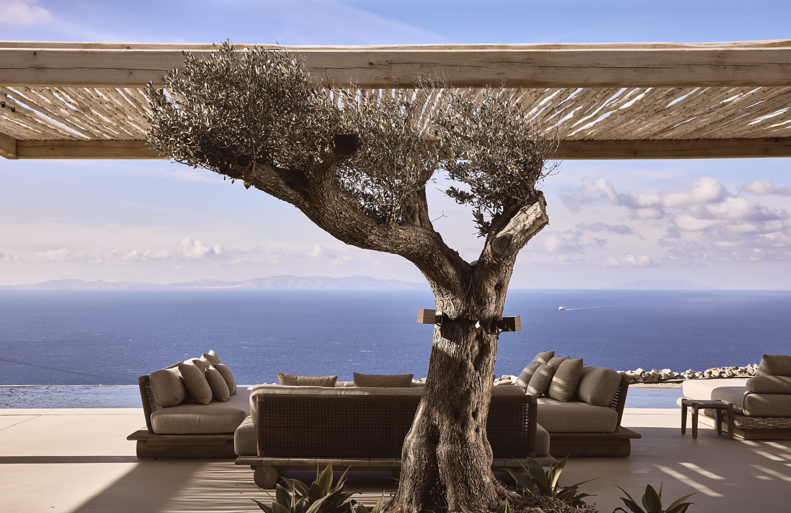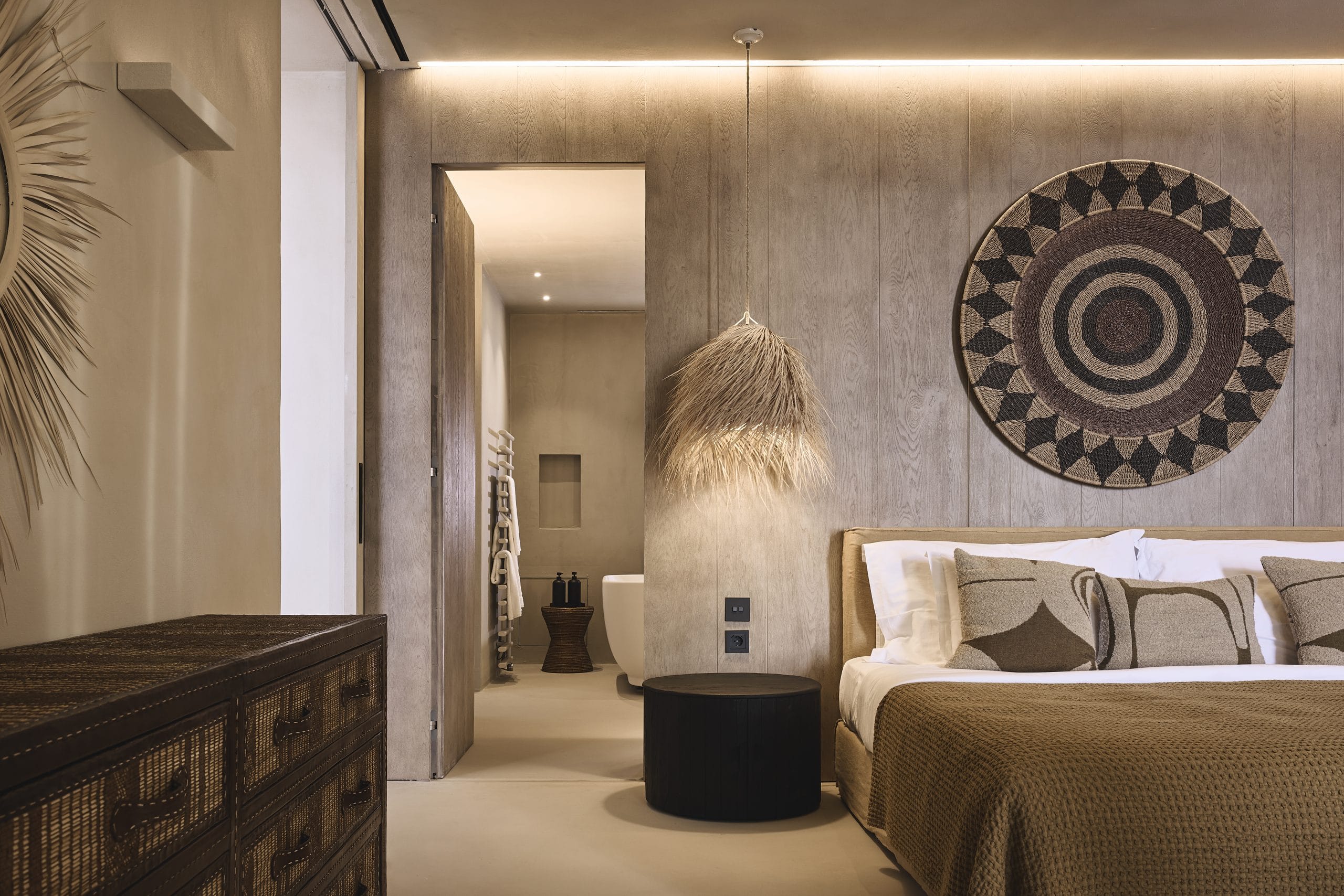 The villa includes seven beautifully appointed bedrooms, among them two master suites with private lounges and two independent guest apartments, each featuring its own private infinity mini pool, that is ideal for guests seeking added privacy. The outdoor areas are truly spectacular, centered around a 26-meter infinity pool (heatable upon request) overlooking the sea and horizon. Beside the pool, guests can enjoy an open bar and lounge area, complete with a convenient outdoor shower. A fully equipped BBQ area provides the perfect setting for outdoor dining and entertaining.