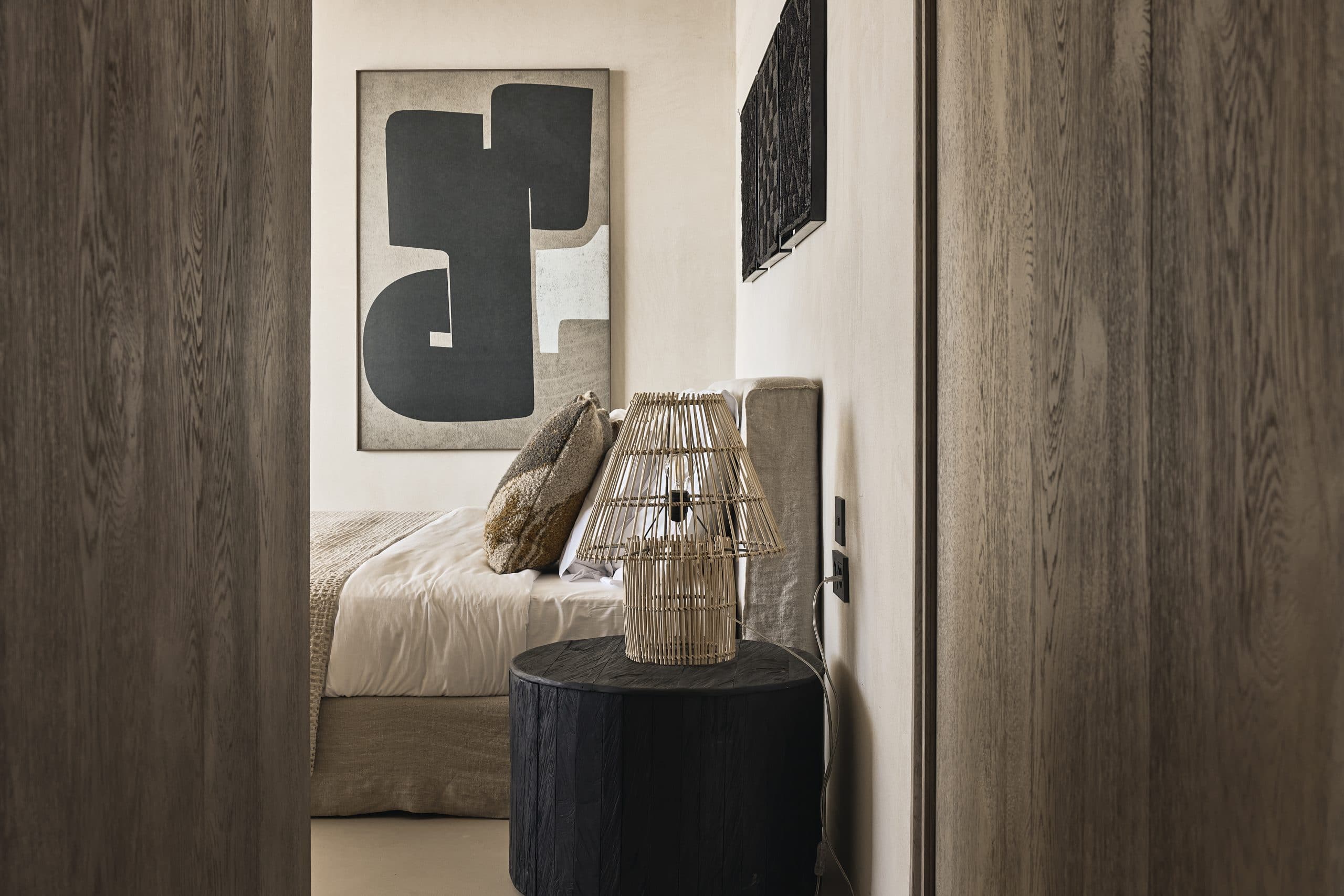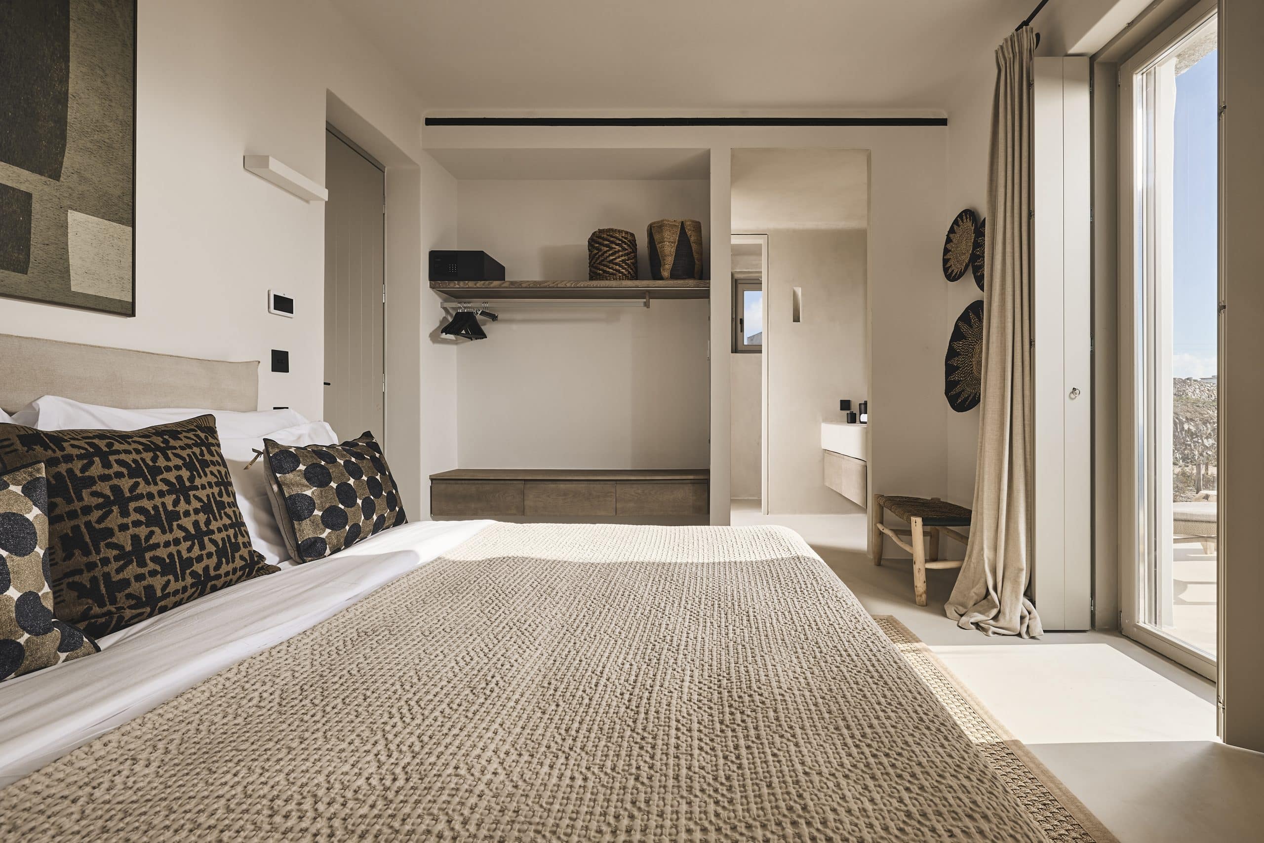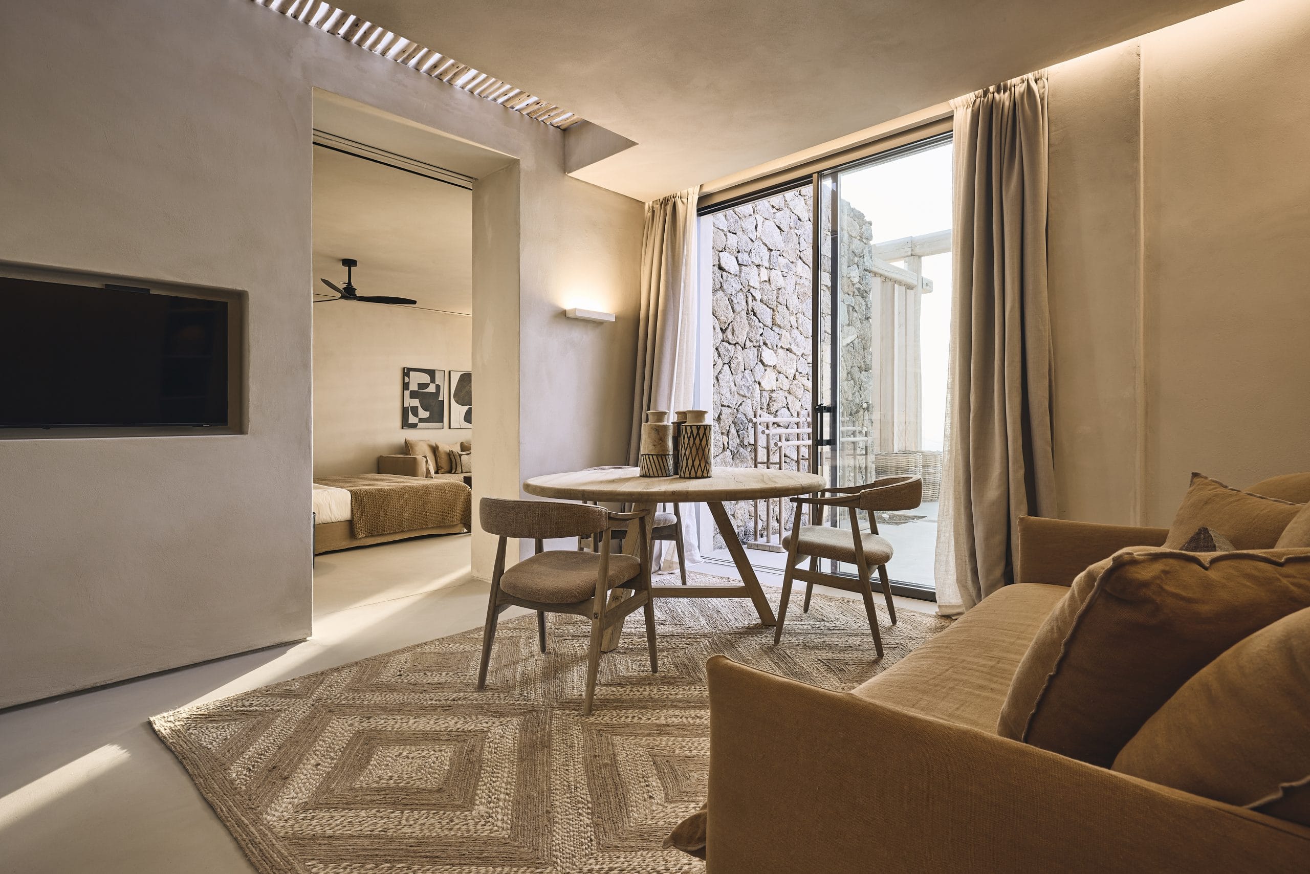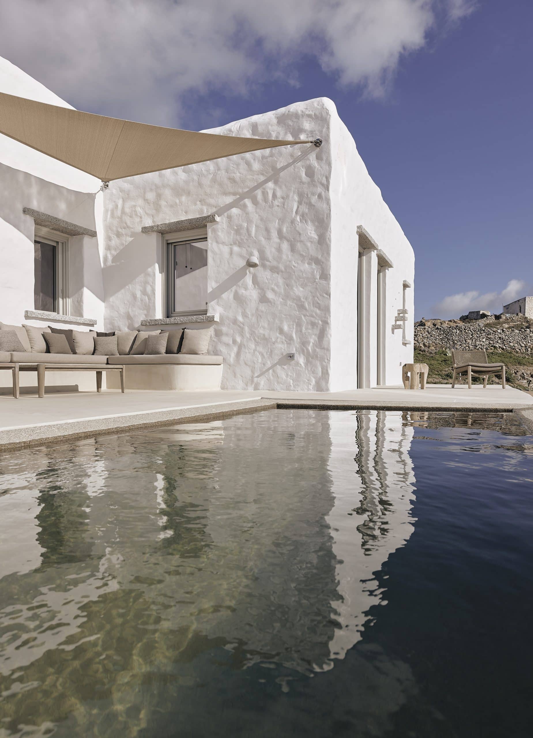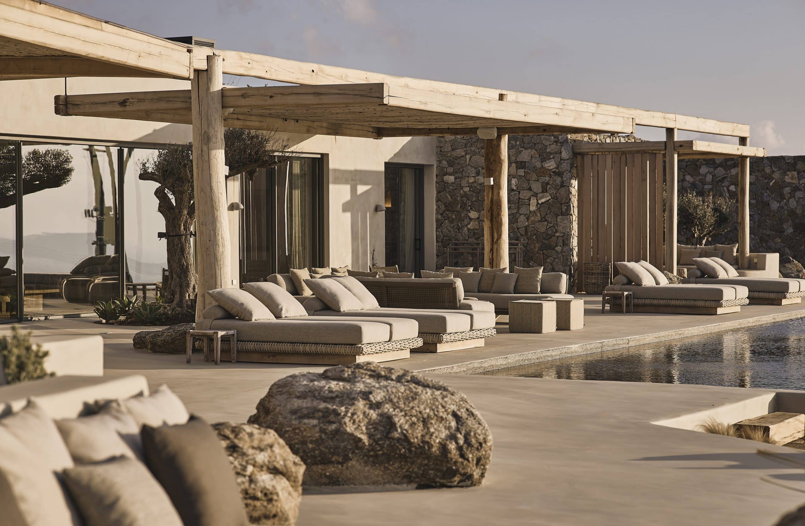 The villa includes seven beautifully appointed bedrooms, among them two master suites with private lounges and two independent guest apartments, each featuring its own private infinity mini pool, that is ideal for guests seeking added privacy. The outdoor areas are truly spectacular, centered around a 26-meter infinity pool (heatable upon request) overlooking the sea and horizon. Beside the pool, guests can enjoy an open bar and lounge area, complete with a convenient outdoor shower. A fully equipped BBQ area provides the perfect setting for outdoor dining and entertaining.