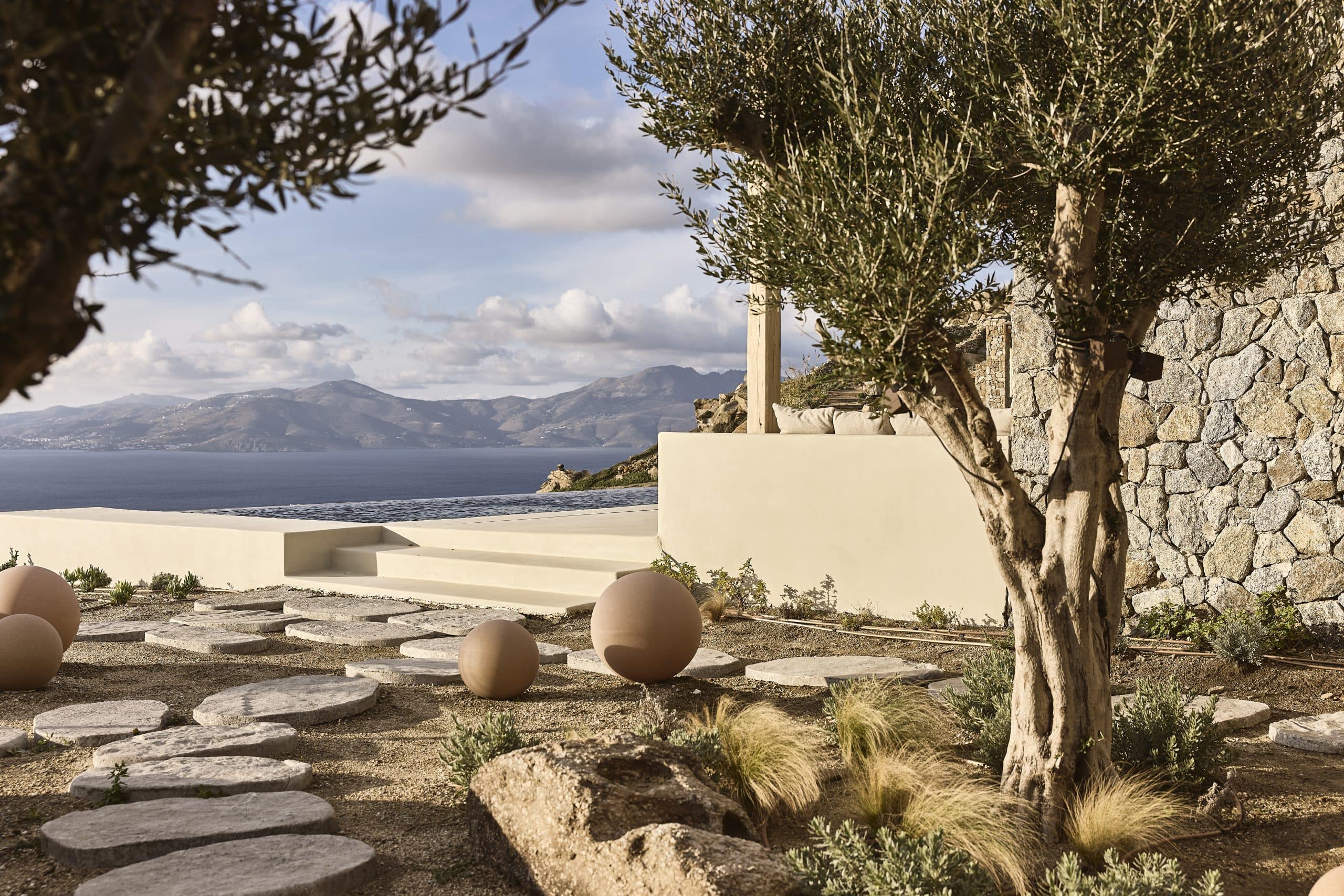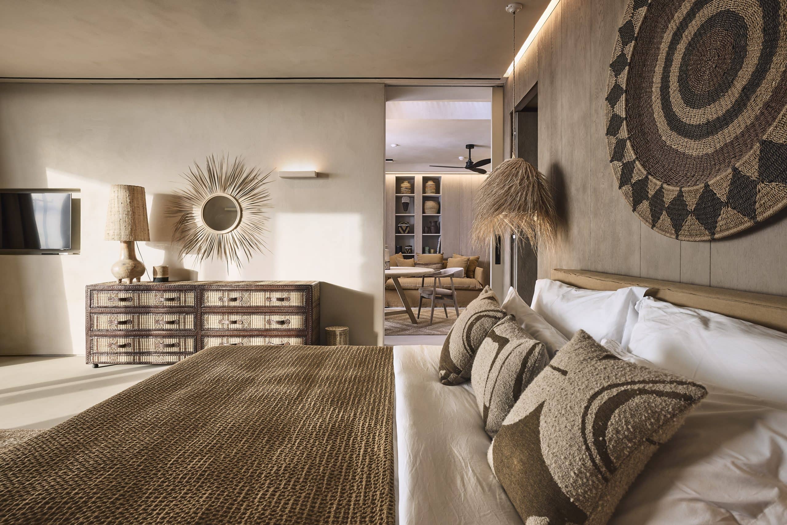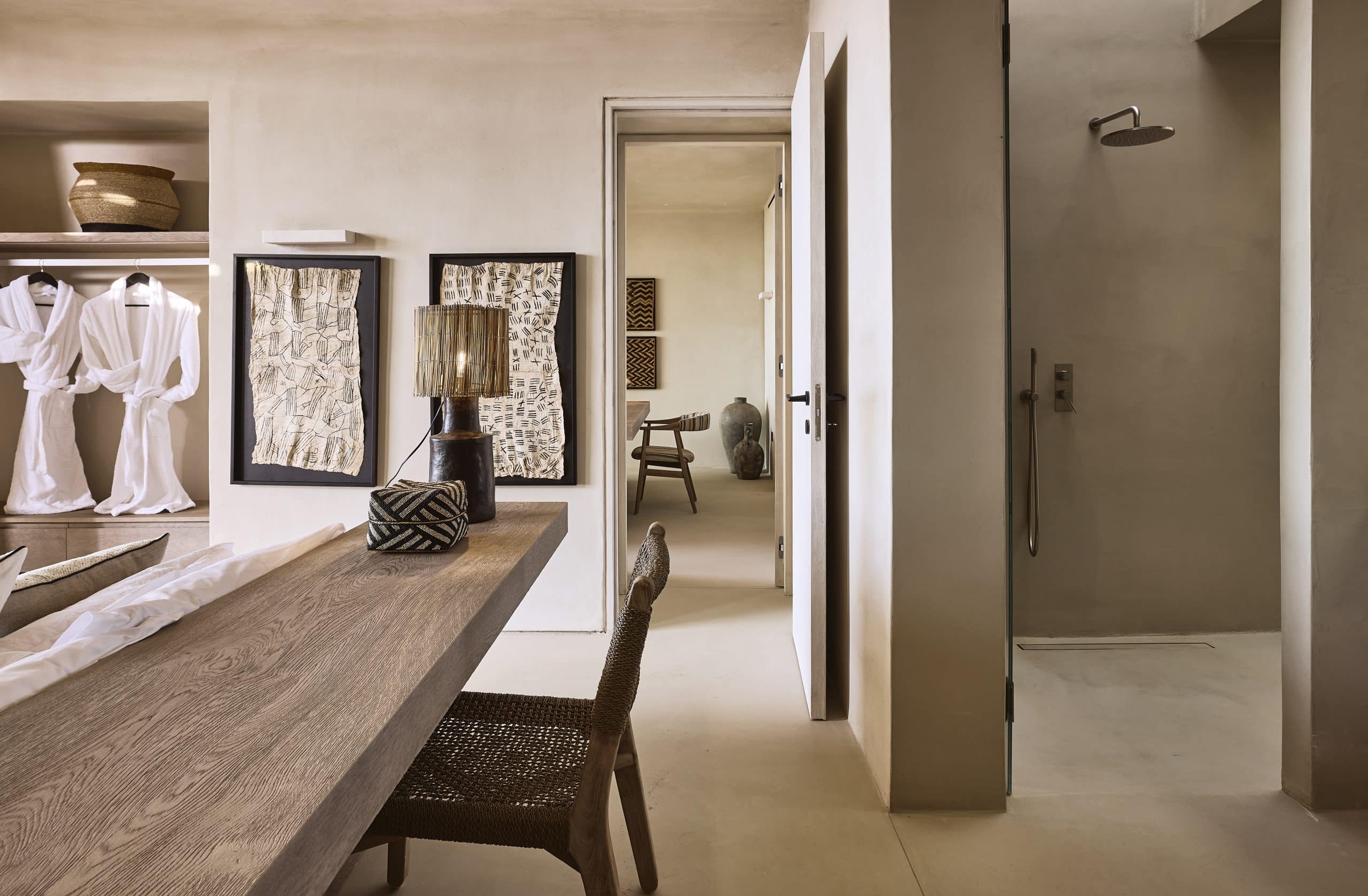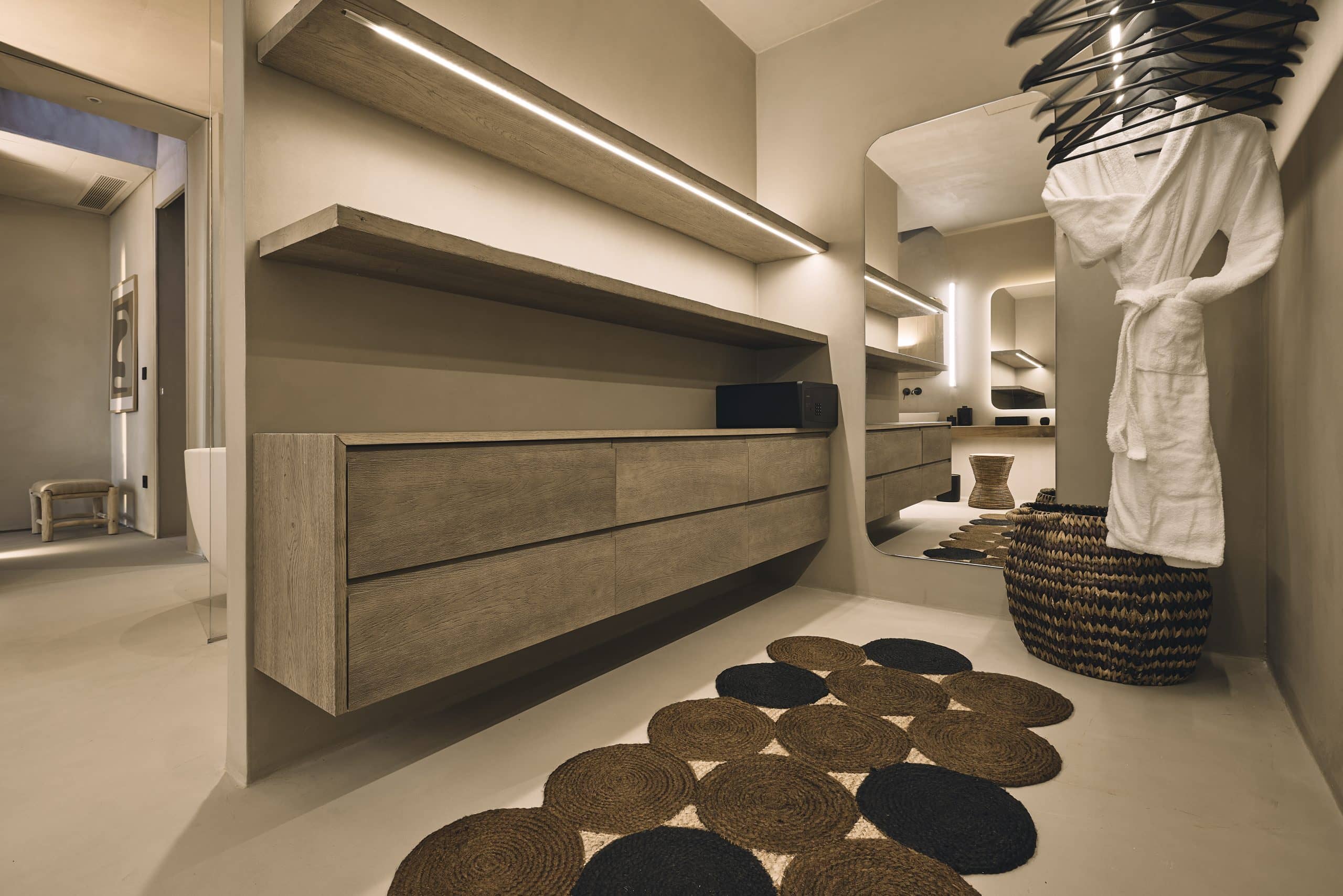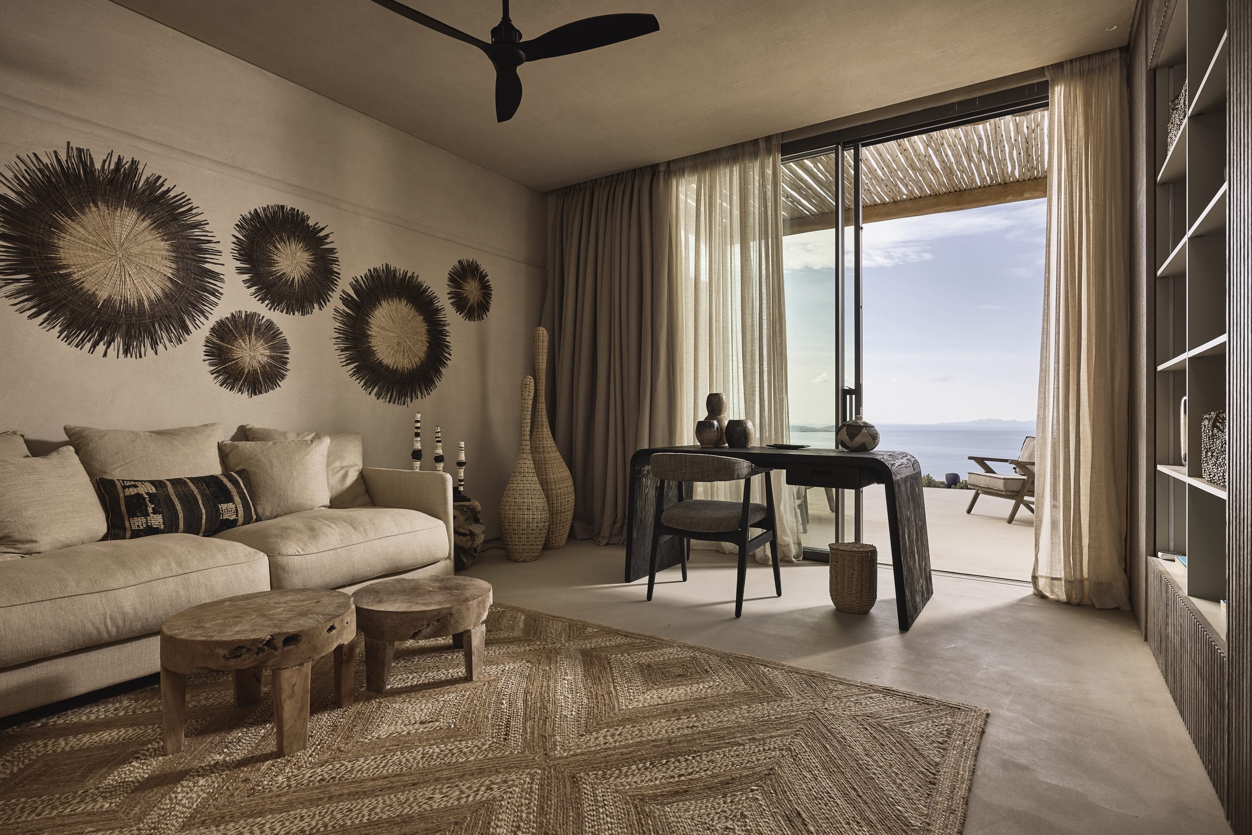 The villa includes seven beautifully appointed bedrooms, among them two master suites with private lounges and two independent guest apartments, each featuring its own private infinity mini pool, that is ideal for guests seeking added privacy. The outdoor areas are truly spectacular, centered around a 26-meter infinity pool (heatable upon request) overlooking the sea and horizon. Beside the pool, guests can enjoy an open bar and lounge area, complete with a convenient outdoor shower. A fully equipped BBQ area provides the perfect setting for outdoor dining and entertaining.