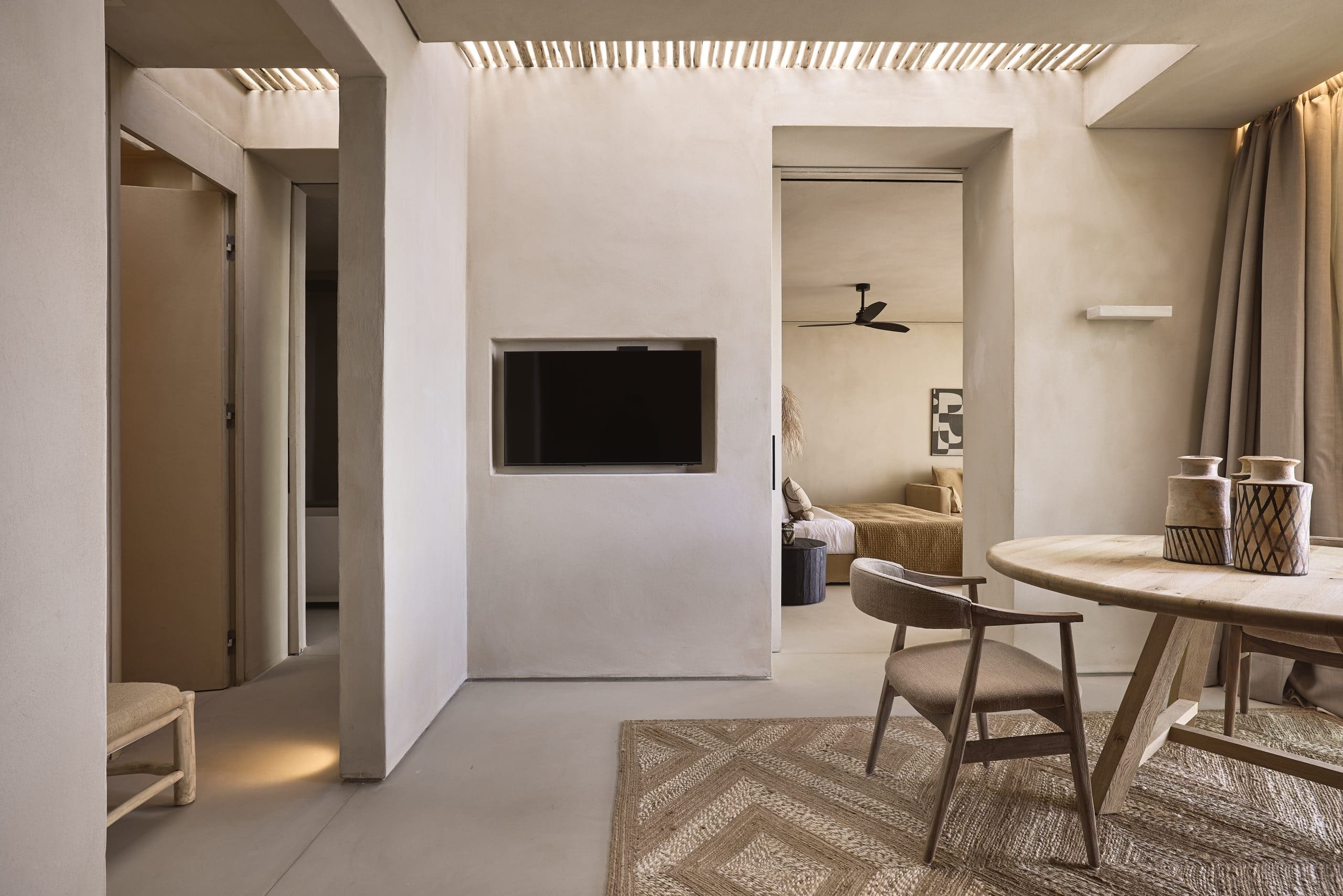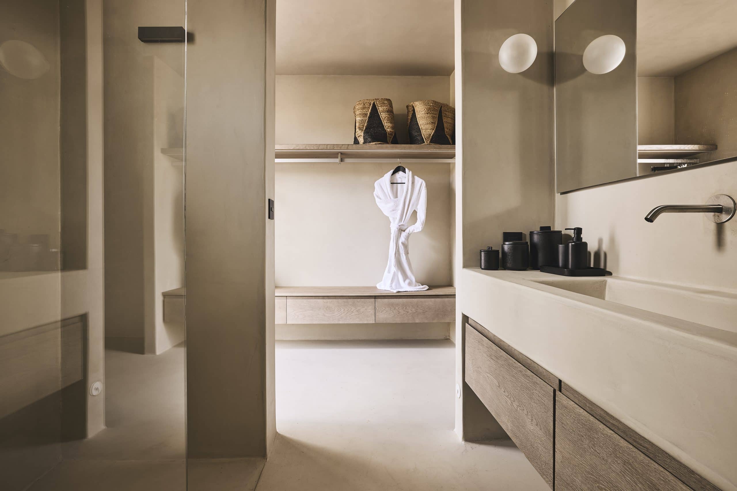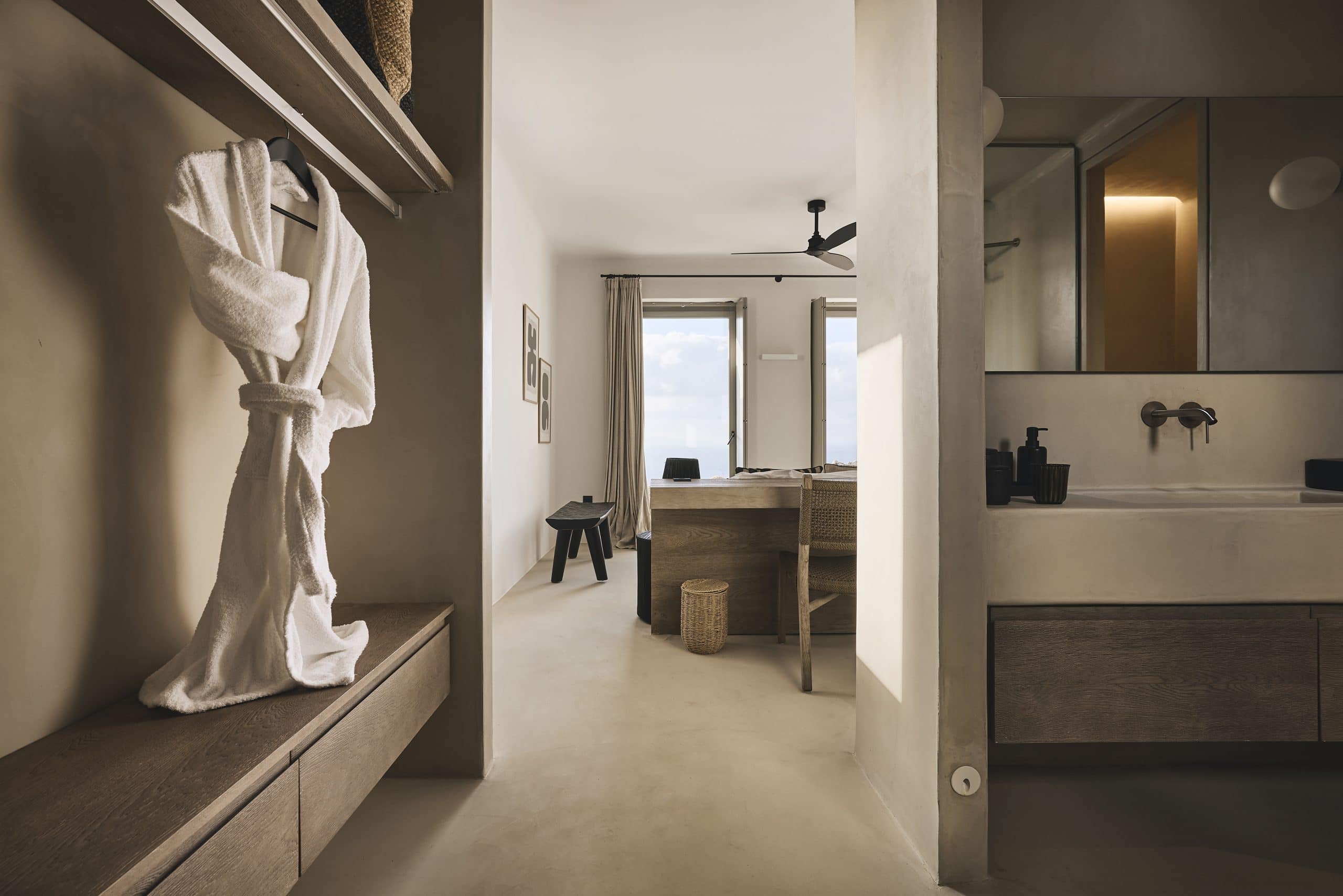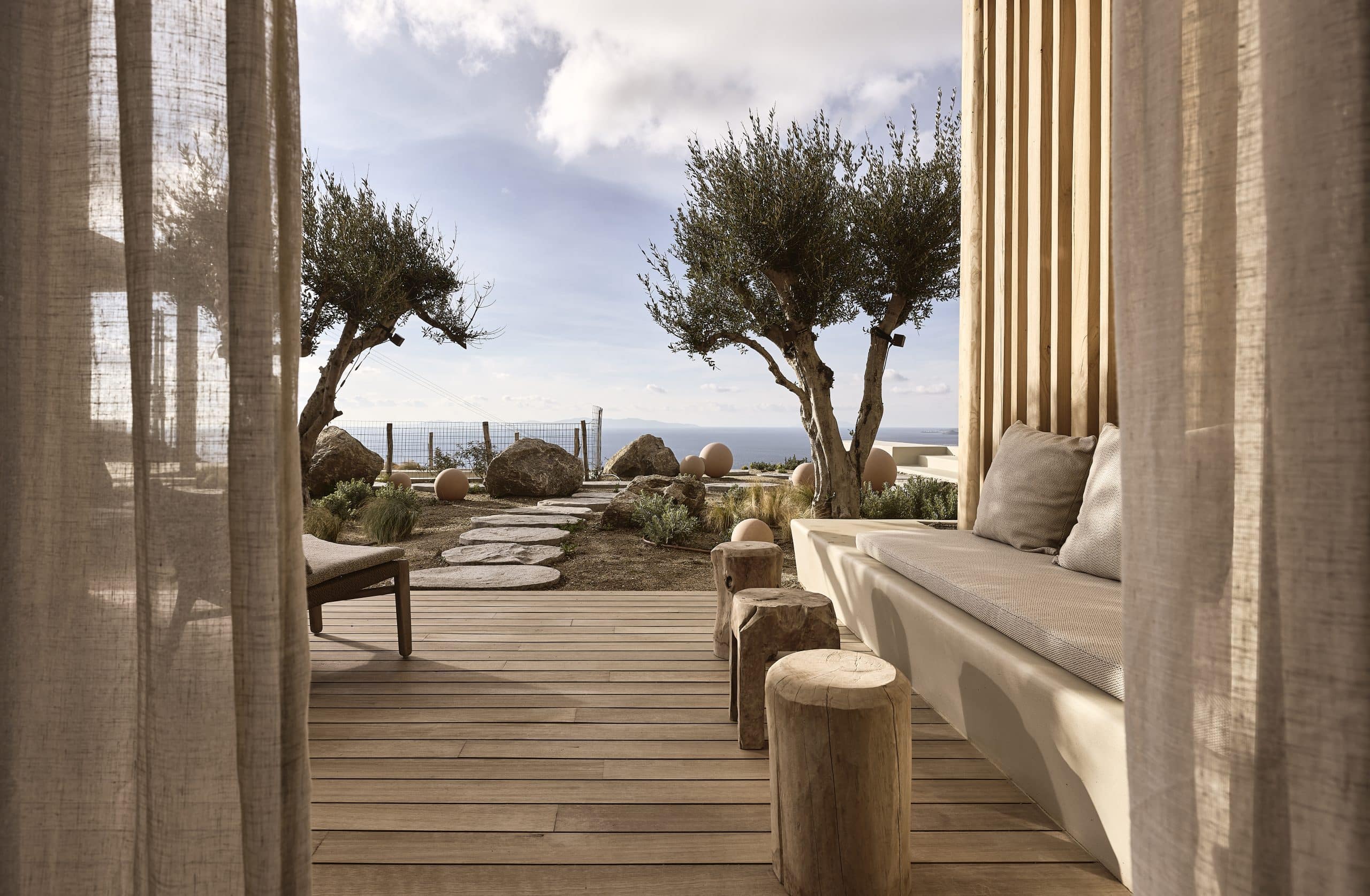 The villa includes seven beautifully appointed bedrooms, among them two master suites with private lounges and two independent guest apartments, each featuring its own private infinity mini pool, that is ideal for guests seeking added privacy. The outdoor areas are truly spectacular, centered around a 26-meter infinity pool (heatable upon request) overlooking the sea and horizon. Beside the pool, guests can enjoy an open bar and lounge area, complete with a convenient outdoor shower. A fully equipped BBQ area provides the perfect setting for outdoor dining and entertaining.
