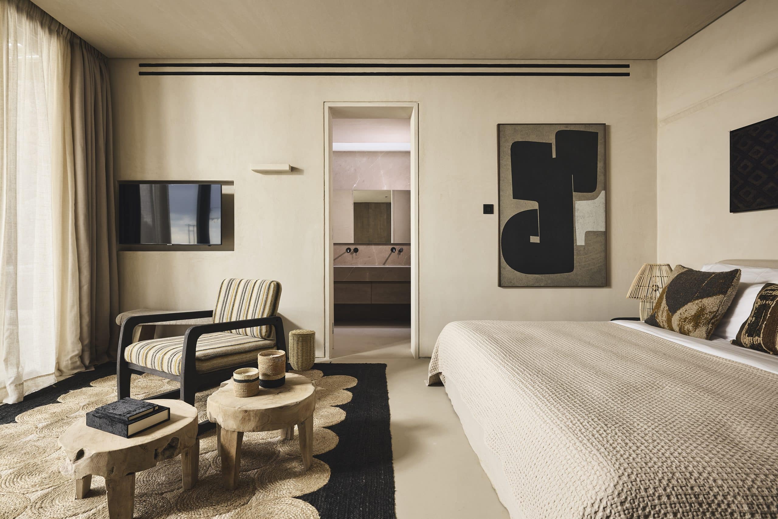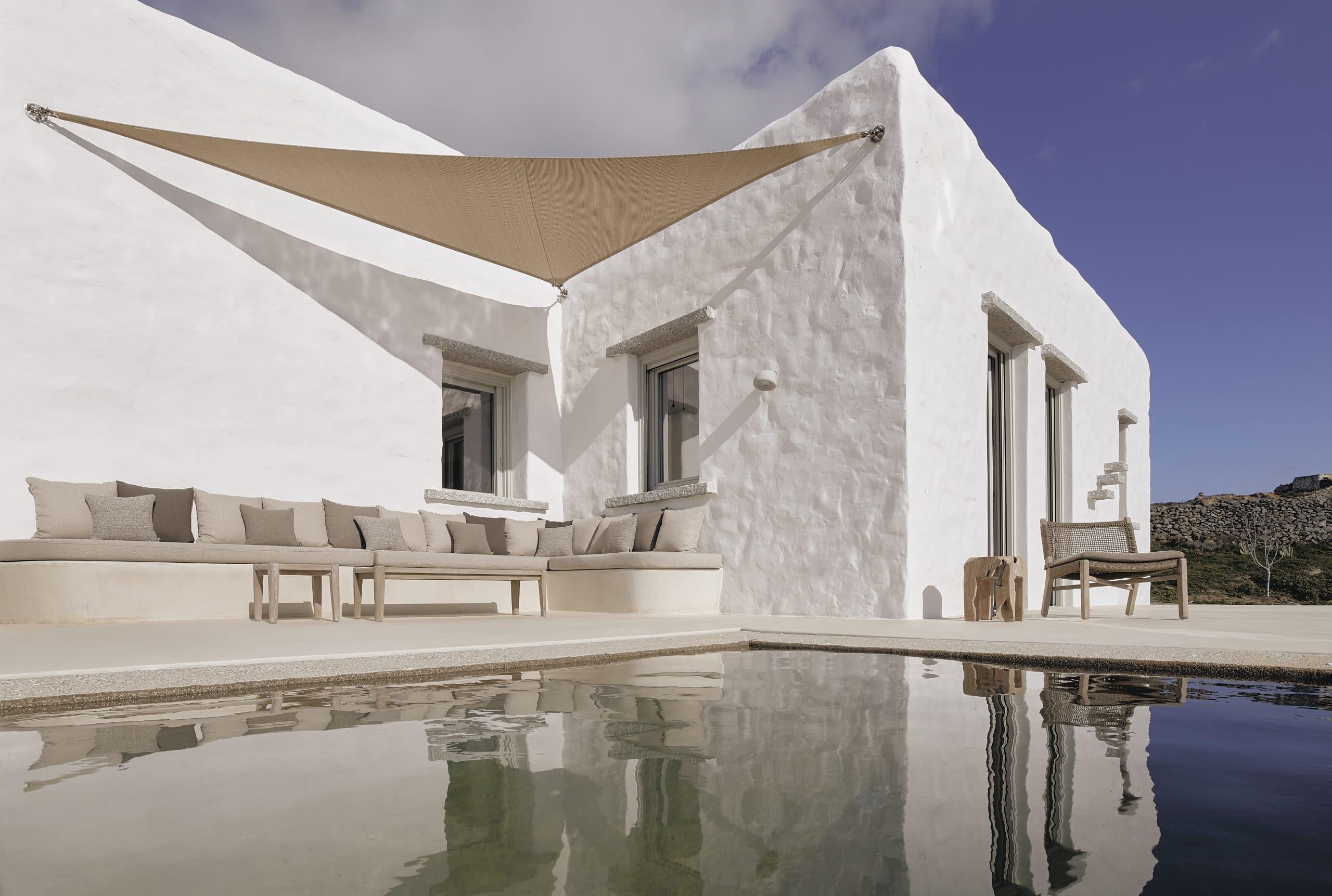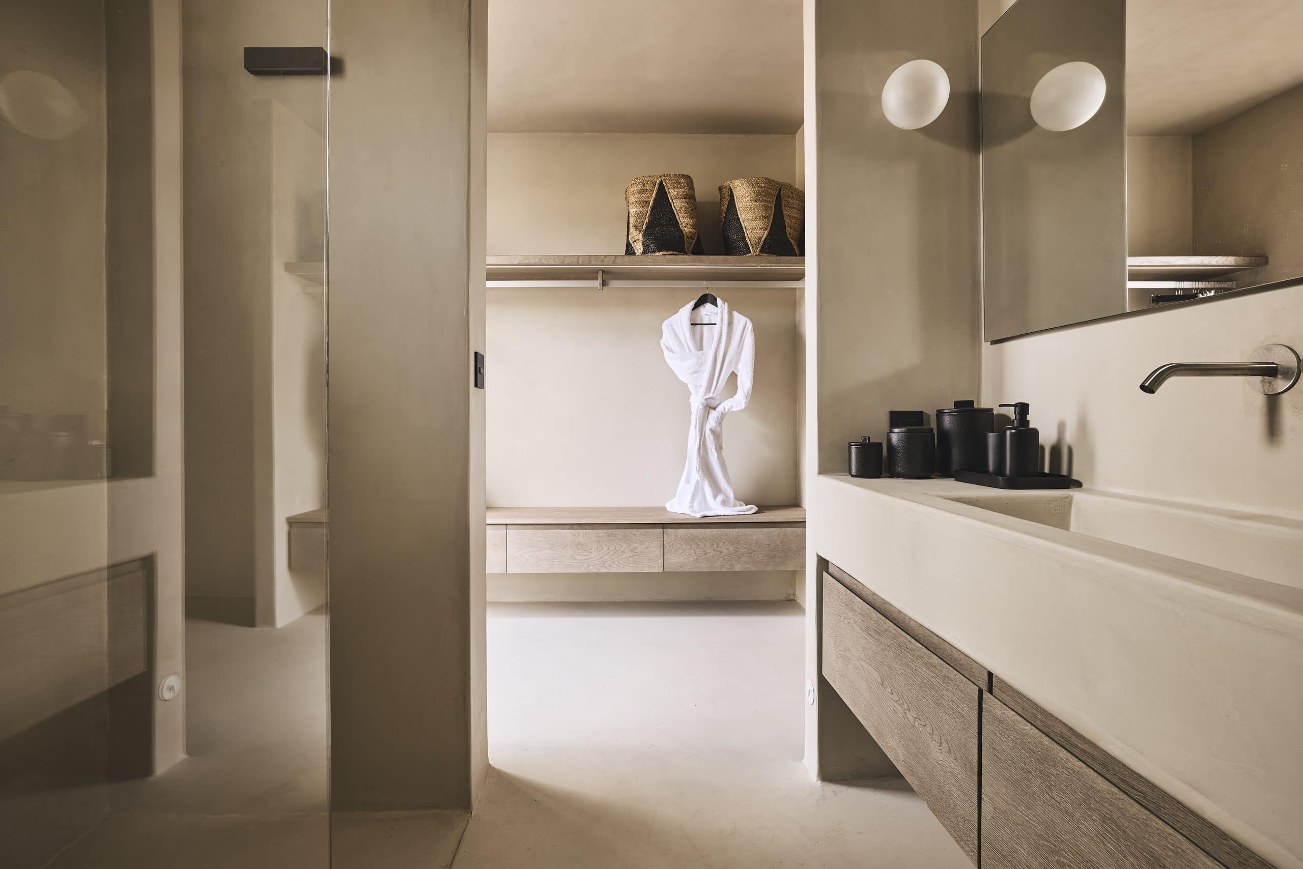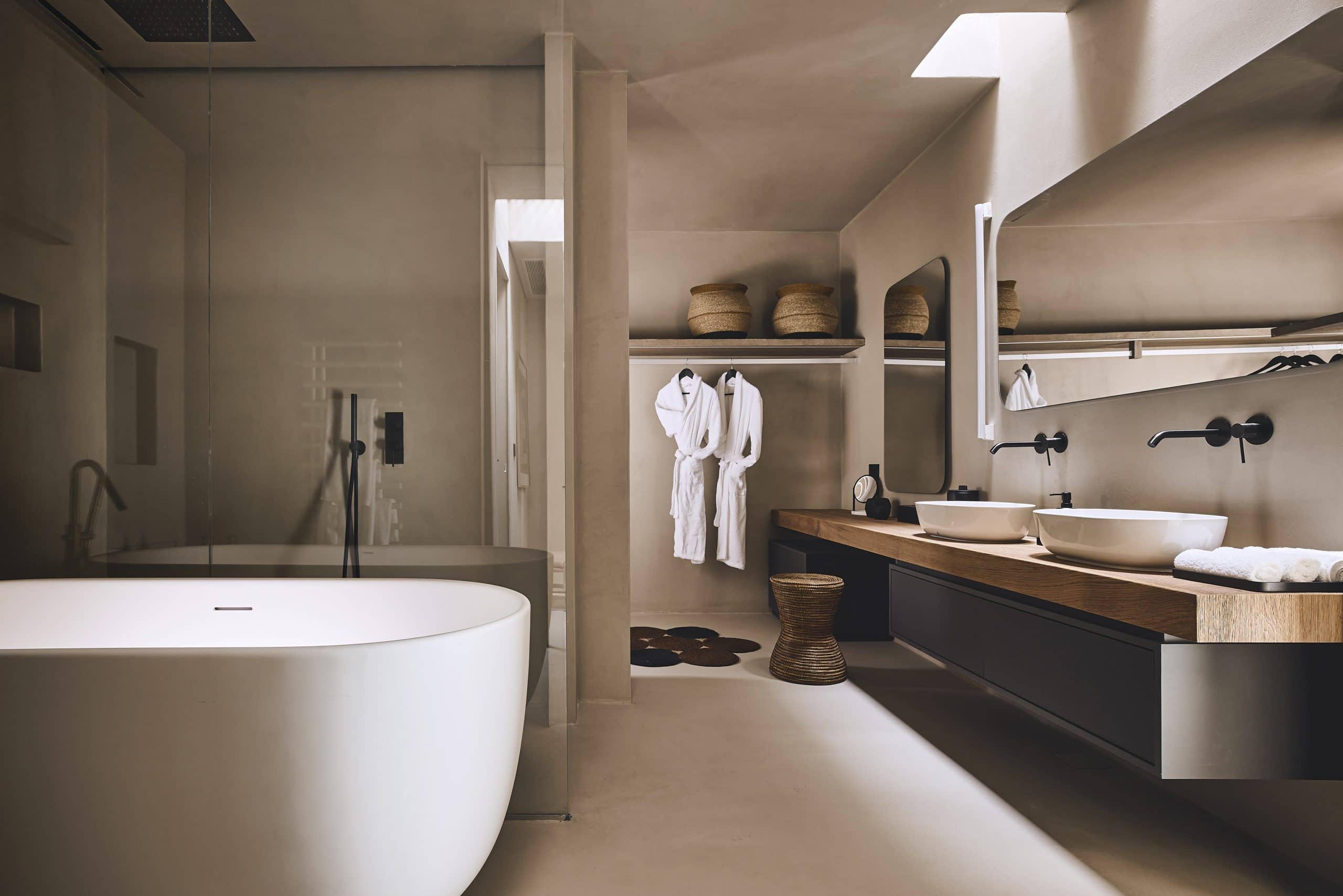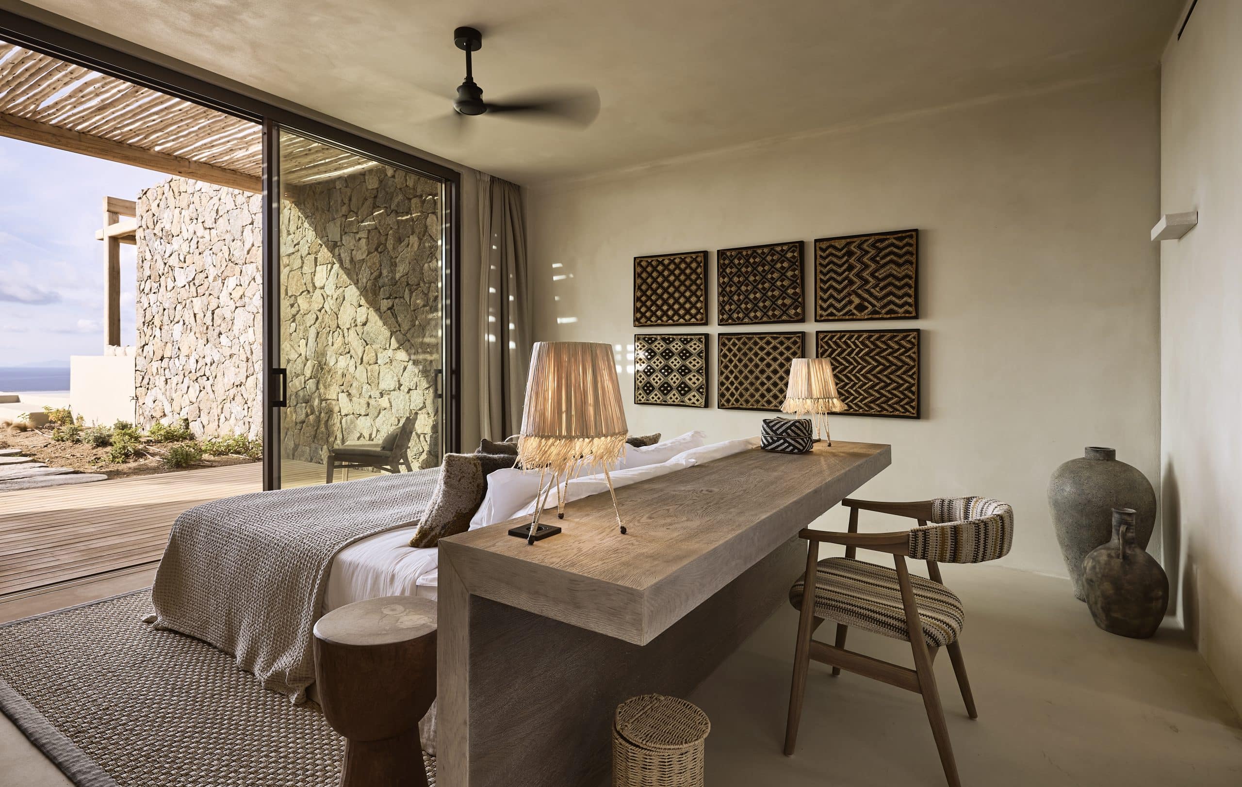 The villa includes seven beautifully appointed bedrooms, among them two master suites with private lounges and two independent guest apartments, each featuring its own private infinity mini pool, that is ideal for guests seeking added privacy. The outdoor areas are truly spectacular, centered around a 26-meter infinity pool (heatable upon request) overlooking the sea and horizon. Beside the pool, guests can enjoy an open bar and lounge area, complete with a convenient outdoor shower. A fully equipped BBQ area provides the perfect setting for outdoor dining and entertaining.