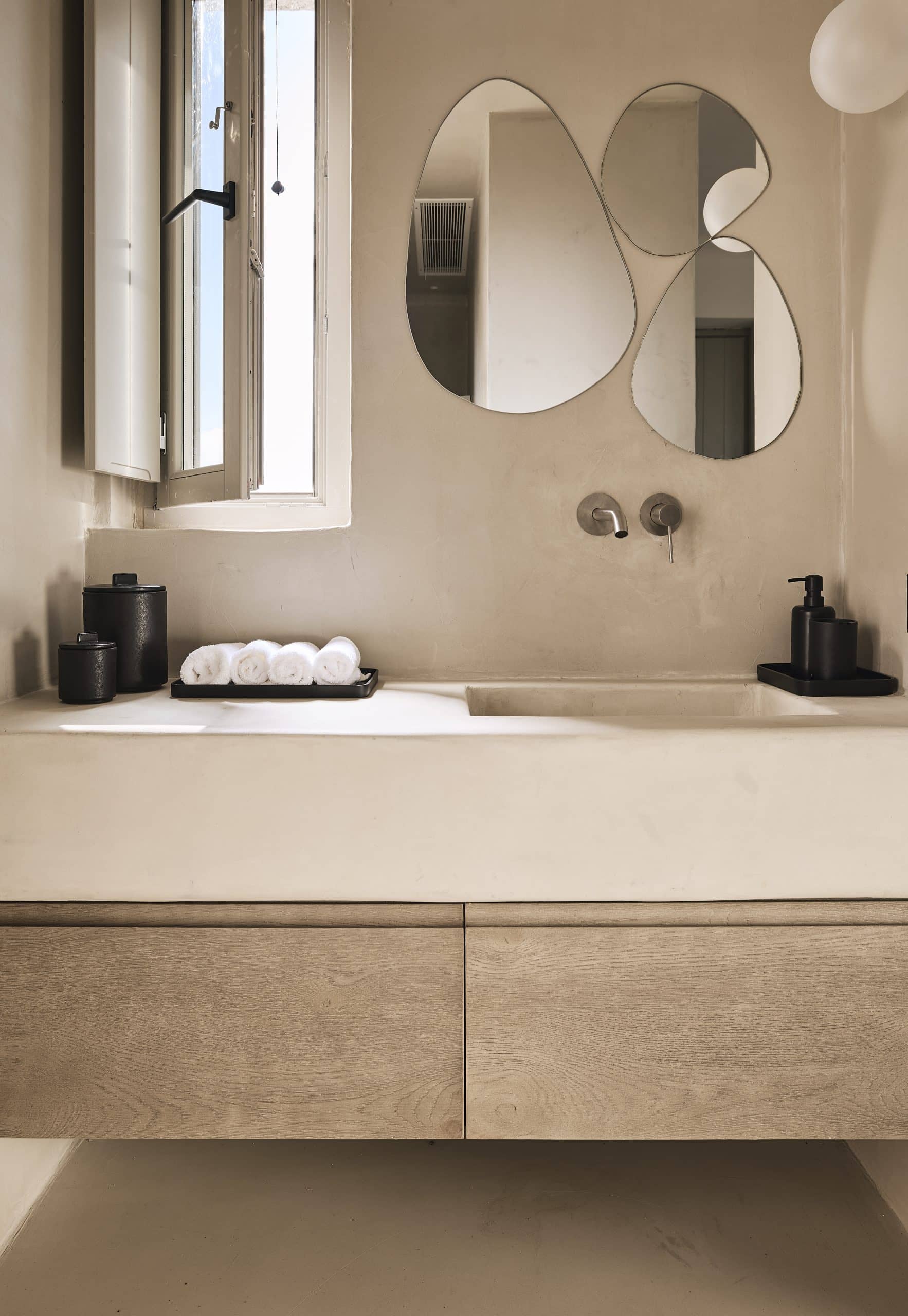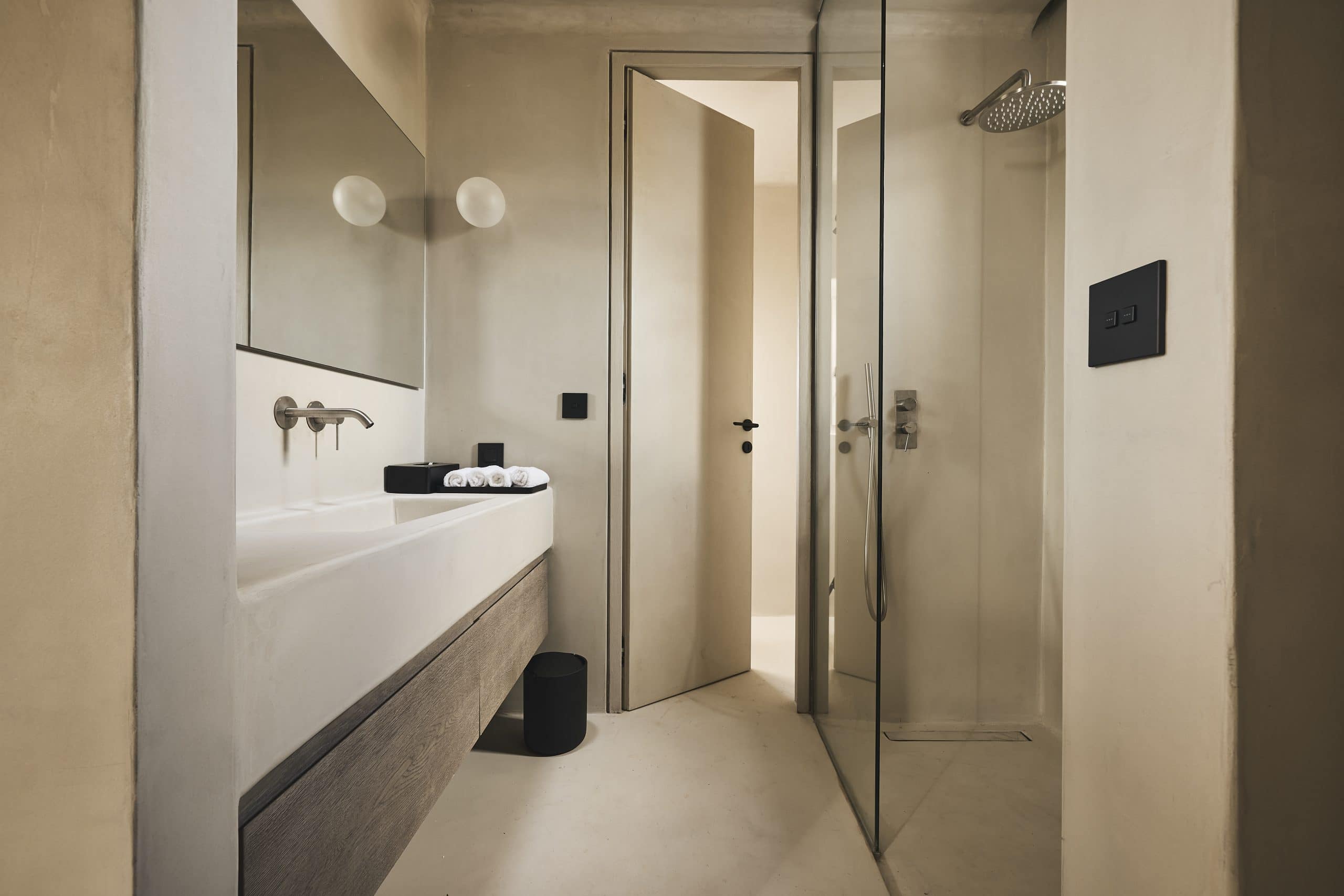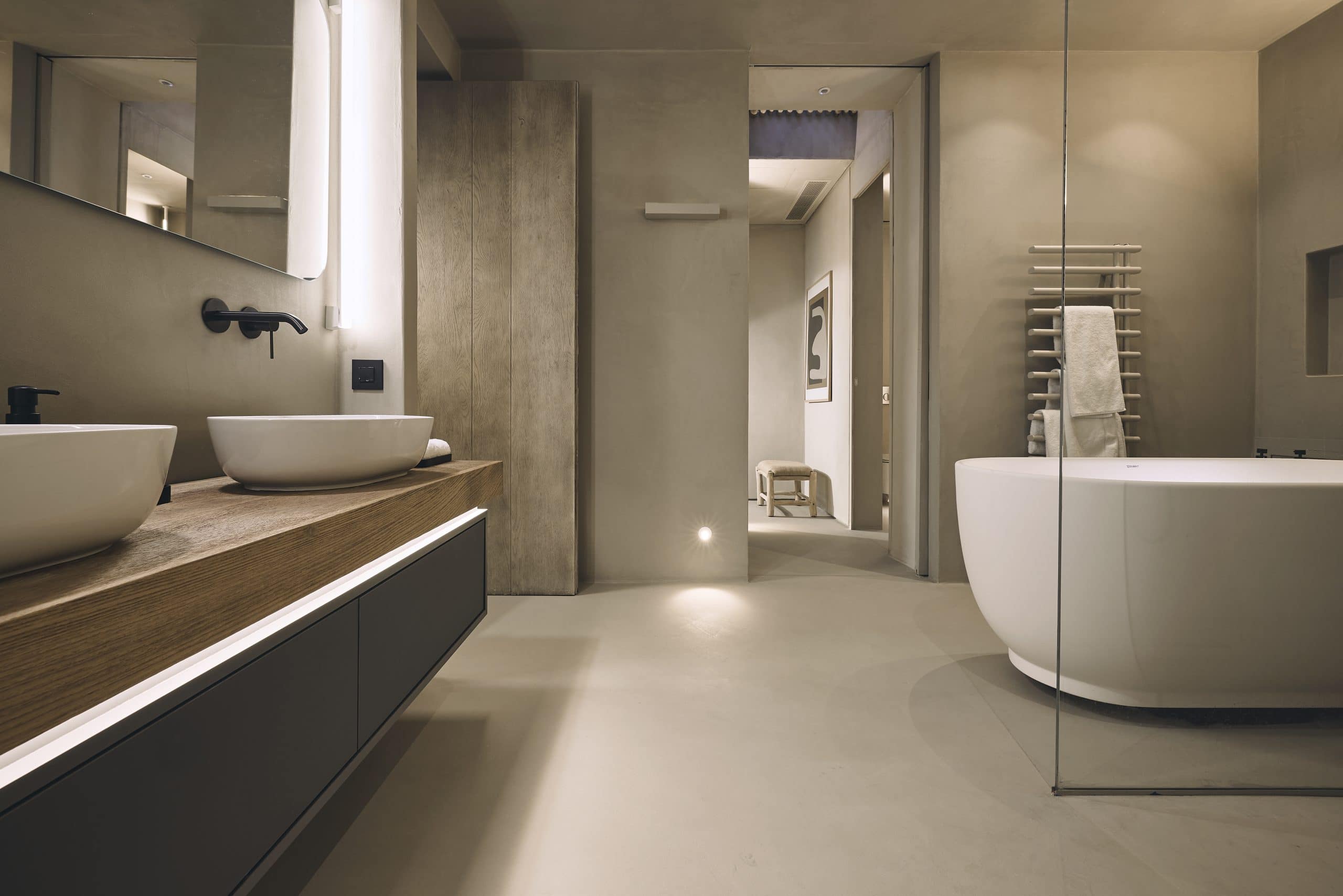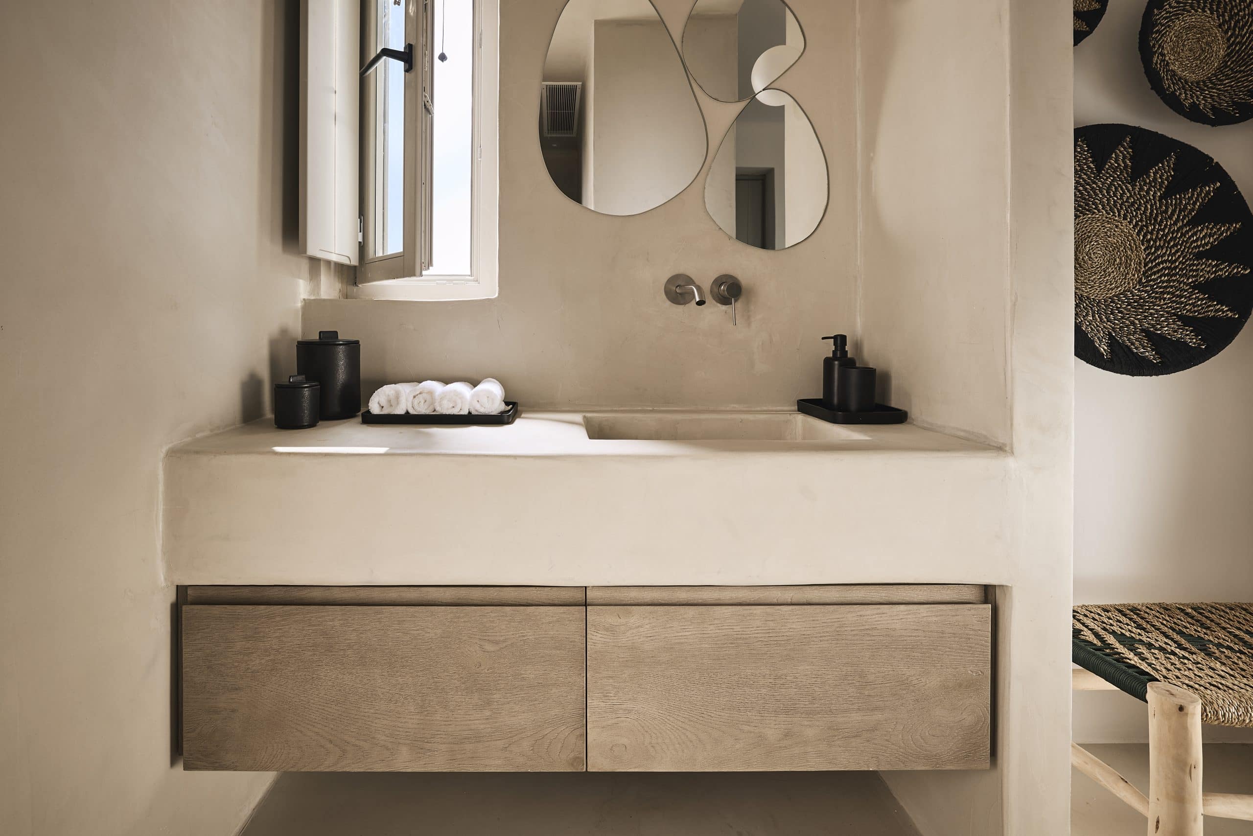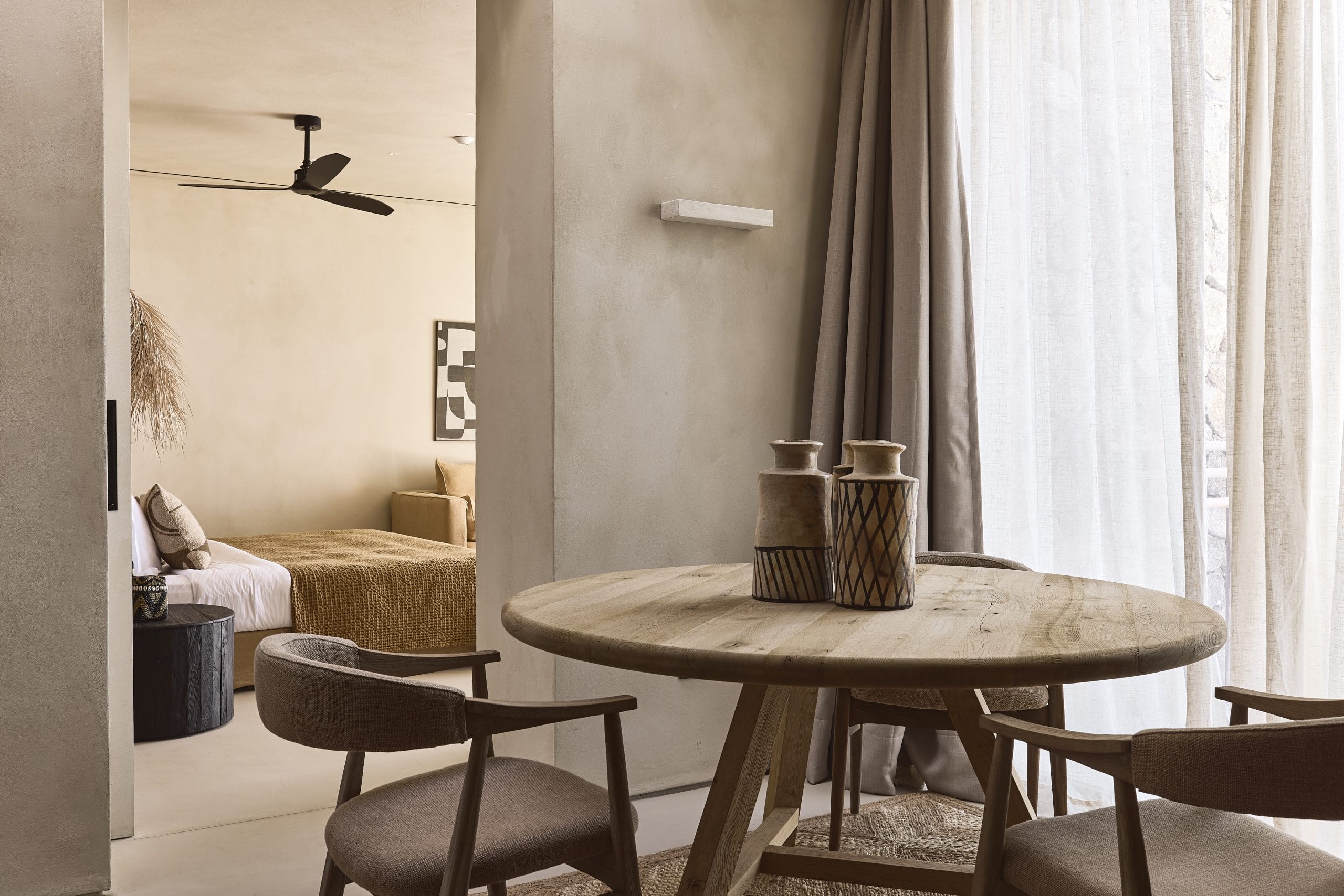 The villa includes seven beautifully appointed bedrooms, among them two master suites with private lounges and two independent guest apartments, each featuring its own private infinity mini pool, that is ideal for guests seeking added privacy. The outdoor areas are truly spectacular, centered around a 26-meter infinity pool (heatable upon request) overlooking the sea and horizon. Beside the pool, guests can enjoy an open bar and lounge area, complete with a convenient outdoor shower. A fully equipped BBQ area provides the perfect setting for outdoor dining and entertaining.