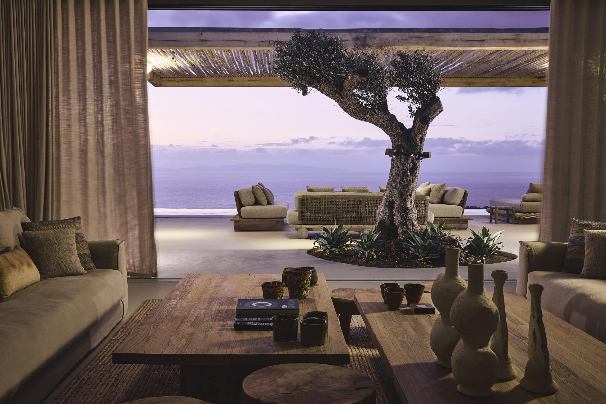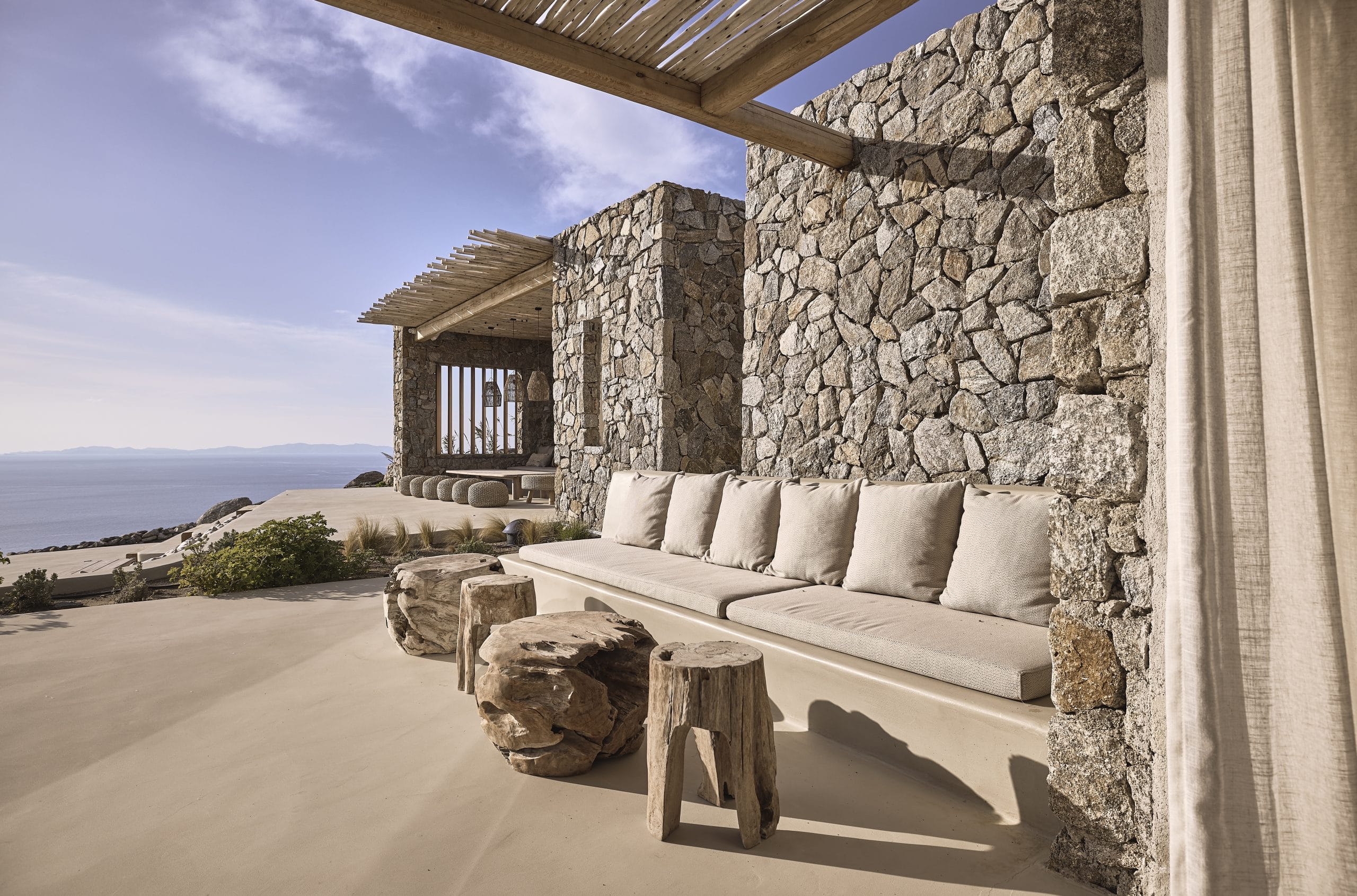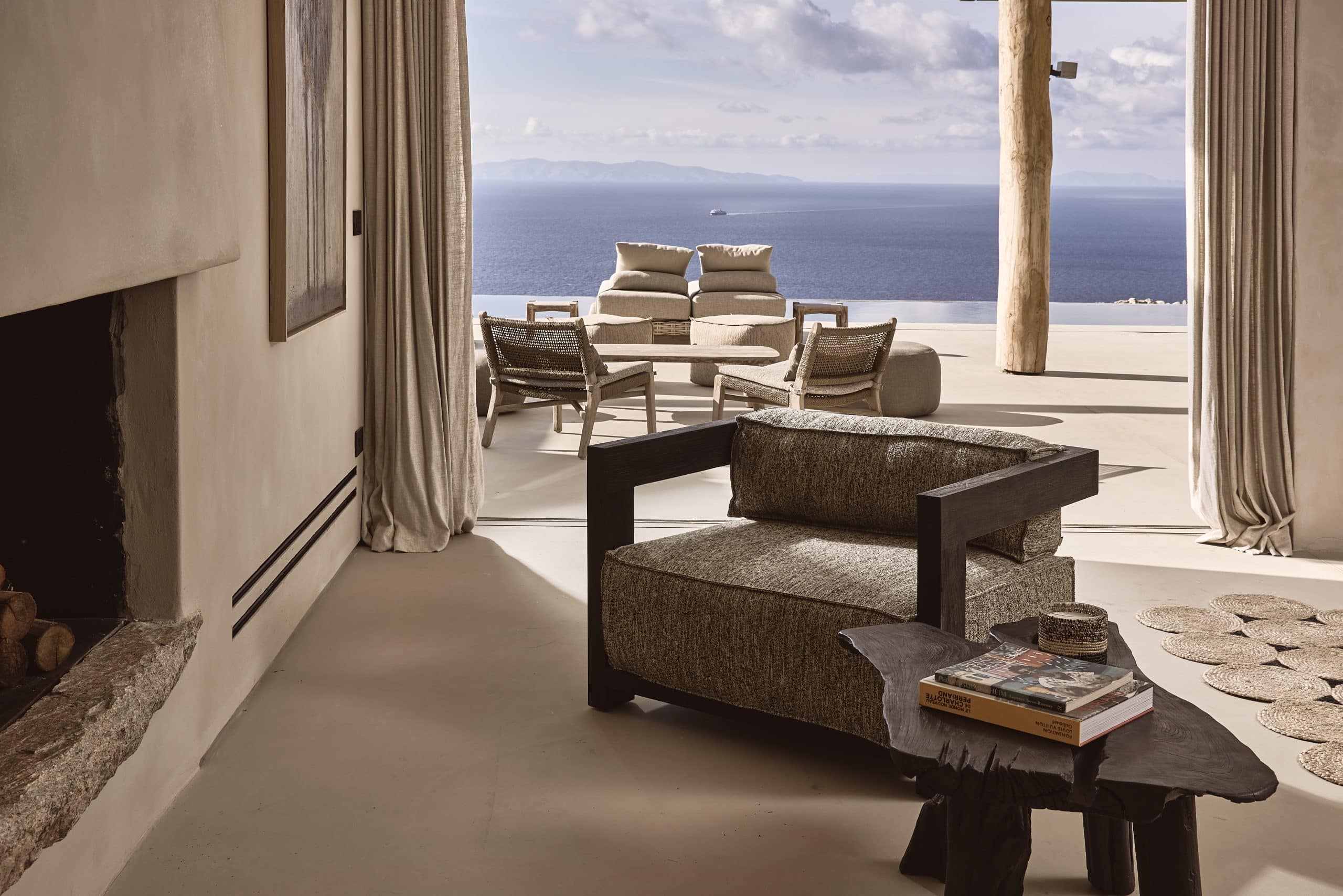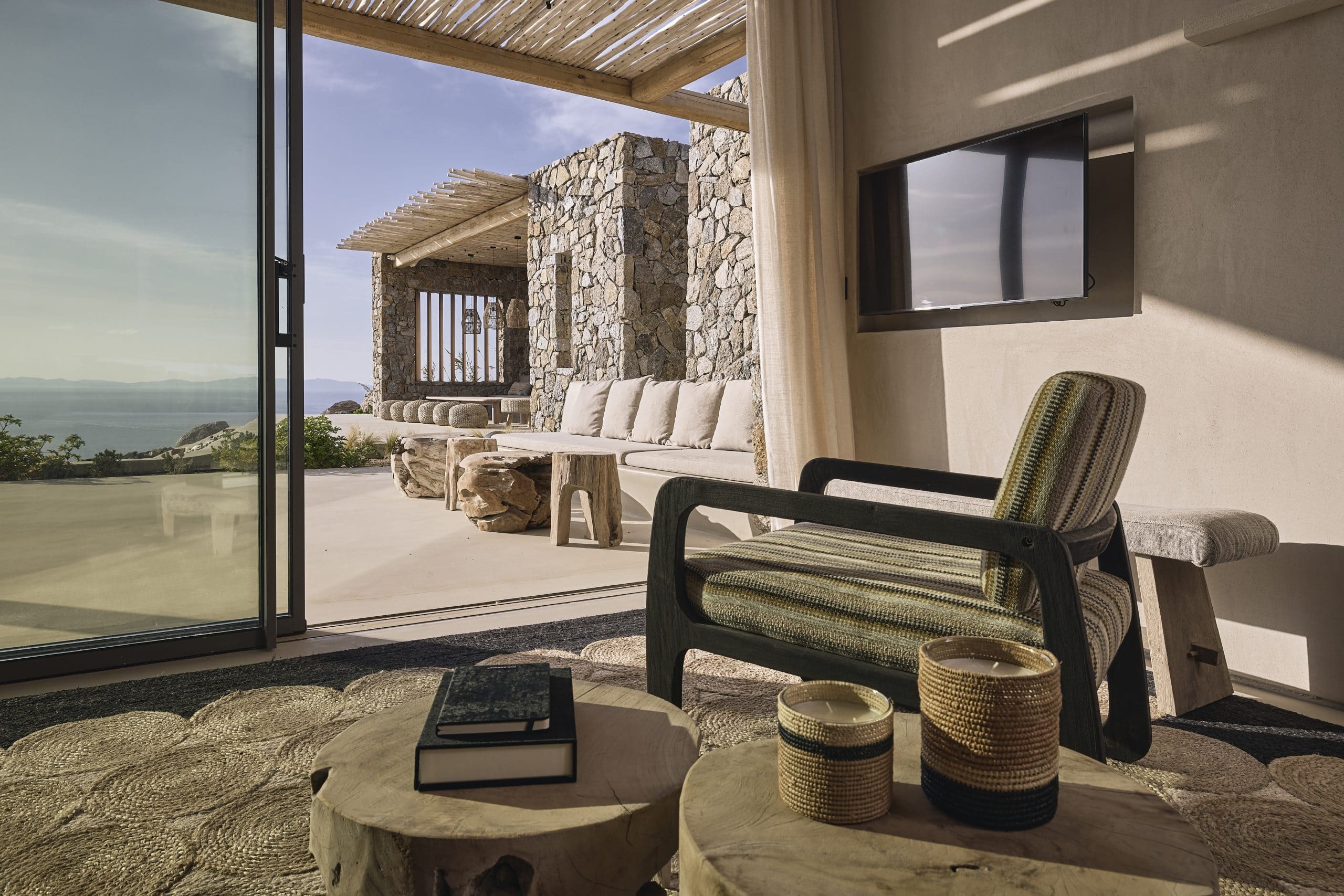 Inside, the villa offers multiple entertainment options, including a dedicated playroom with a Home Cinema system for enjoying movies or gaming in total comfort. Fitness enthusiasts can take advantage of both indoor and outdoor gyms with sea and sunset views, while a tranquil massage room offers the ultimate in relaxation. Raising the standard for luxury accommodations, the villa delivers uncompromising quality for those seeking the pinnacle of Mykonos living. The property includes discreet live-in housekeeping staff.