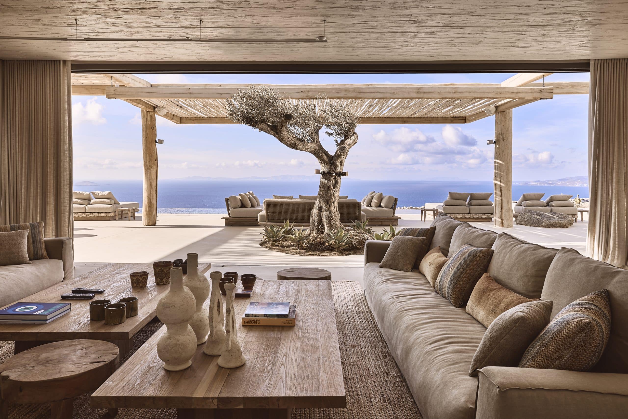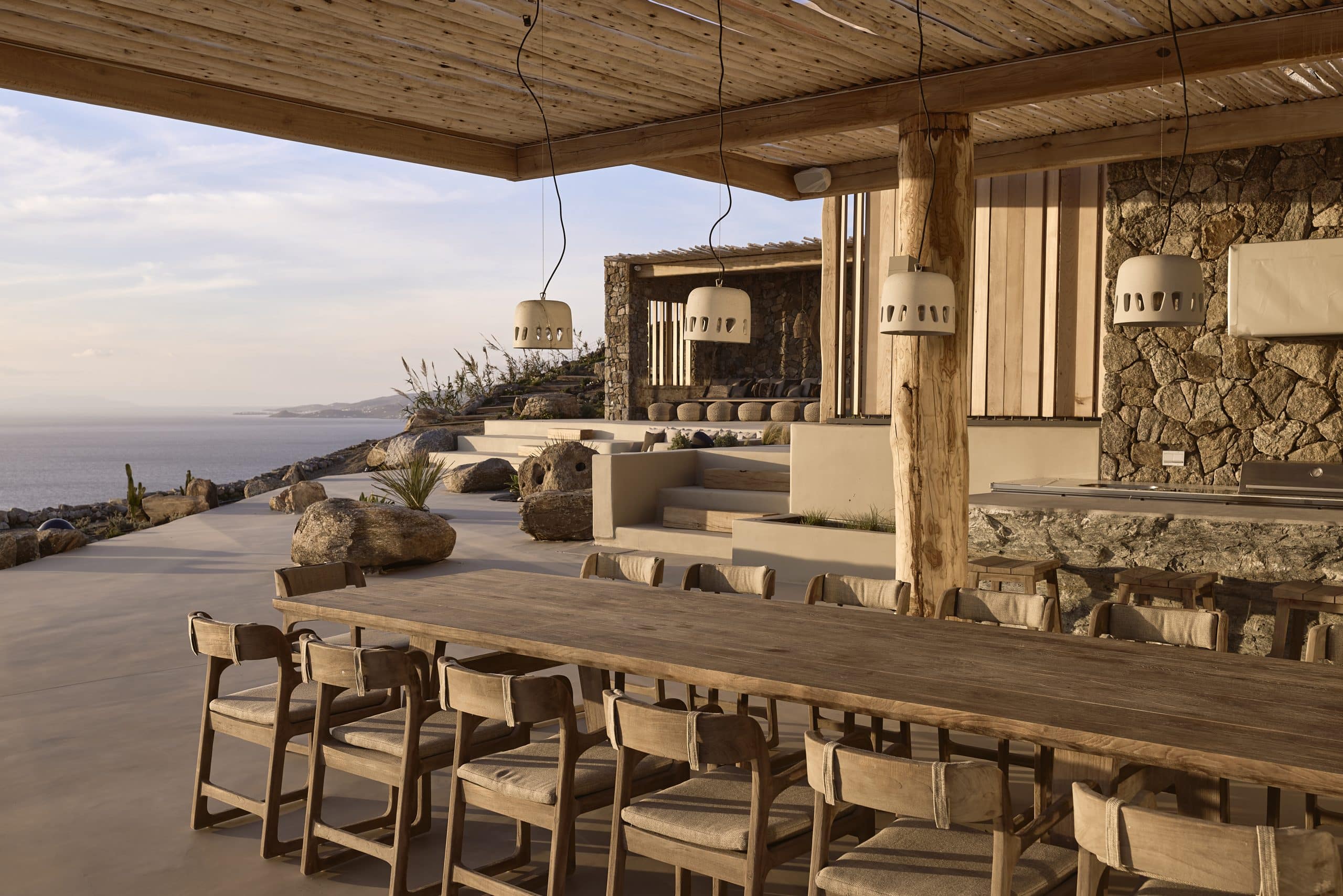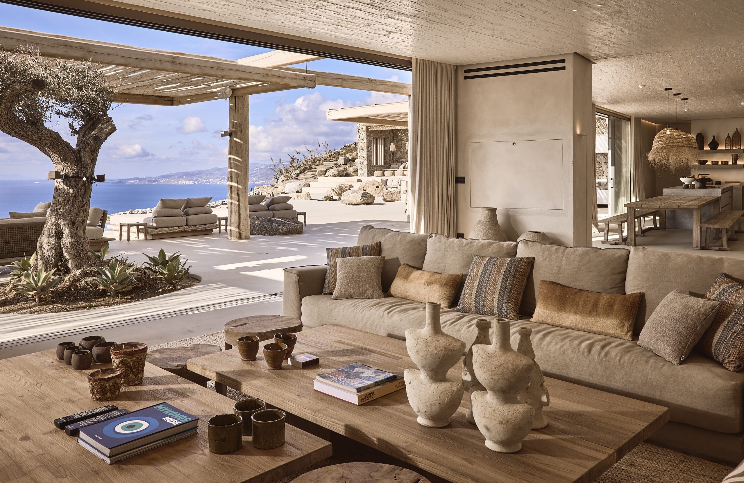 Inside, the villa offers multiple entertainment options, including a dedicated playroom with a Home Cinema system for enjoying movies or gaming in total comfort. Fitness enthusiasts can take advantage of both indoor and outdoor gyms with sea and sunset views, while a tranquil massage room offers the ultimate in relaxation. Raising the standard for luxury accommodations, the villa delivers uncompromising quality for those seeking the pinnacle of Mykonos living. The property includes discreet live-in housekeeping staff.