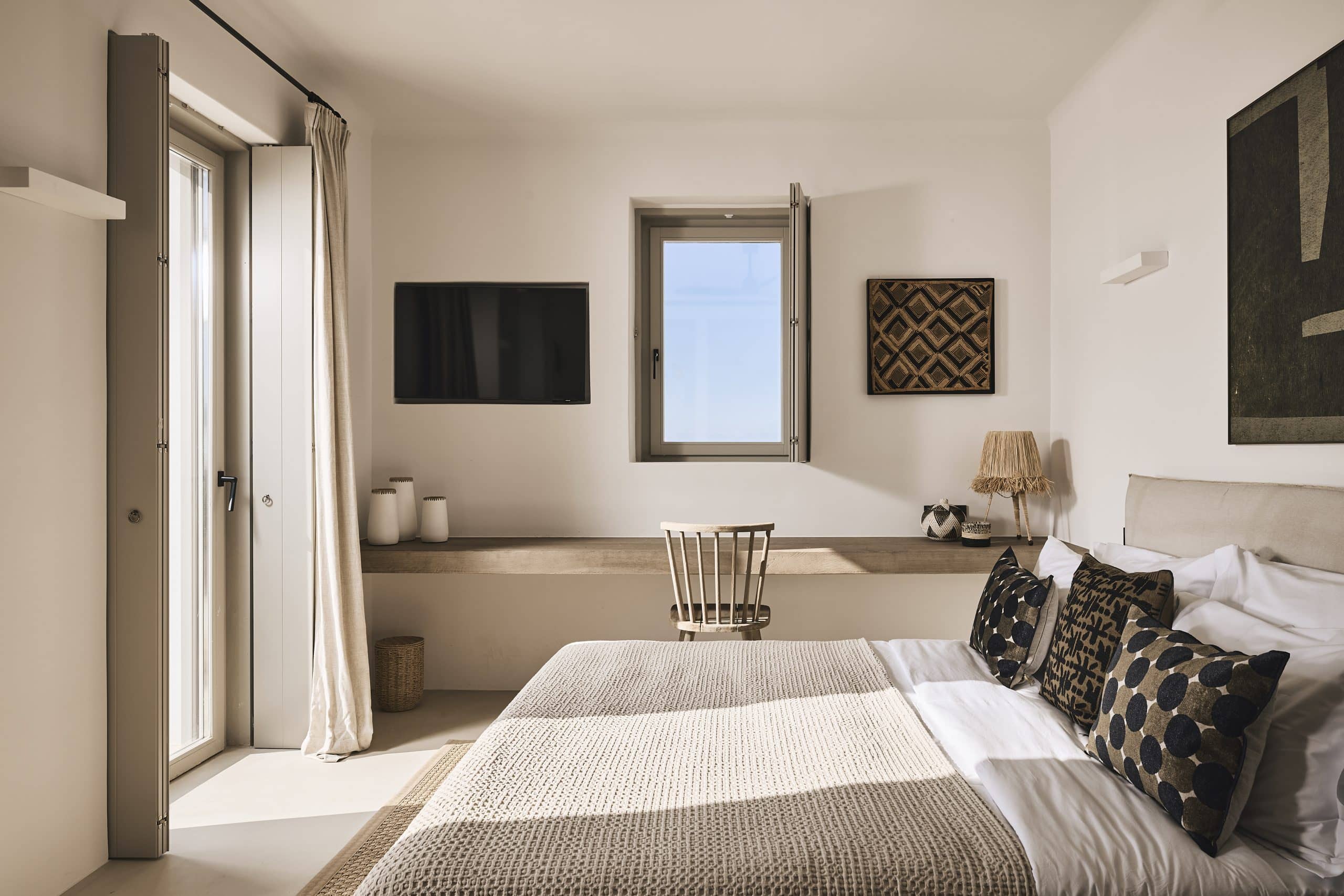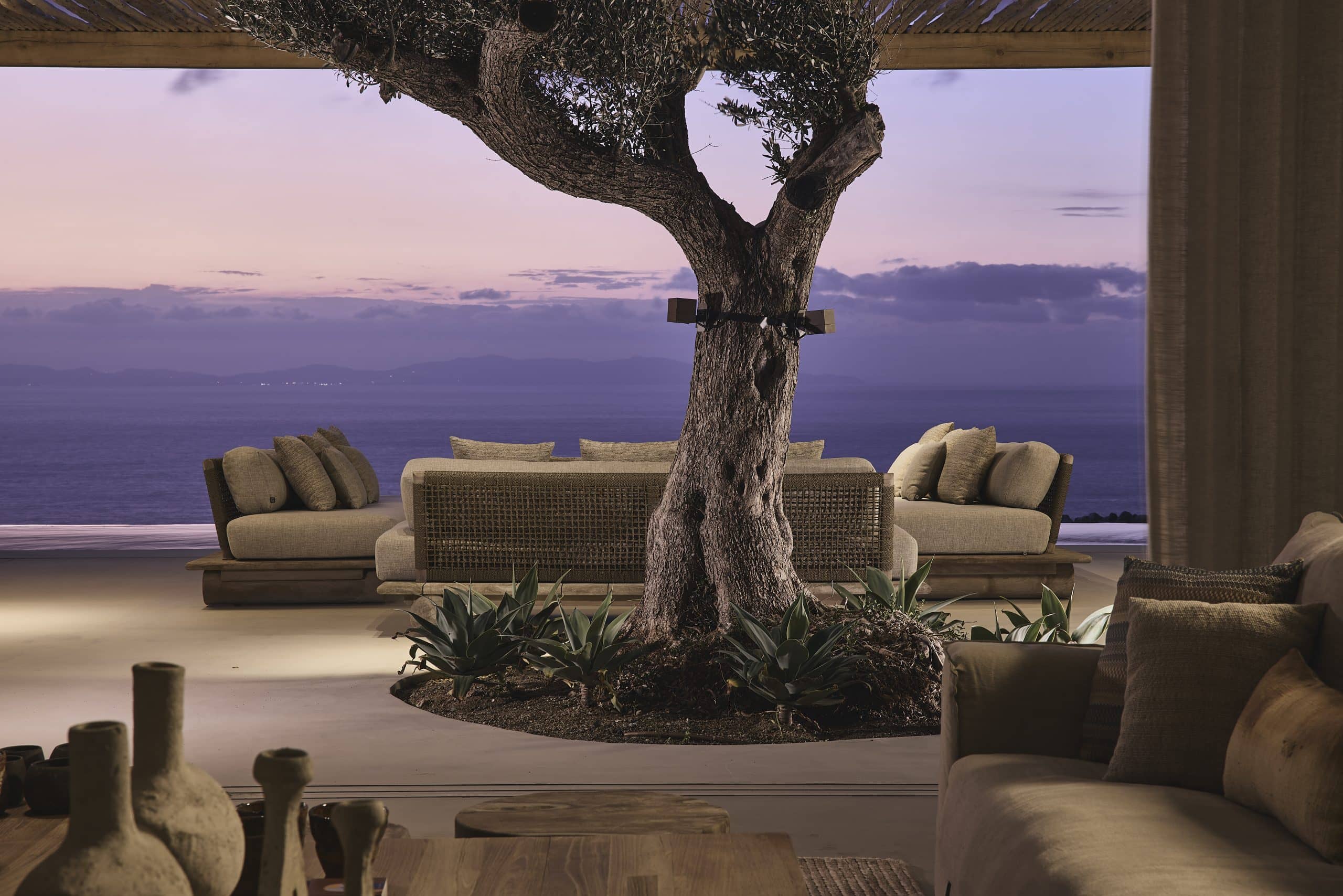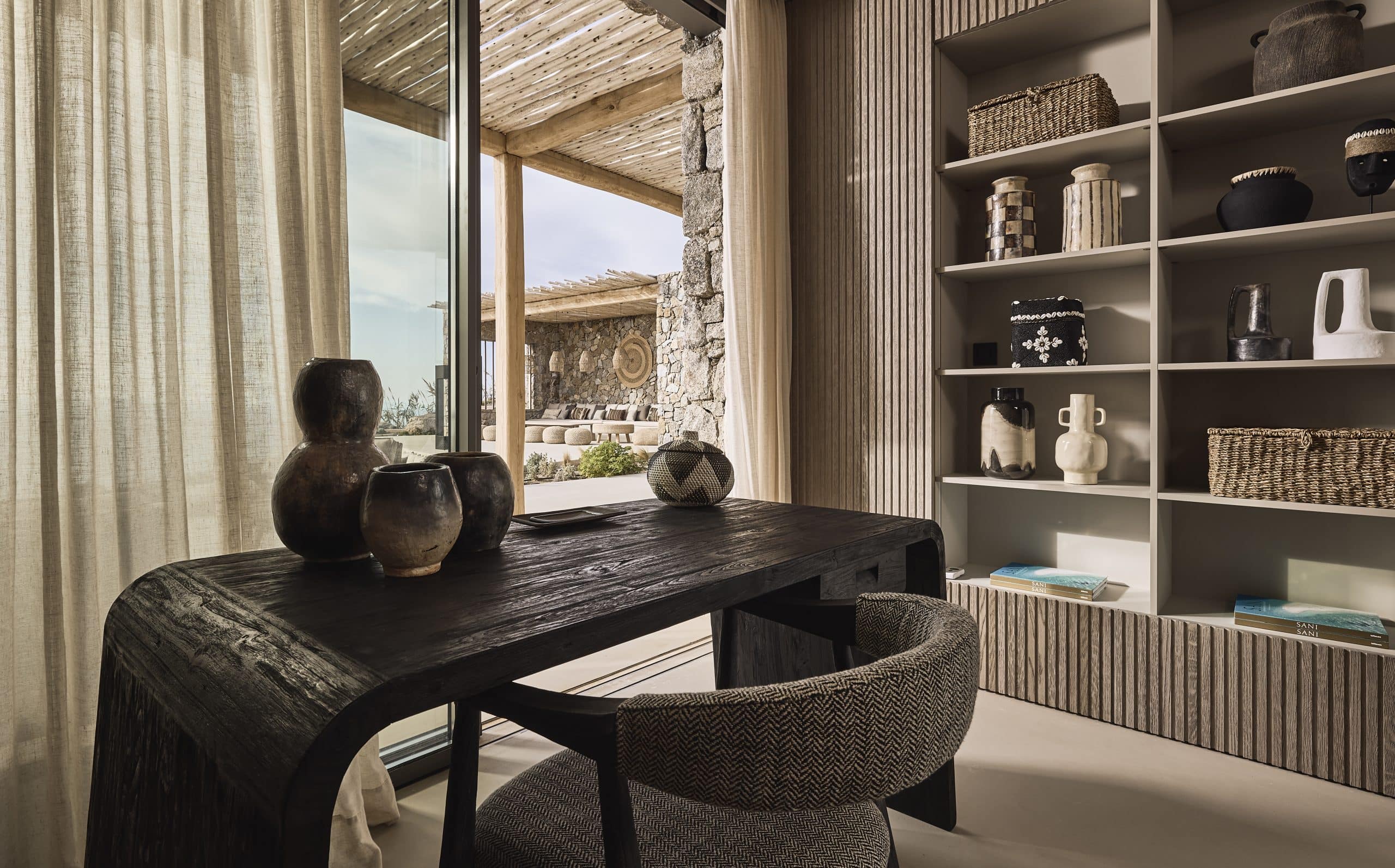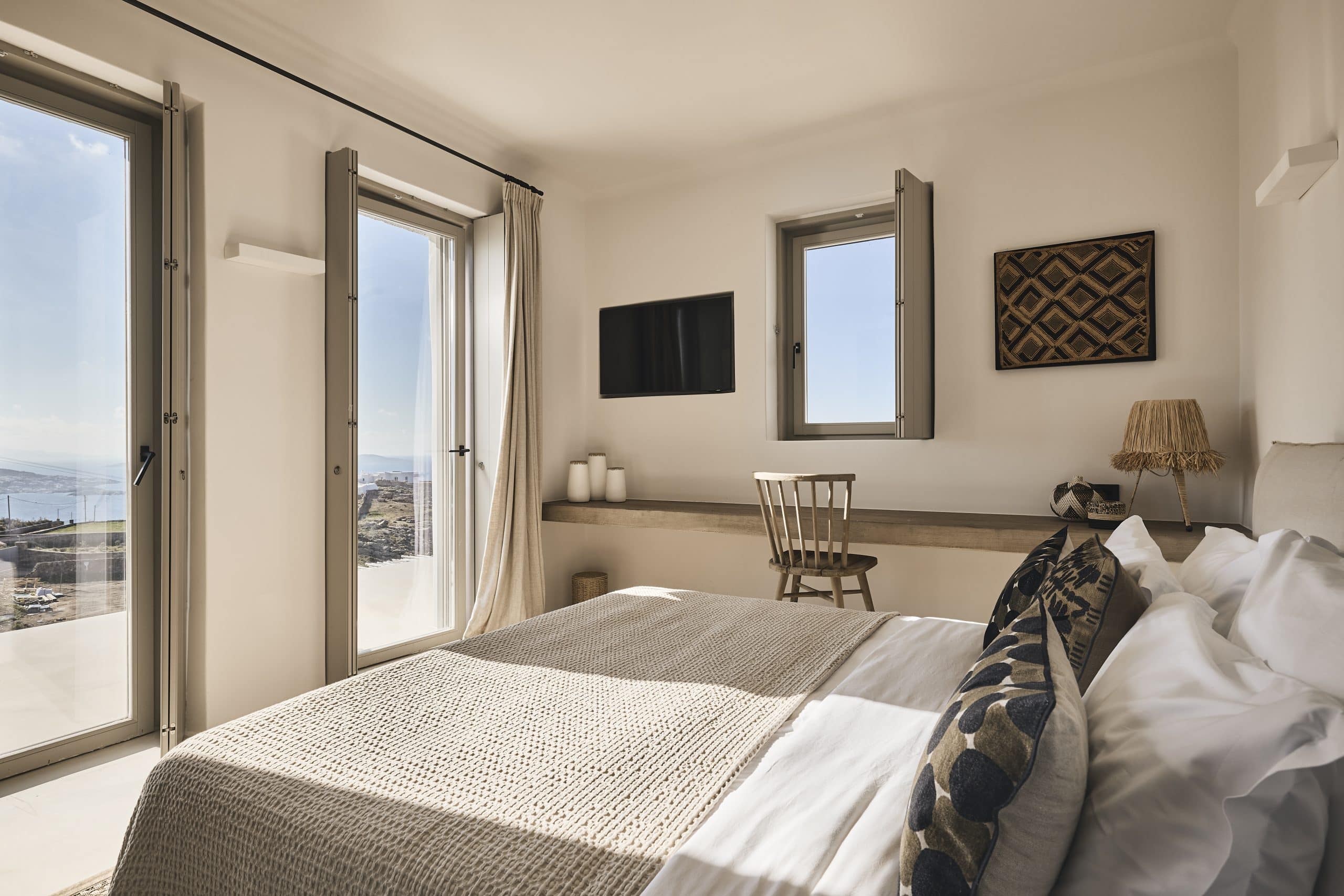 Inside, the villa offers multiple entertainment options, including a dedicated playroom with a Home Cinema system for enjoying movies or gaming in total comfort. Fitness enthusiasts can take advantage of both indoor and outdoor gyms with sea and sunset views, while a tranquil massage room offers the ultimate in relaxation. Raising the standard for luxury accommodations, the villa delivers uncompromising quality for those seeking the pinnacle of Mykonos living. The property includes discreet live-in housekeeping staff.