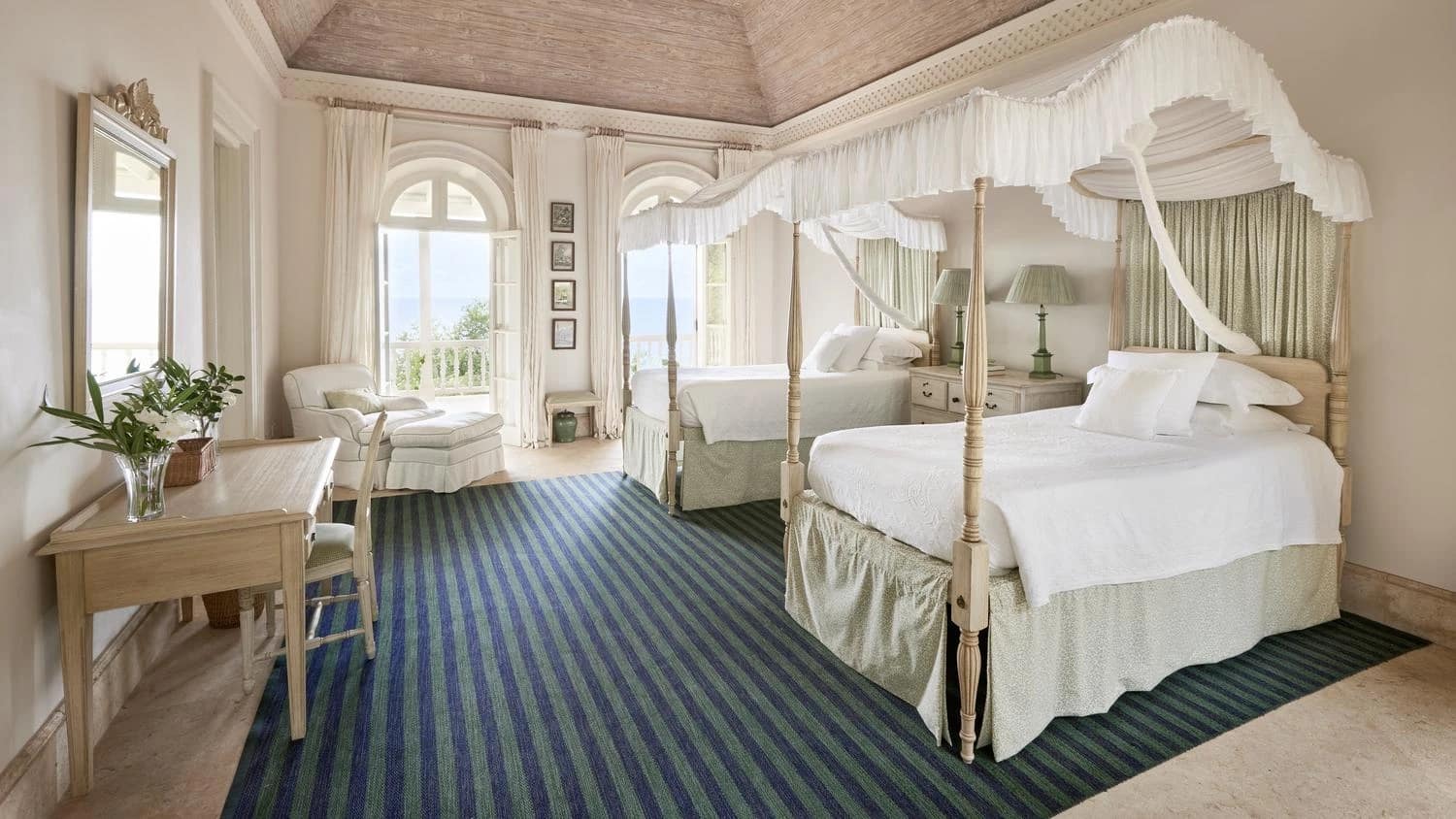 The stunning courtyard garden is the wonderful centrepiece welcoming guests upon their arrival at Netherclay House. Bedrooms on both sides open onto this beautiful internal area but it is not until you have walked through the vast and elegant Great Room and down onto the upper terrace that you truly appreciate the magnificent views. The pool terrace is the perfect place to while away the hours.