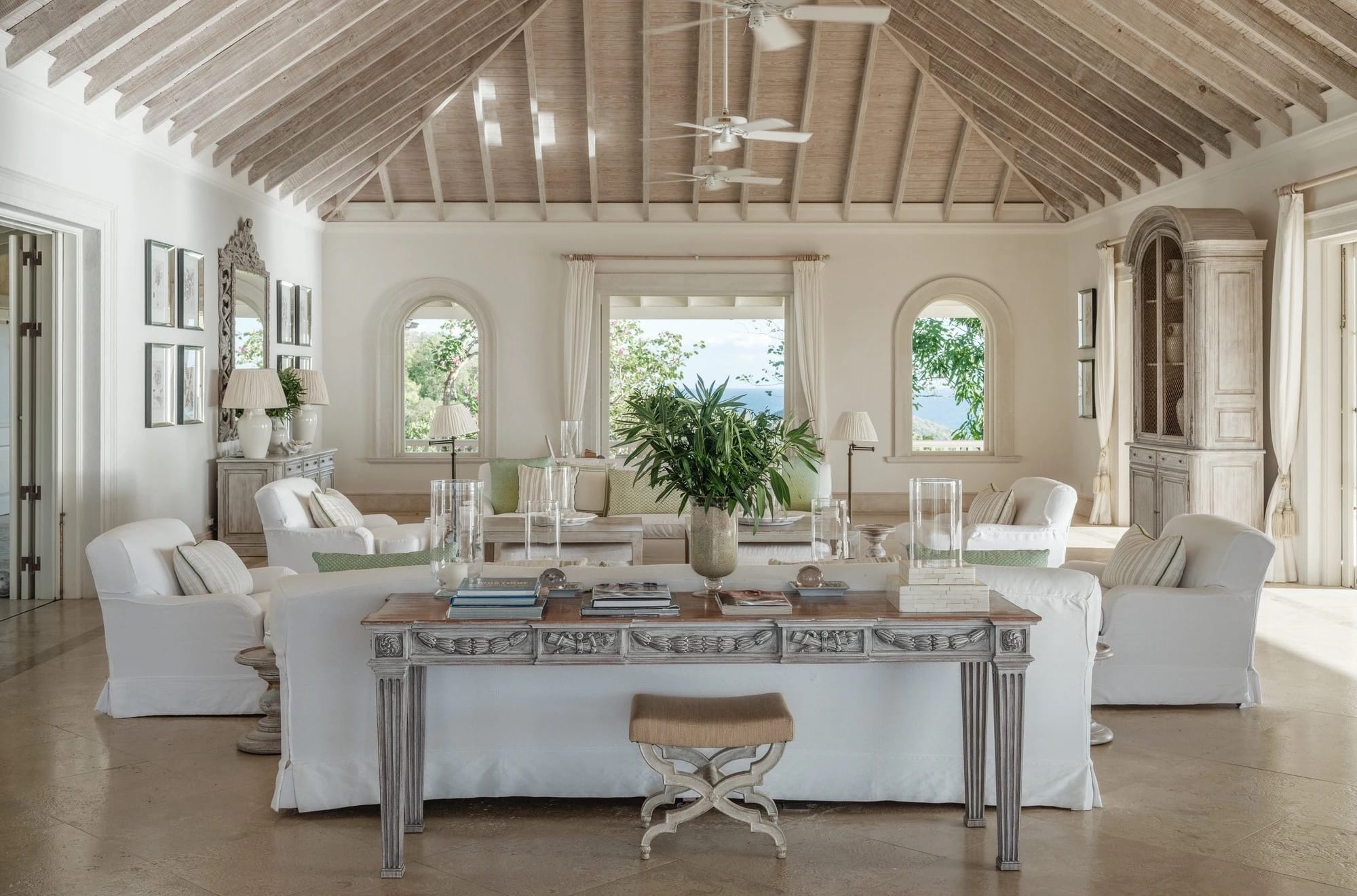 Location & Design • Caribbean sea views Built by James Archibald in 2004 • Southern location 270 degree views of Caribbean Sea Household Staff • 1 Butler • 1 Chef • 2 Gardeners • 2 Housekeepers • Household staff live on site in dedicated staff accommodation to provide daily service and hospitality Bedrooms • Bedroom 1 King en-suite with shower • Bedroom 2 Twin/King en-suite with bath • Bedroom 3 King en-suite with bath/shower • Bedroom 4 King en-suite with shower Guest Cottage • Bedroom 5 Twin/King en-suite with shower • Bedroom 6 King en-suite shower Living • Great Room • Dining terrace • Dining room Media/entertainment room • Office