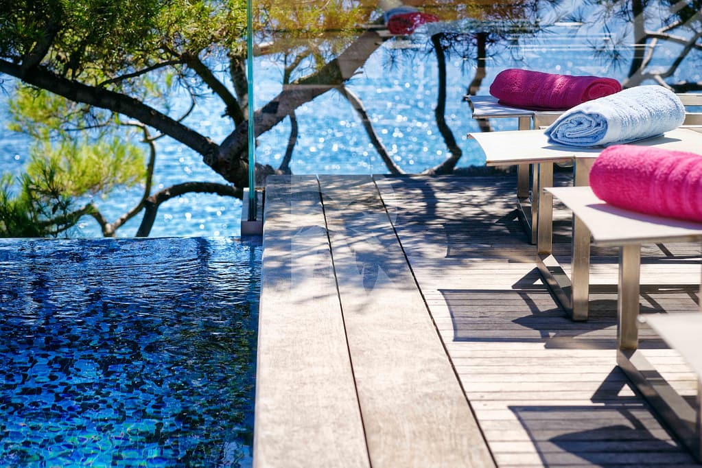 The villa has been renovated last year and has a direct access to the sea and a small private beach. The is an infinity swimming pool with a bar around to enjoy a fresh drink during the sunny days or watching the sunset.