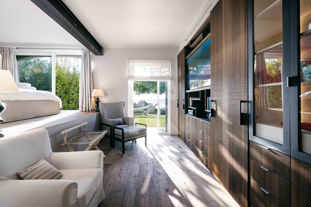 – Bedroom 1 : Master bedroom with an ensuite shower room, TV, Access to the garden and the swimming pool.