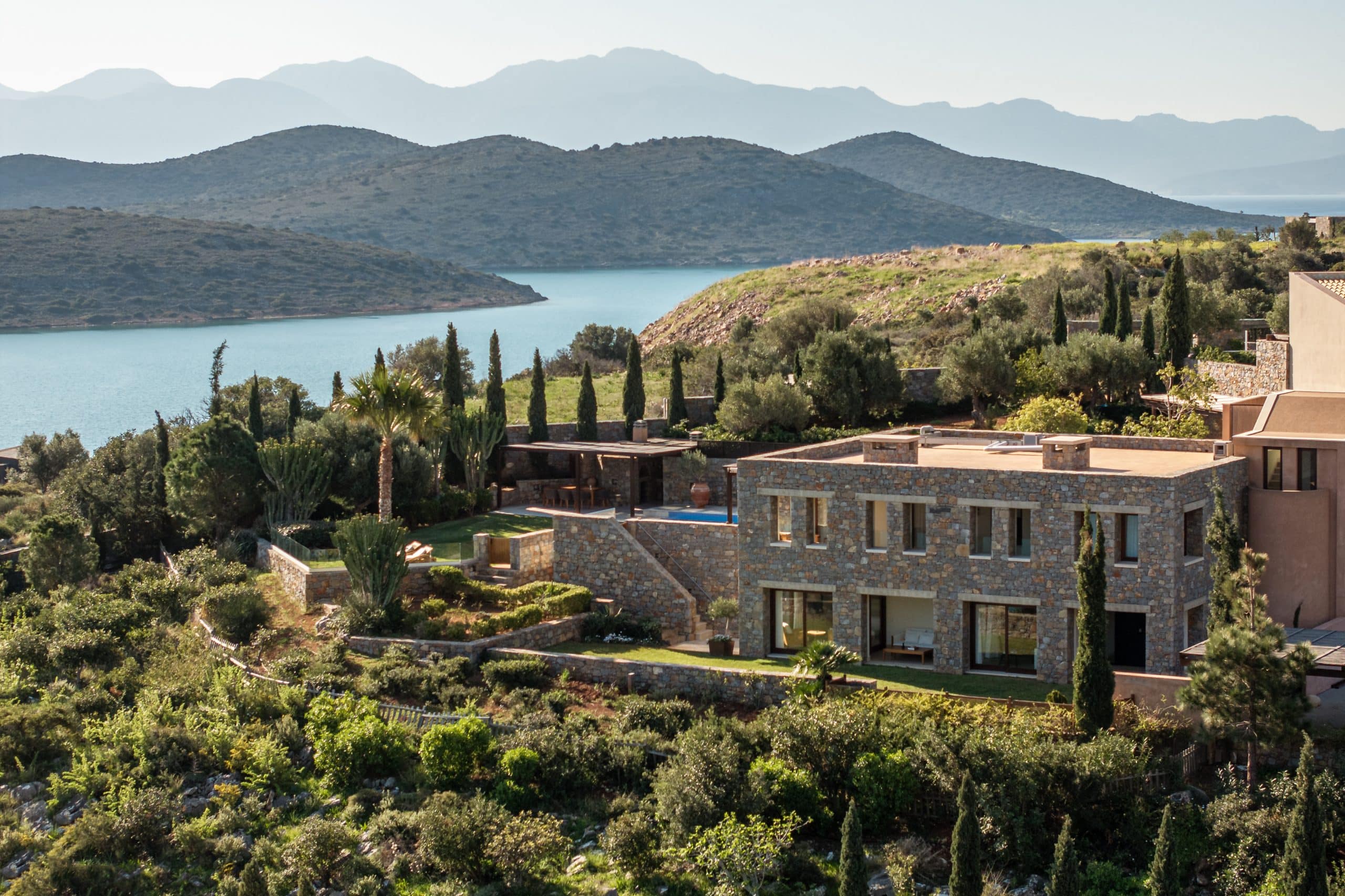 Perched in a truly distinctive setting, the villa blends seamlessly into its surroundings with a patchwork of soft pink stone and warm, earthy tones. Just across the water lies the islet of Spinalonga, a National Monument and open-air museum steeped in history. Once inhabited by Romans, Venetians, Ottomans, and later home to Greece’s last leper colony, it offers a compelling glimpse into the past.