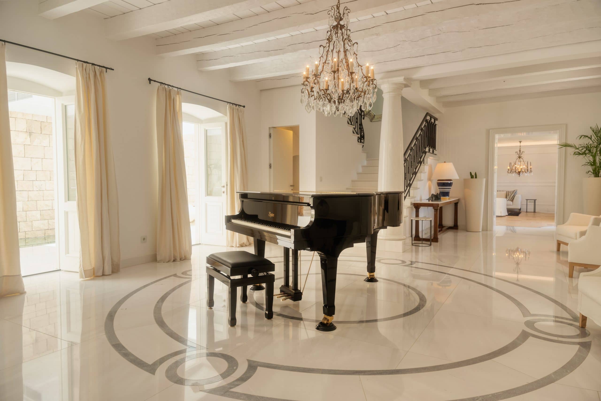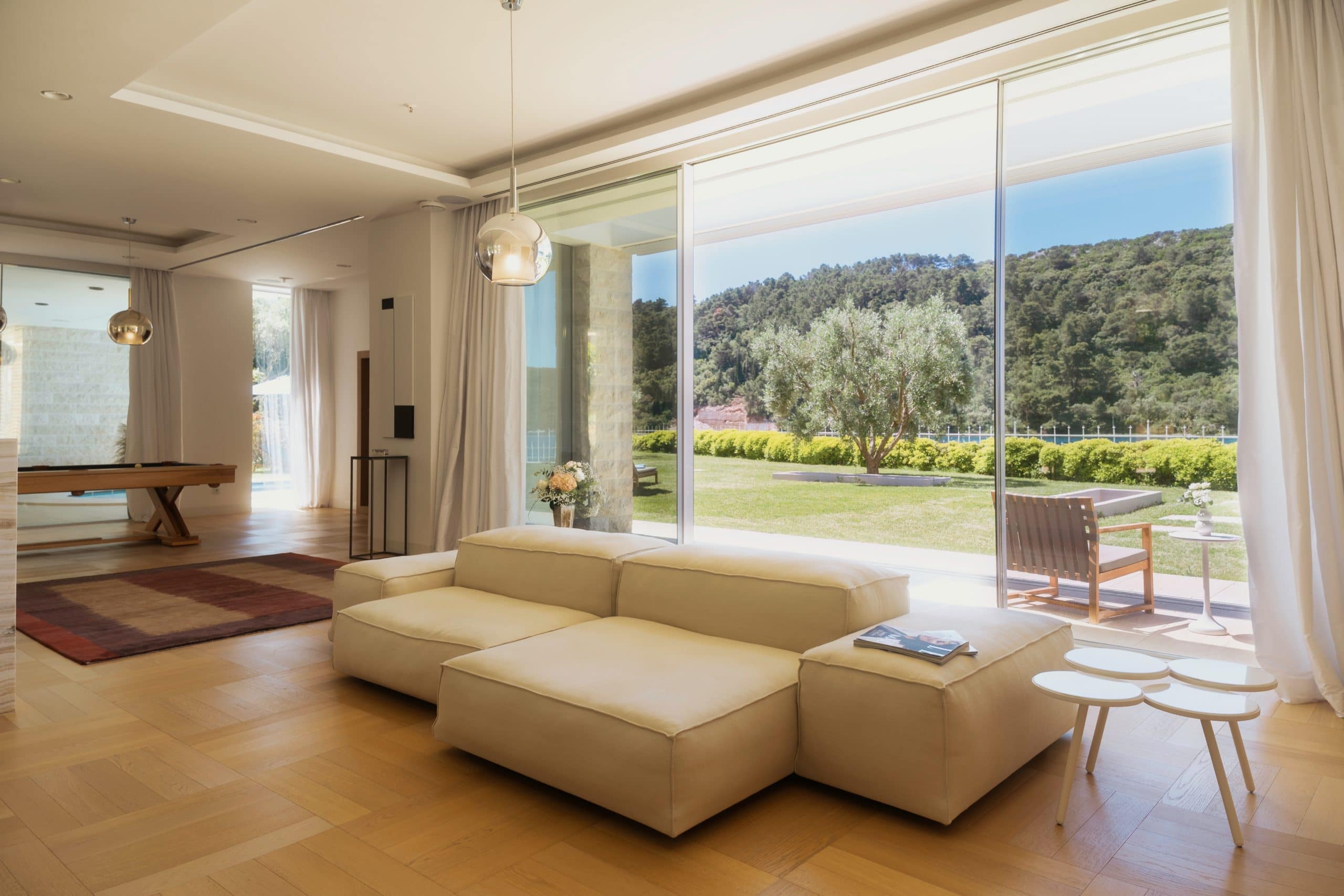 Indulge in the diverse interiors of the estate, featuring multiple living areas perfect for gathering or unwinding. Enjoy exclusive amenities including a stylish bar, a private wine cellar, dedicated massage and spa rooms, and a private cinema for ultimate relaxation and entertainment.