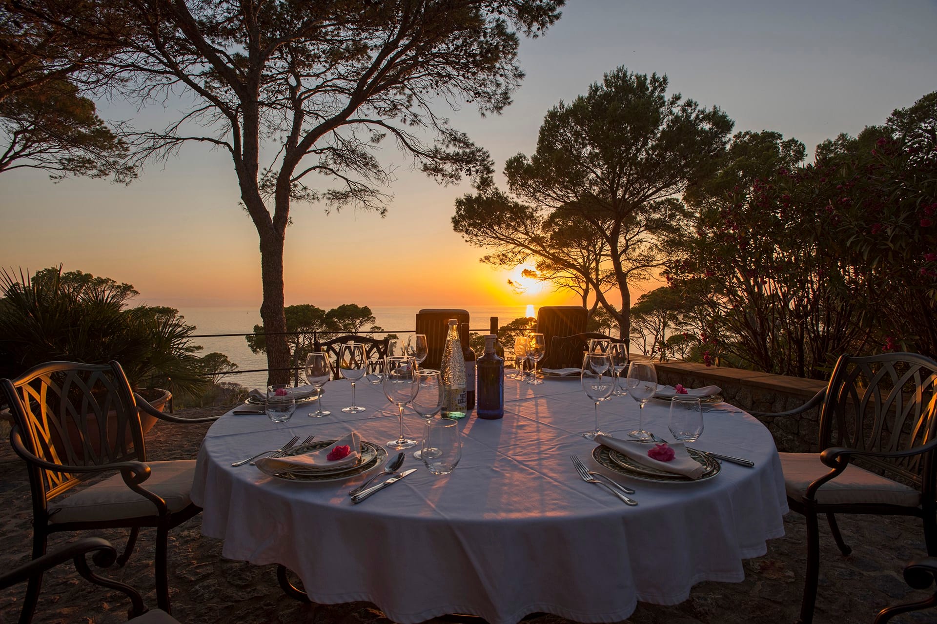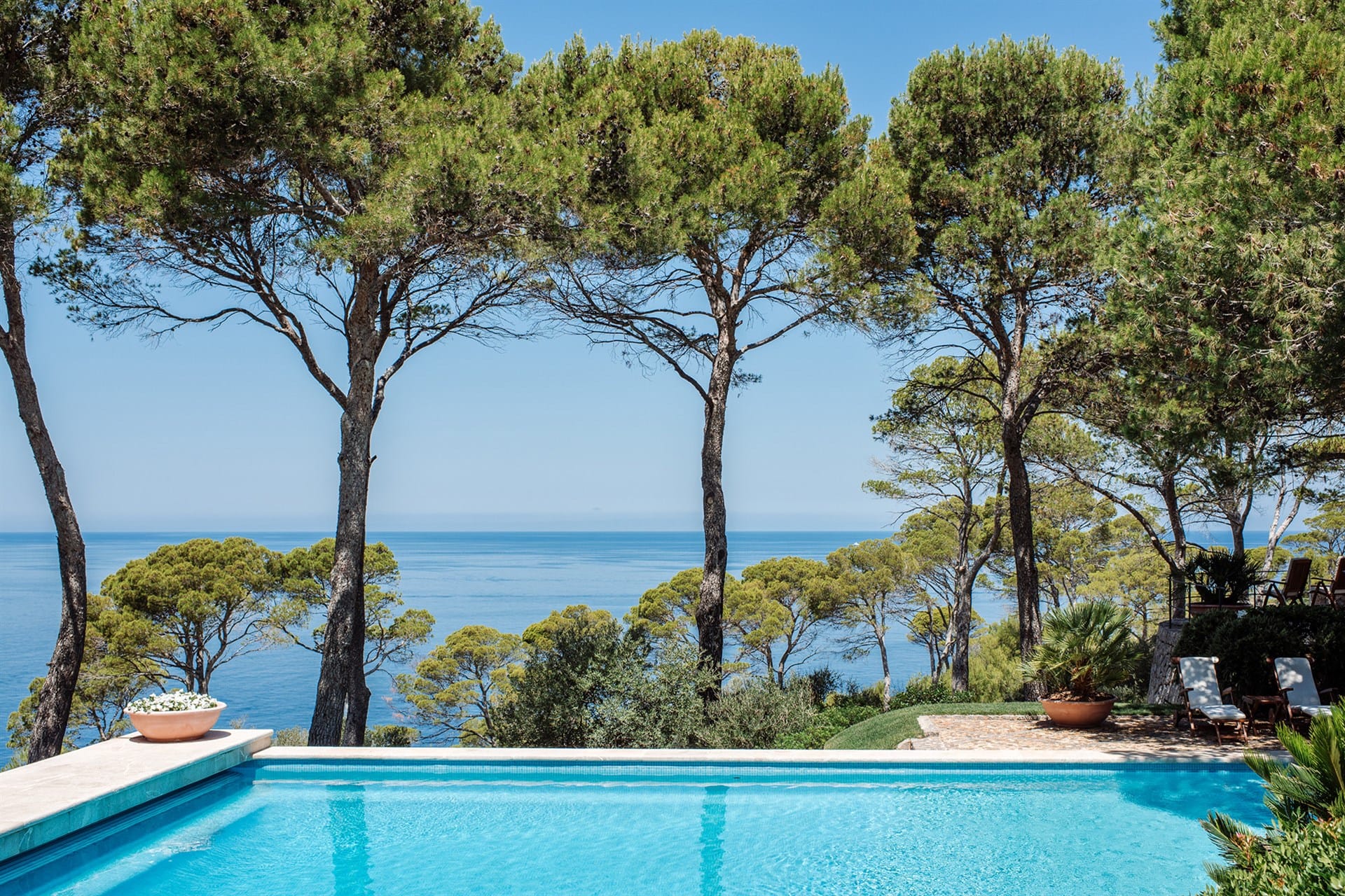 Cocooned in 25 acres of Mediterranean pine woods and indigenous coastal maquis, the villa offers wonderful al fresco living. The drawing room and the sitting room on the ground floor spill out via banks of French windows onto a dreamy sea-view colonnade that wraps around two sides of the property. Shaded by an antique tile roof and a thick knit of fragrant, floral climbers, and equipped with a series of well-furnished sitting and dining areas, the colonnade morphs into a more open terrace, which is accessed from the dining room and the ground floor bedroom. Needless to say, there are stunning sea, coastal and sunset views from here too.