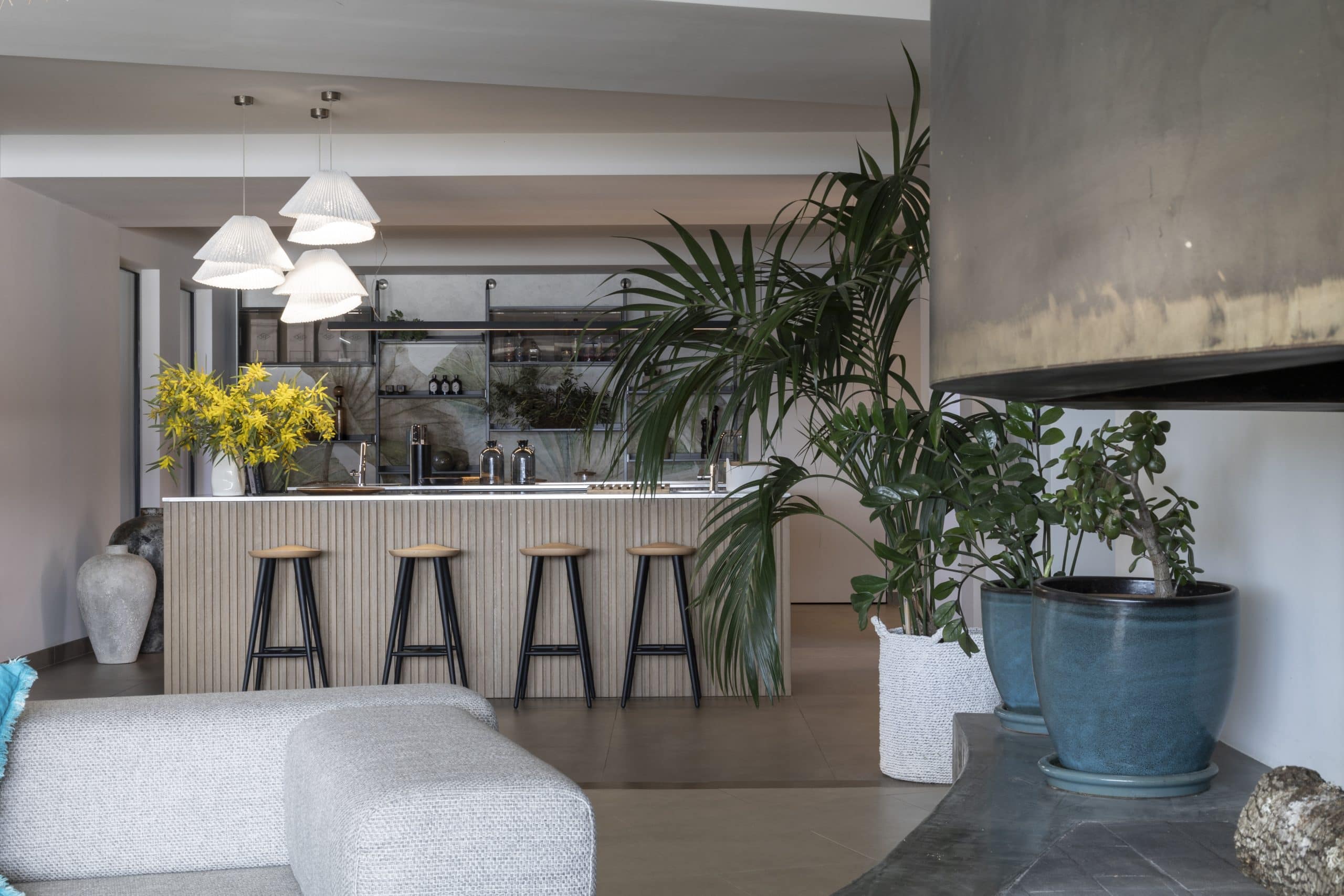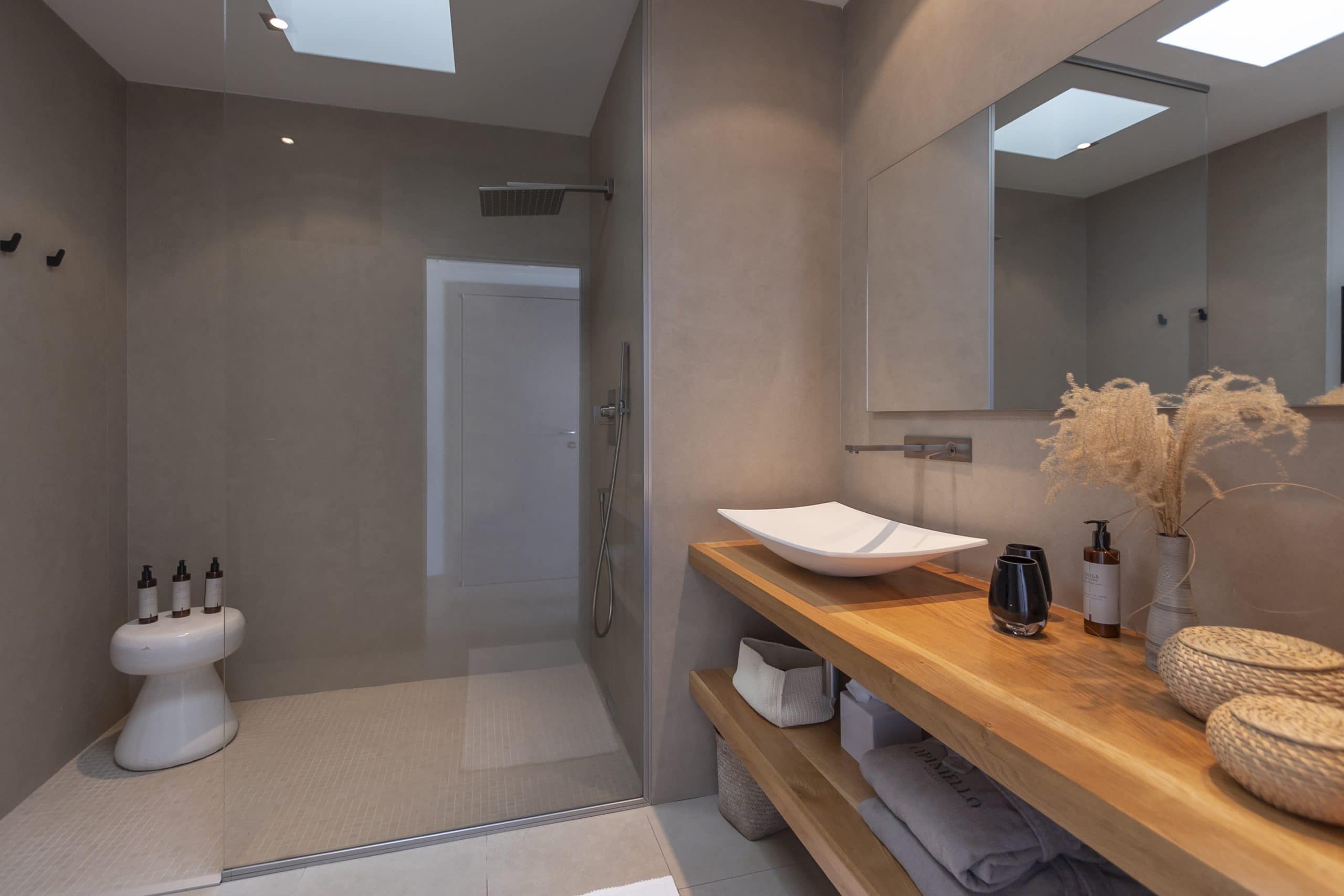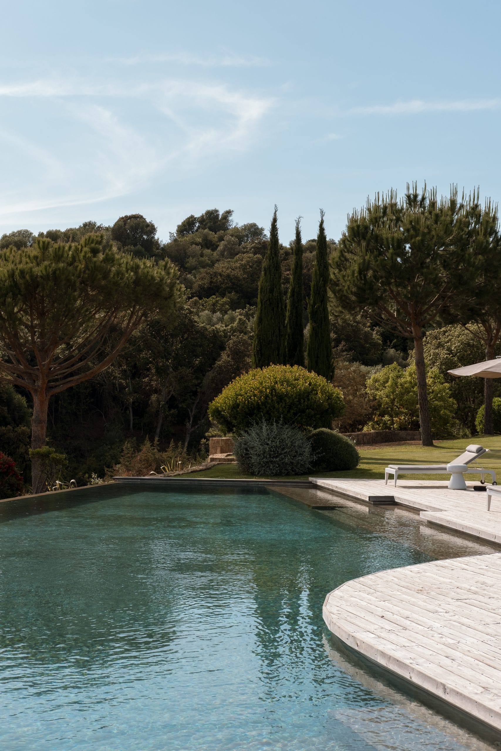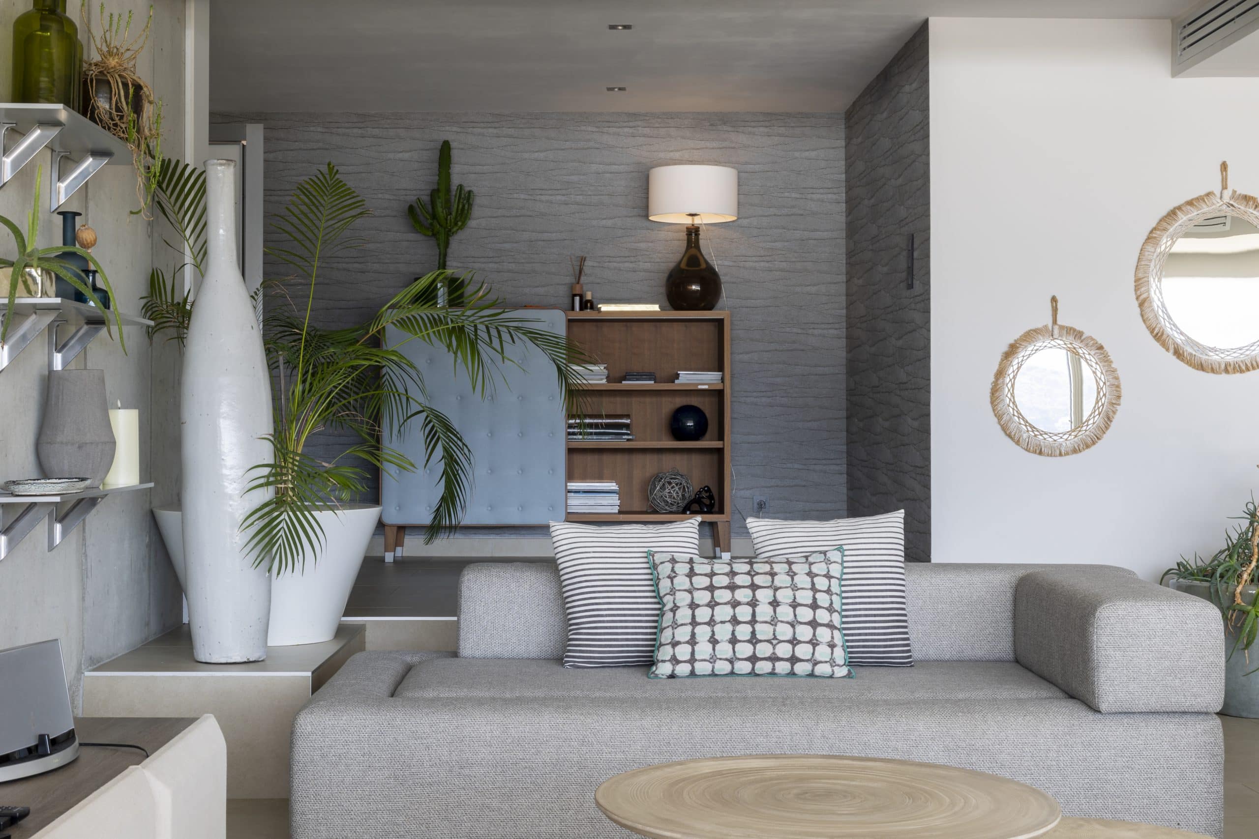 Imagined by its hosts, a passionate architect and his wife who are both devoted to interior design, this discreetly elegant villa was created with profound respect for its surroundings. Hidden from view except from the sea, it is an architectural gem that follows the natural contours of the landscape, complete with a fully vegetated roof that allows it to blend seamlessly into its remarkable setting. Carefully selected materials such as stone, wood, and raw concrete strike the perfect balance between modernity and authenticity.